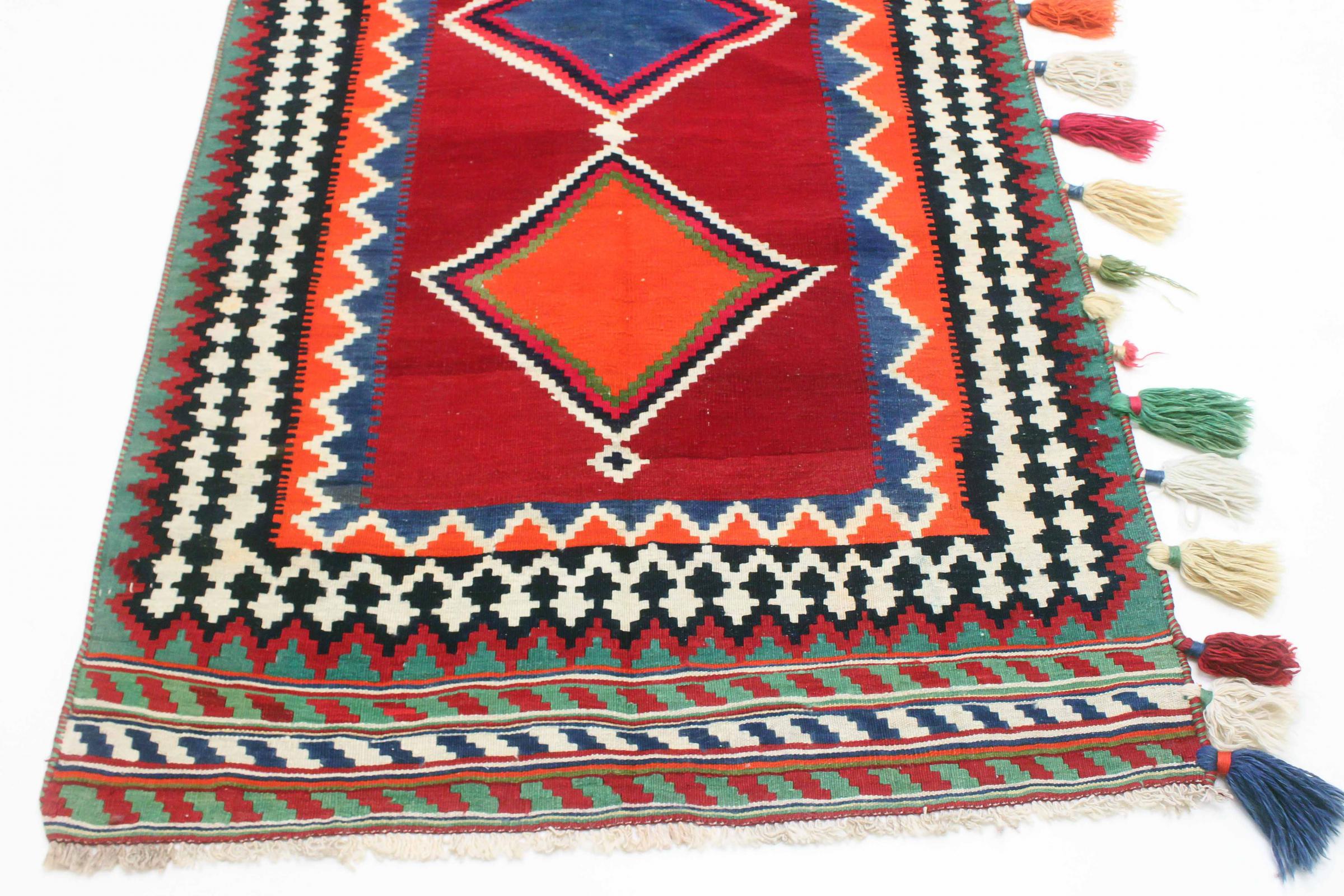 Denne håndvævede kelim fars kombinerer persiske mønstre og ornamenter med traditionen med flade vævninger. En fantastisk og moderne kombination af de mest populære koncepter fra Orienten. Dette skaber et tæppe med en bred vifte af anvendelser. Hvad enten det er som sengetæppe eller som tæppe foran sofaen – en Fars kelim gør det muligt og kan nu findes i de mest kendte indretningsmagasiner. Kilim Fars-tæpper er vævet i hånden i Iran og er derfor blandt kelimer af højeste kvalitet.