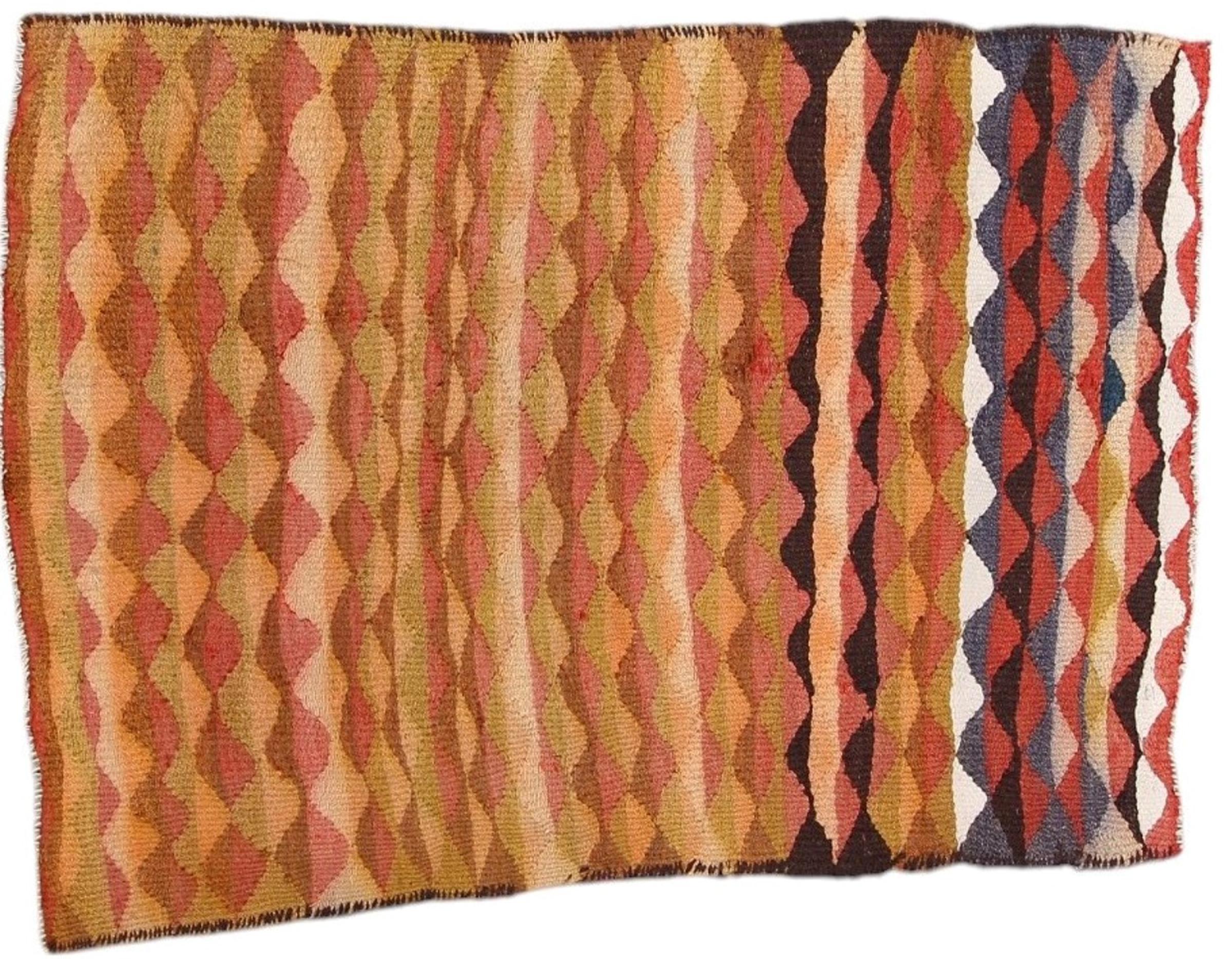 Dette tæppe fremstilles for hånd på væven som en flad væv. Flatweaves er tæpper, der ikke har nogen bunker. Som navnet antyder er disse tæpper vævet og ikke knudede. Dette resulterer i et fladt tæppe med en struktureret overflade. Flade væv er ikke så bløde og for det meste tyndere end knyttede tæpper. På samme tid er de betydeligt mindre komplekse at fremstille og kan normalt designes fra begge sider (for og bag). Deres mønstre er normalt geometriske, hvilket skyldes stoffet.