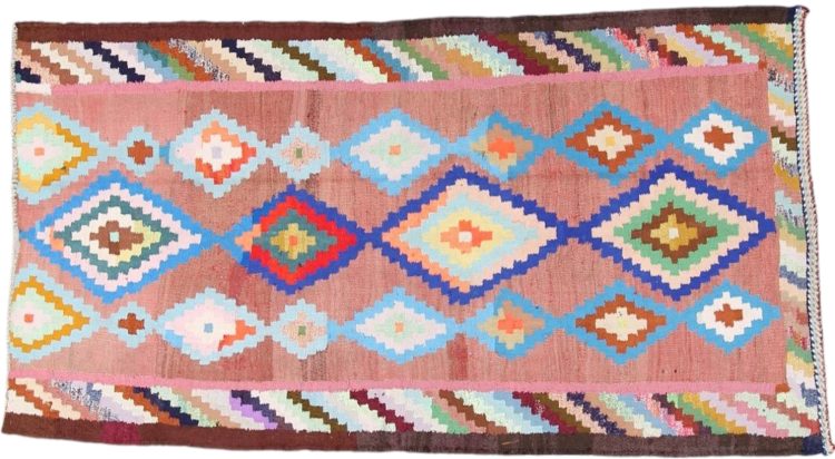 Dette tæppe fremstilles for hånd på væven som en flad væv. Flatweaves er tæpper, der ikke har nogen bunker. Som navnet antyder er disse tæpper vævet og ikke knudede. Dette resulterer i et fladt tæppe med en struktureret overflade. Flade væv er ikke så bløde og for det meste tyndere end knyttede tæpper. På samme tid er de betydeligt mindre komplekse at fremstille og kan normalt designes fra begge sider (for og bag). Deres mønstre er normalt geometriske, hvilket skyldes stoffet.