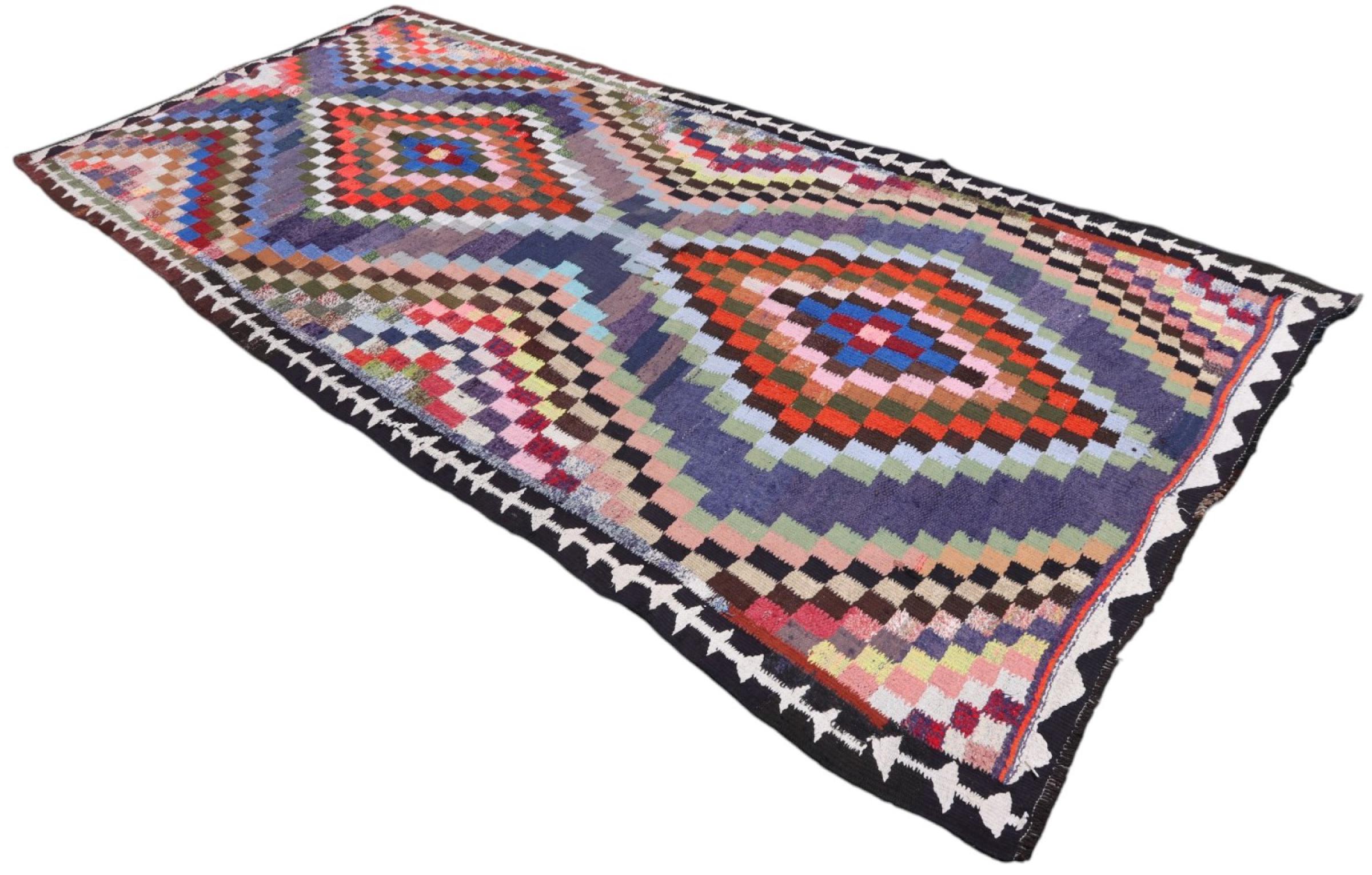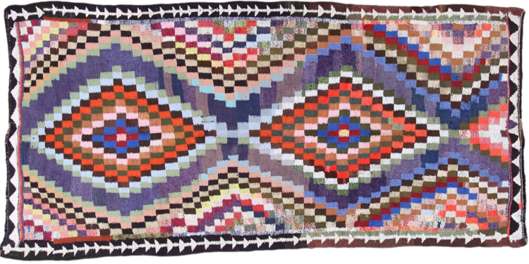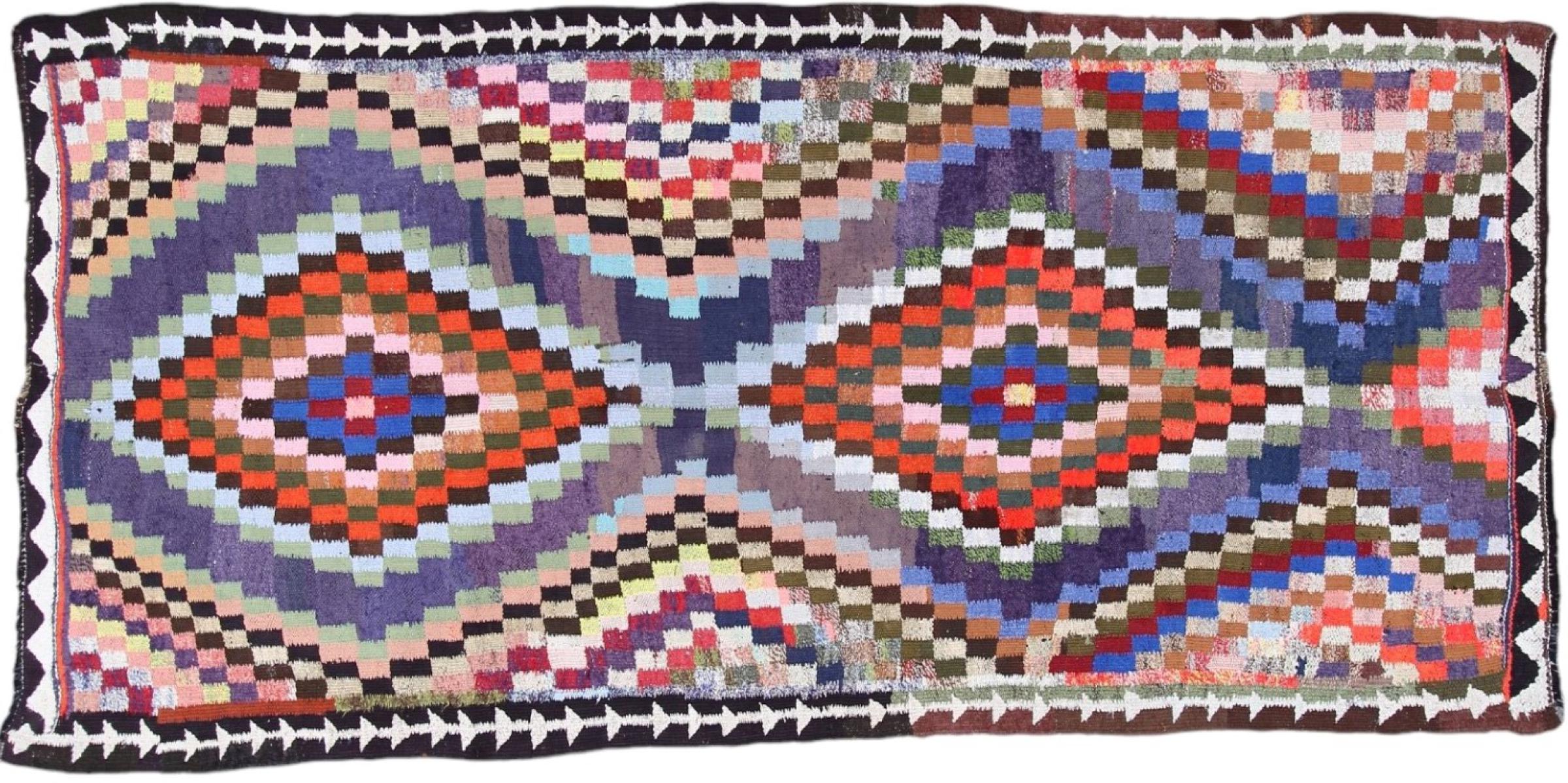 Dette tæppe fremstilles for hånd på væven som en flad væv. Flatweaves er tæpper, der ikke har nogen bunker. Som navnet antyder er disse tæpper vævet og ikke knudede. Dette resulterer i et fladt tæppe med en struktureret overflade. Flade væv er ikke så bløde og for det meste tyndere end knyttede tæpper. På samme tid er de betydeligt mindre komplekse at fremstille og kan normalt designes fra begge sider (for og bag). Deres mønstre er normalt geometriske, hvilket skyldes stoffet.