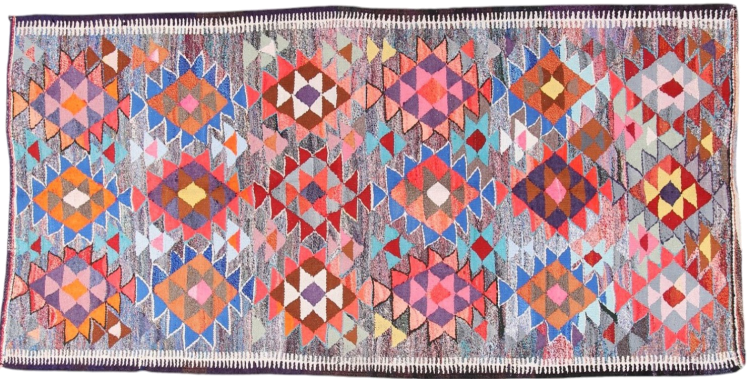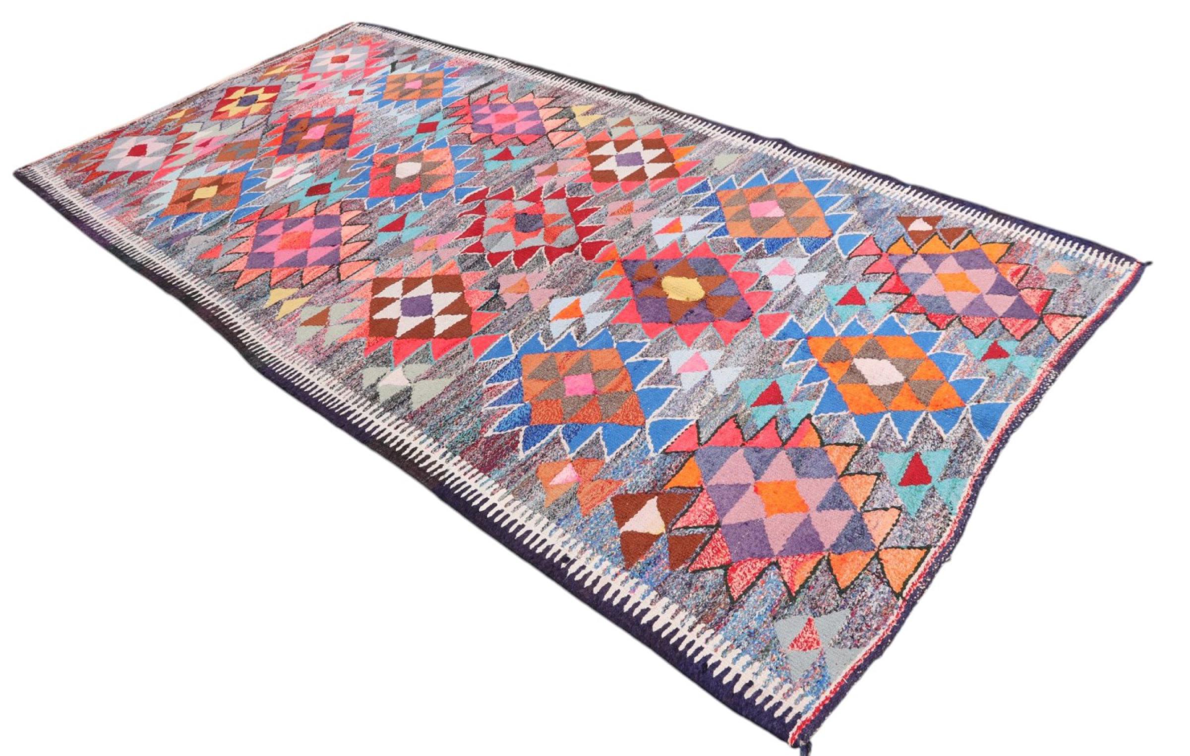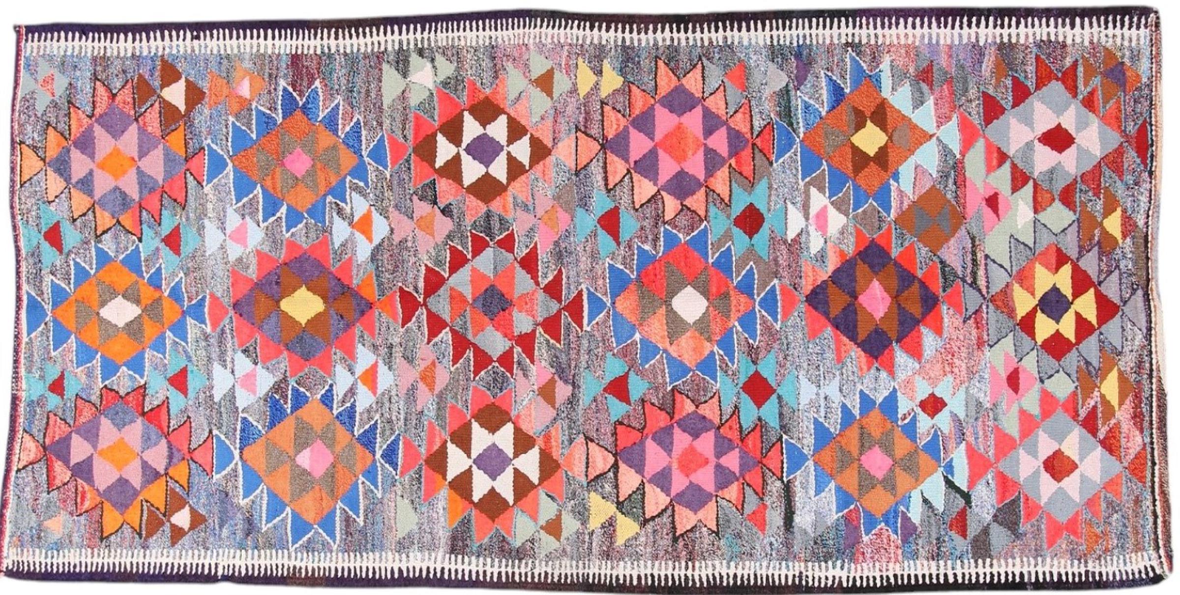Dette tæppe fremstilles for hånd på væven som en flad væv. Flatweaves er tæpper, der ikke har nogen bunker. Som navnet antyder er disse tæpper vævet og ikke knudede. Dette resulterer i et fladt tæppe med en struktureret overflade. Flade væv er ikke så bløde og for det meste tyndere end knyttede tæpper. På samme tid er de betydeligt mindre komplekse at fremstille og kan normalt designes fra begge sider (for og bag). Deres mønstre er normalt geometriske, hvilket skyldes stoffet.
