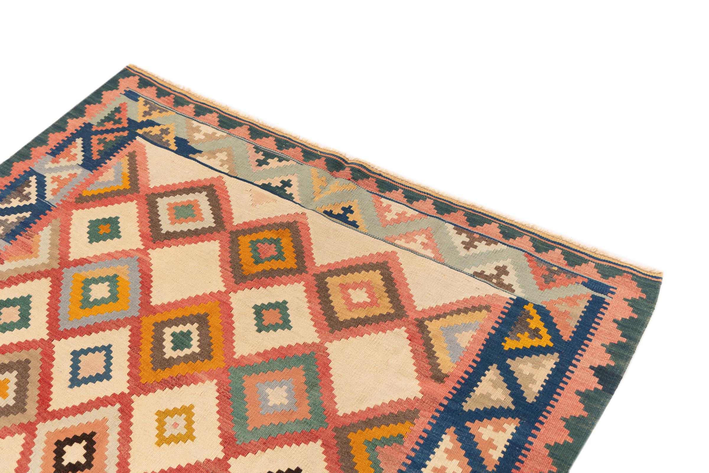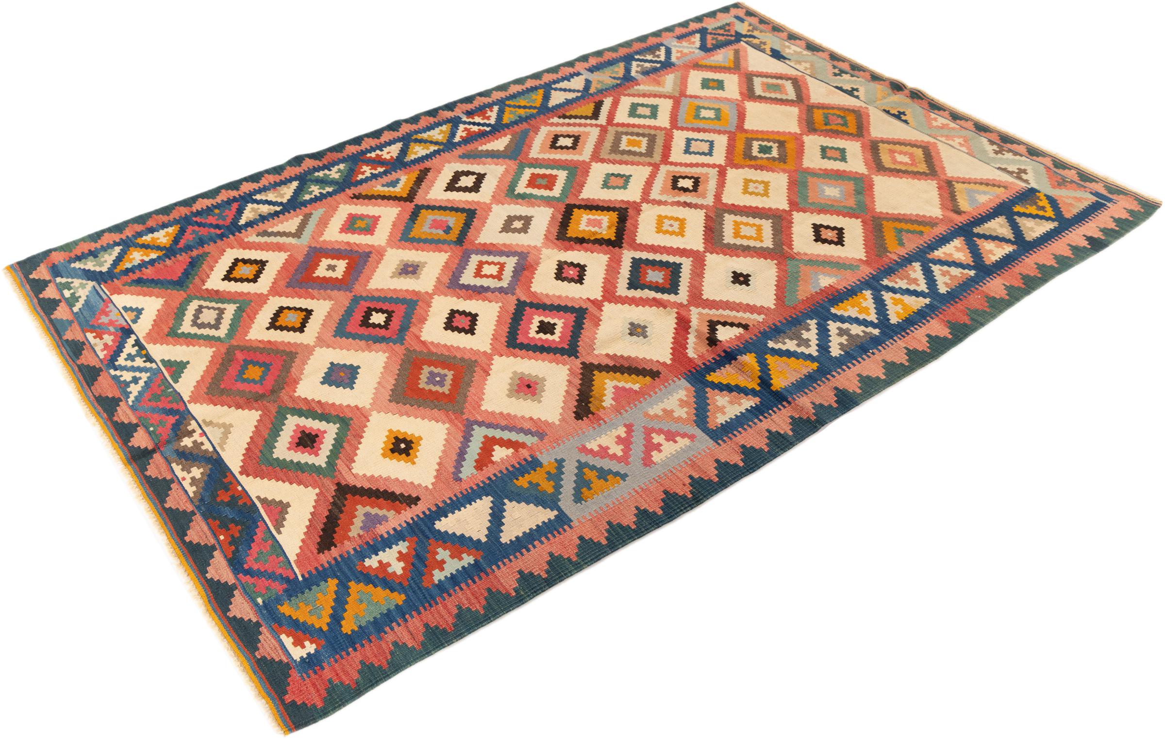 Denne håndvævede kelim fars kombinerer persiske mønstre og ornamenter med traditionen med flade vævninger. En fantastisk og moderne kombination af de mest populære koncepter fra Orienten. Dette skaber et tæppe med en bred vifte af anvendelser. Hvad enten det er som sengetæppe eller som tæppe foran sofaen – en Fars kelim gør det muligt og kan nu findes i de mest kendte indretningsmagasiner. Kilim Fars-tæpper er vævet i hånden i Iran og er derfor blandt kelimer af højeste kvalitet.