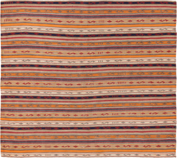 Dette tæppe fremstilles for hånd på væven som en flad væv. Flatweaves er tæpper, der ikke har nogen bunker. Som navnet antyder er disse tæpper vævet og ikke knudede. Dette resulterer i et fladt tæppe med en struktureret overflade. Flade væv er ikke så bløde og for det meste tyndere end knyttede tæpper. På samme tid er de betydeligt mindre komplekse at fremstille og kan normalt designes fra begge sider (for og bag). Deres mønstre er normalt geometriske, hvilket skyldes stoffet.