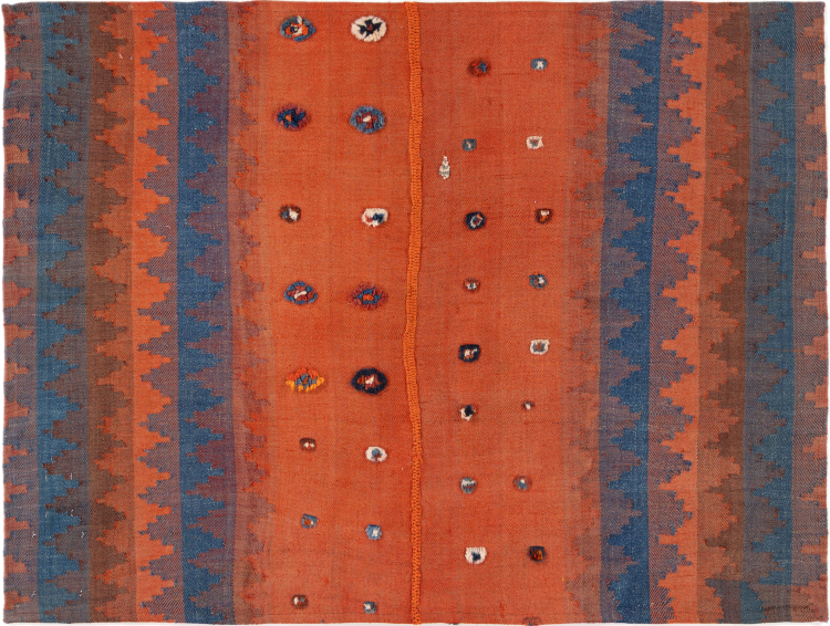 Dette tæppe fremstilles for hånd på væven som en flad væv. Flatweaves er tæpper, der ikke har nogen bunker. Som navnet antyder er disse tæpper vævet og ikke knudede. Dette resulterer i et fladt tæppe med en struktureret overflade. Flade væv er ikke så bløde og for det meste tyndere end knyttede tæpper. På samme tid er de betydeligt mindre komplekse at fremstille og kan normalt designes fra begge sider (for og bag). Deres mønstre er normalt geometriske, hvilket skyldes stoffet.