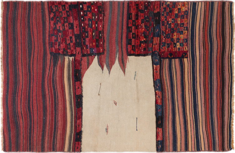 Dette tæppe fremstilles for hånd på væven som en flad væv. Flatweaves er tæpper, der ikke har nogen bunker. Som navnet antyder er disse tæpper vævet og ikke knudede. Dette resulterer i et fladt tæppe med en struktureret overflade. Flade væv er ikke så bløde og for det meste tyndere end knyttede tæpper. På samme tid er de betydeligt mindre komplekse at fremstille og kan normalt designes fra begge sider (for og bag). Deres mønstre er normalt geometriske, hvilket skyldes stoffet.