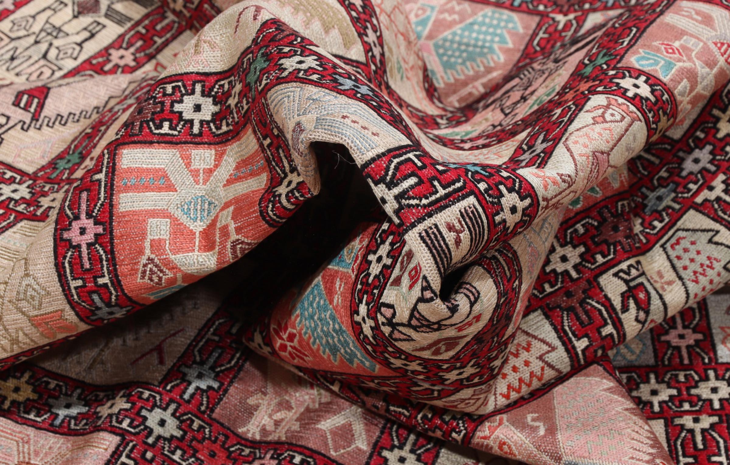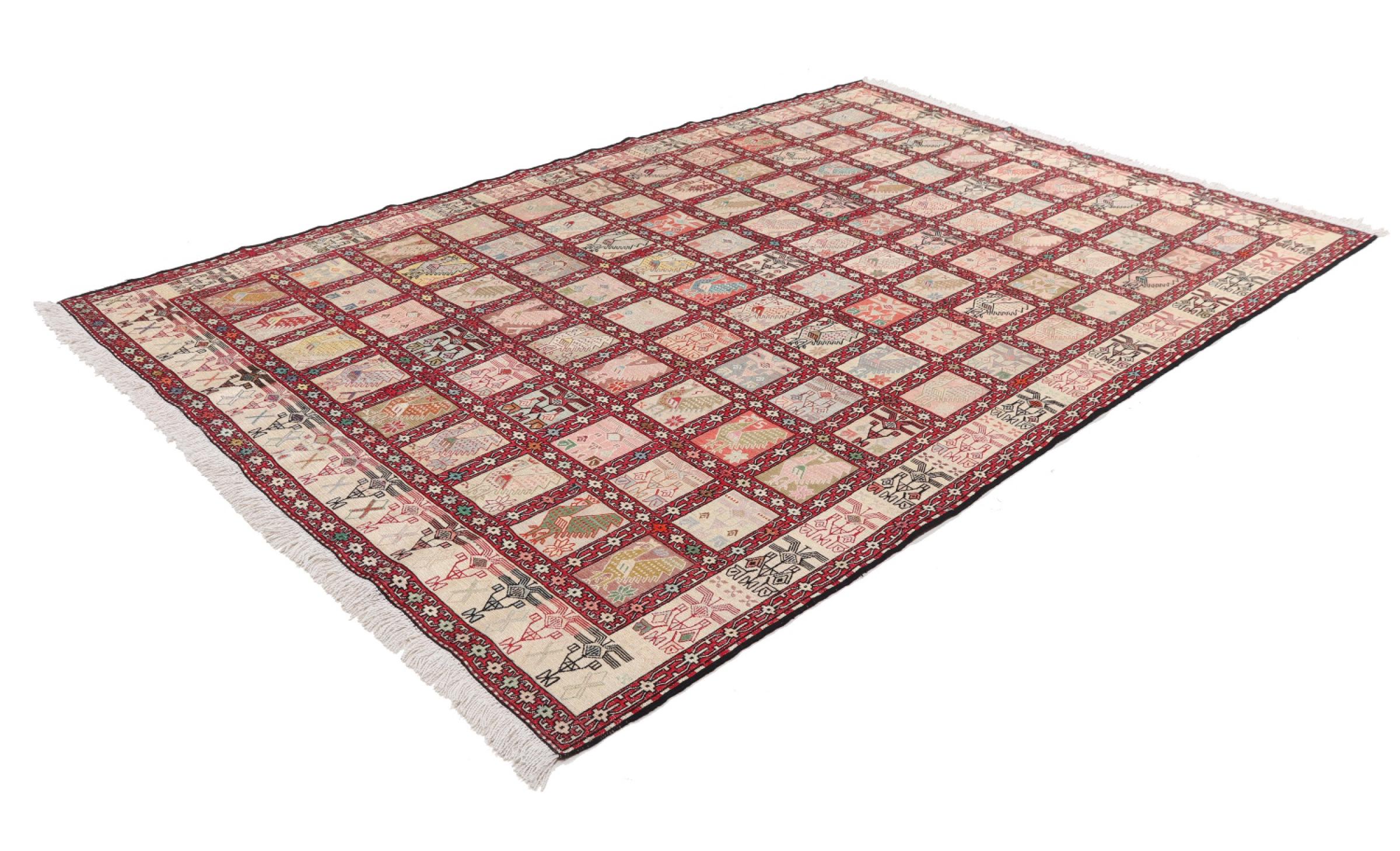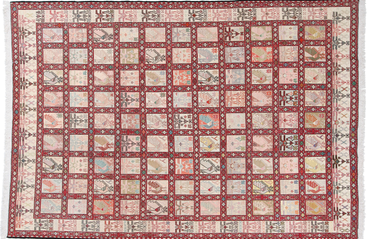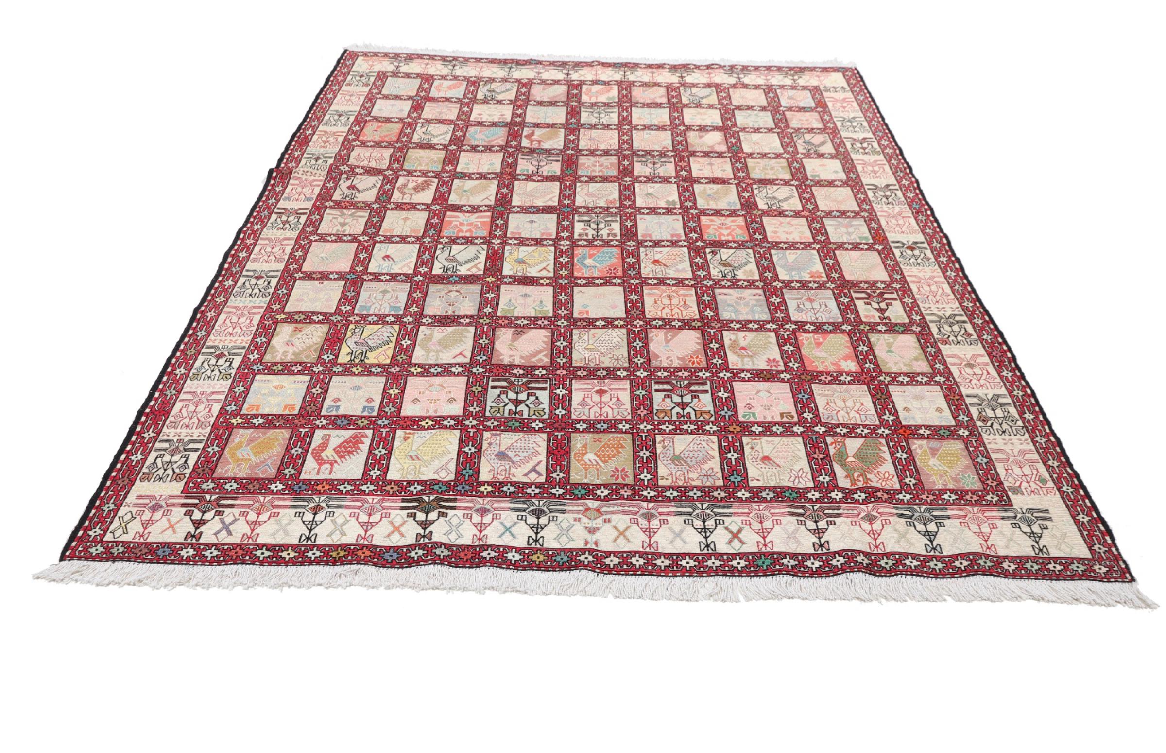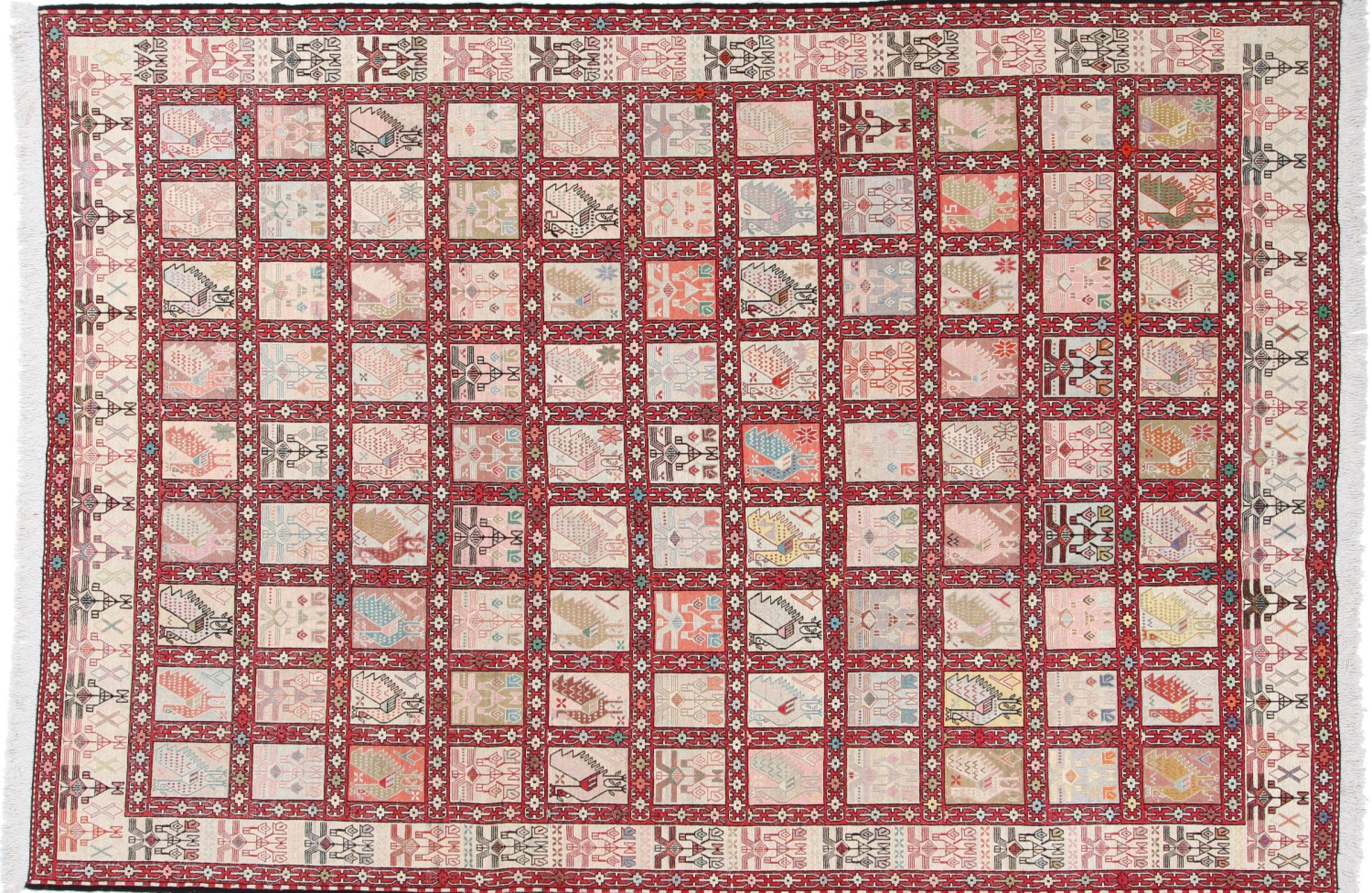 Denne håndvævede kelim fars kombinerer persiske mønstre og ornamenter med traditionen med flade vævninger. En fantastisk og moderne kombination af de mest populære koncepter fra Orienten. Dette skaber et tæppe med en bred vifte af anvendelser. Hvad enten det er som sengetæppe eller som tæppe foran sofaen – en Fars kelim gør det muligt og kan nu findes i de mest kendte indretningsmagasiner. Kilim Fars-tæpper er vævet i hånden i Iran og er derfor blandt kelimer af højeste kvalitet.
