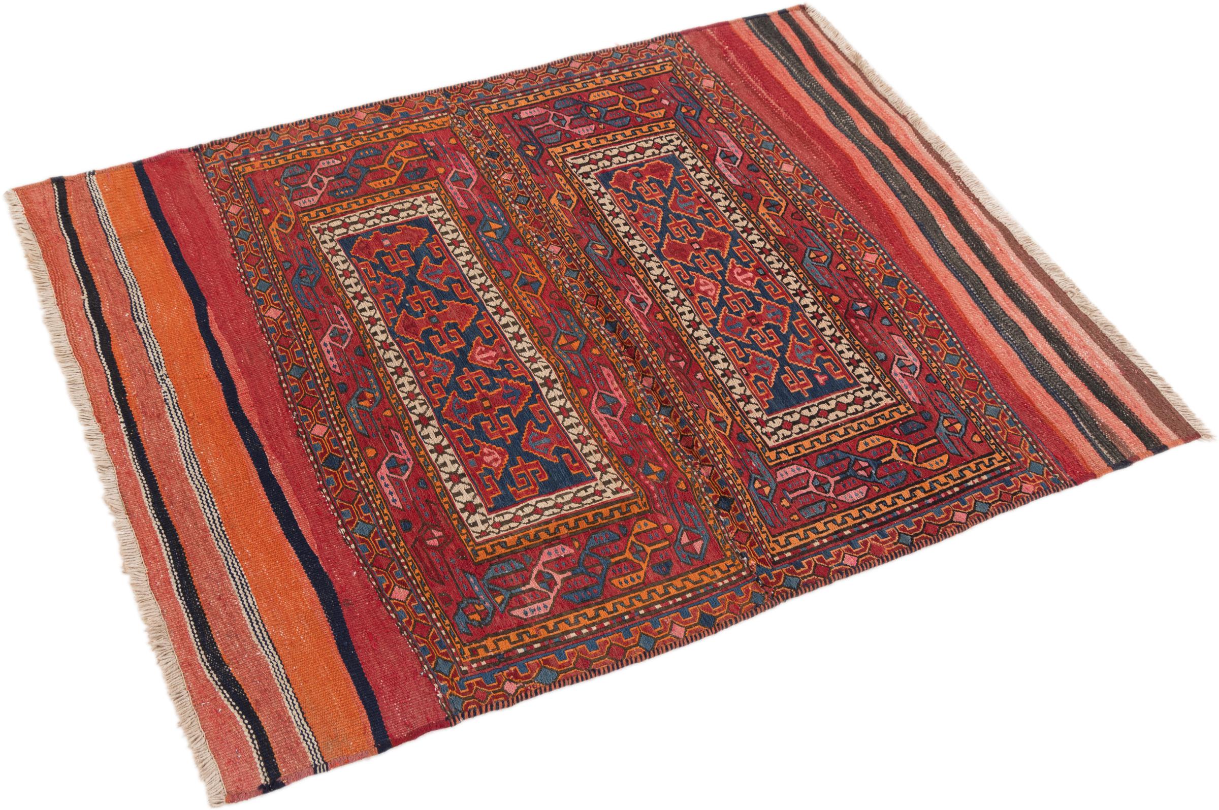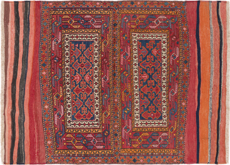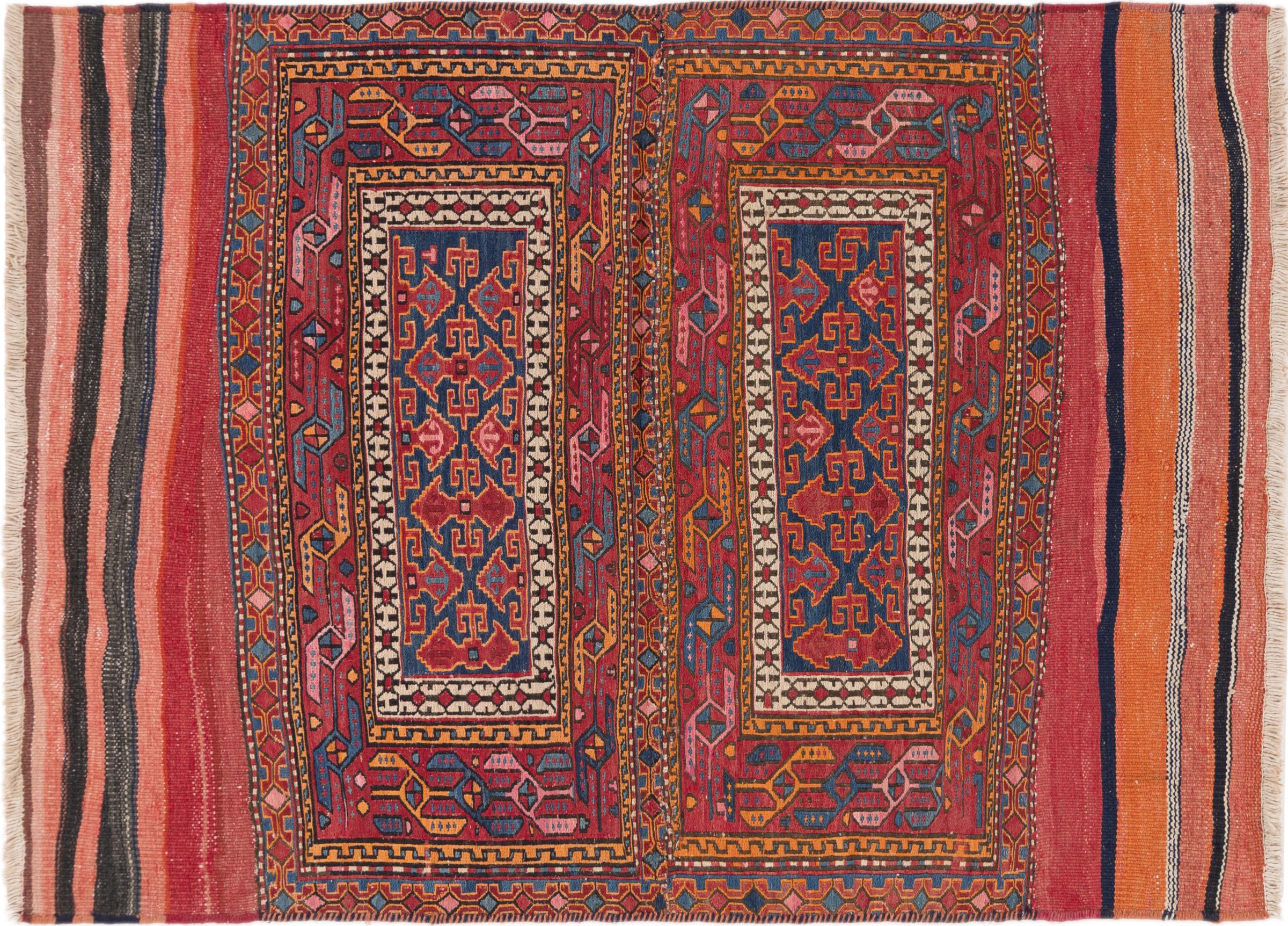 Denne smukke patchwork-kelim kombinerer det fine håndværk fra talentfulde tæppevævere fra Iran, Afghanistan, Tyrkiet og Kaukasus. De enkelte stykker af traditionelt producerede kelimer er blevet renset, bearbejdet og samlet til et nyt mønster. Resultatet er et orientalsk tæppe med et unikt design i patchwork-look, som er både let og robust takket være den vævede struktur.