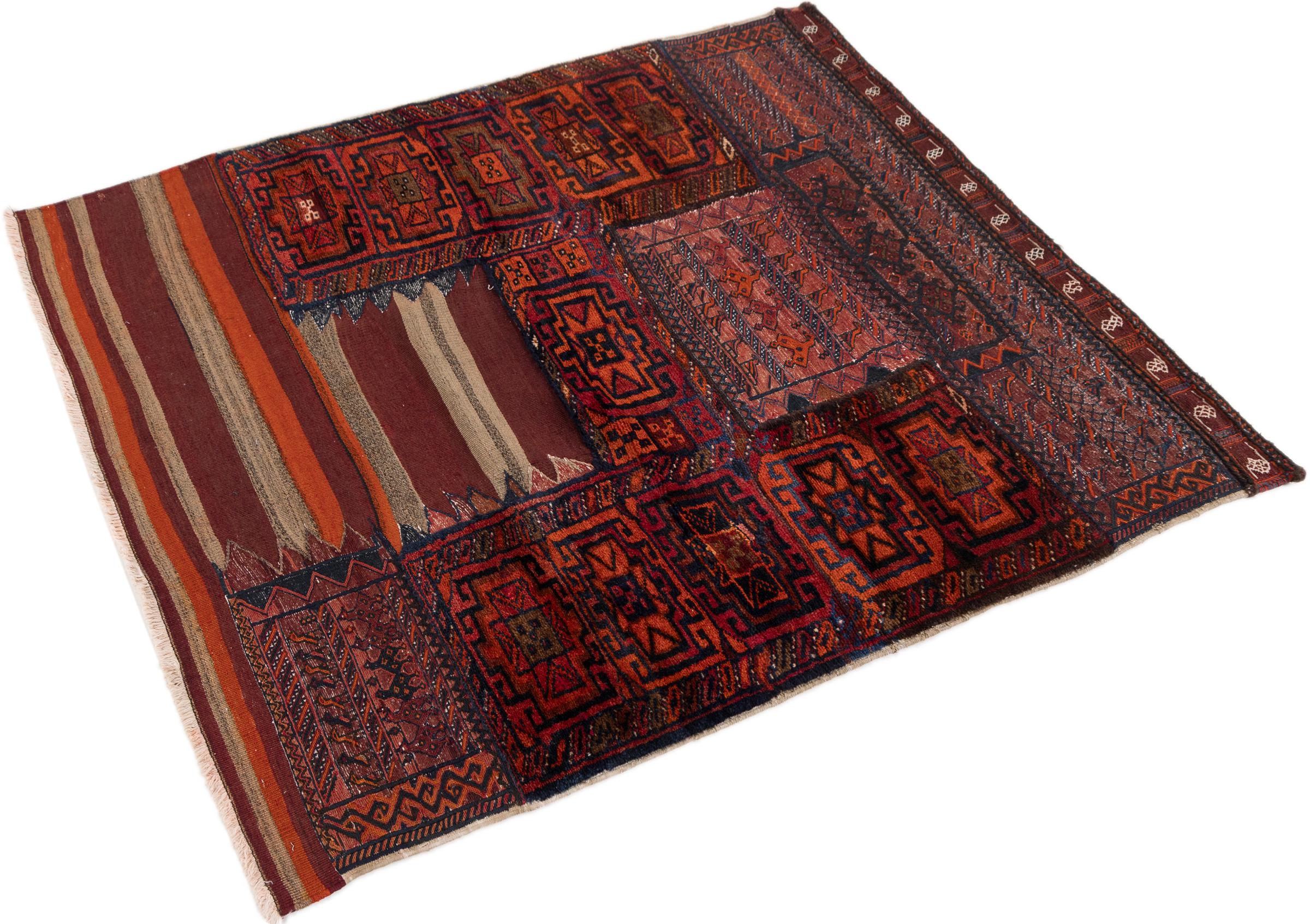 Denne smukke patchwork-kelim kombinerer det fine håndværk fra talentfulde tæppevævere fra Iran, Afghanistan, Tyrkiet og Kaukasus. De enkelte stykker af traditionelt producerede kelimer er blevet renset, bearbejdet og samlet til et nyt mønster. Resultatet er et orientalsk tæppe med et unikt design i patchwork-look, som er både let og robust takket være den vævede struktur.