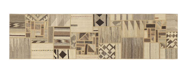 Denne smukke patchwork-kelim kombinerer det fine håndværk fra talentfulde tæppevævere fra Iran, Afghanistan, Tyrkiet og Kaukasus. De enkelte stykker af traditionelt producerede kelimer er blevet renset, bearbejdet og samlet til et nyt mønster. Resultatet er et orientalsk tæppe med et unikt design i patchwork-look, som er både let og robust takket være den vævede struktur.