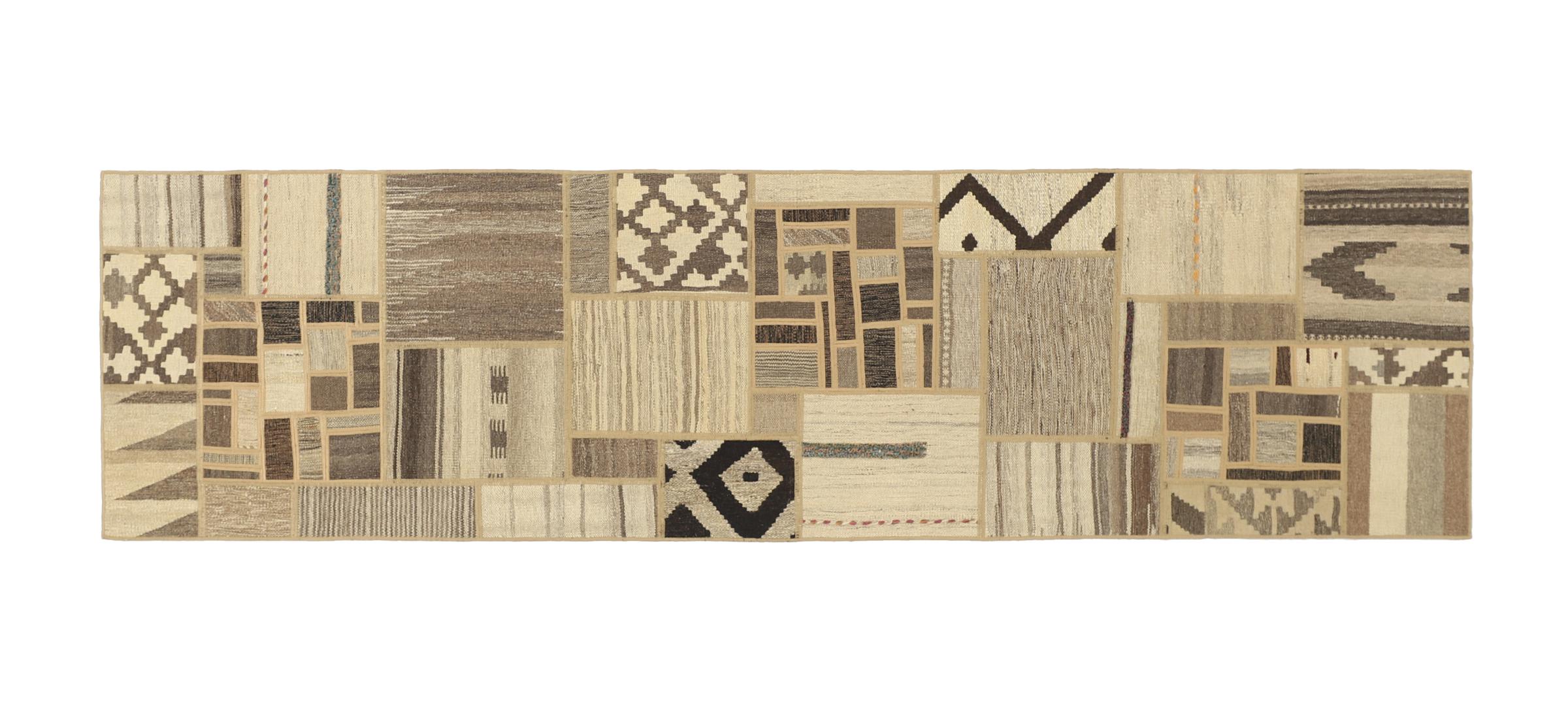 Denne smukke patchwork-kelim kombinerer det fine håndværk fra talentfulde tæppevævere fra Iran, Afghanistan, Tyrkiet og Kaukasus. De enkelte stykker af traditionelt producerede kelimer er blevet renset, bearbejdet og samlet til et nyt mønster. Resultatet er et orientalsk tæppe med et unikt design i patchwork-look, som er både let og robust takket være den vævede struktur.