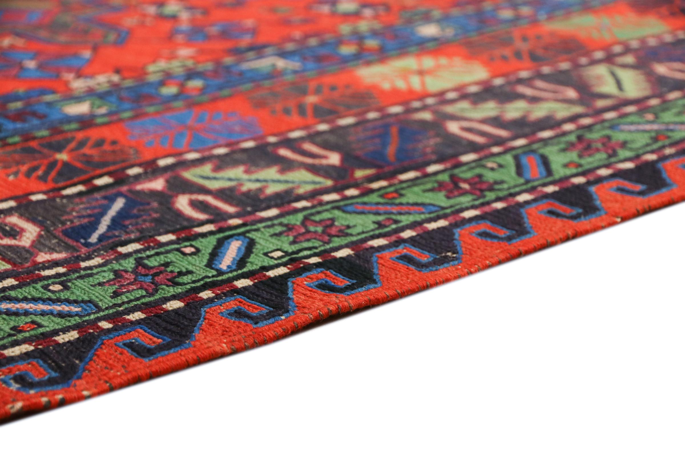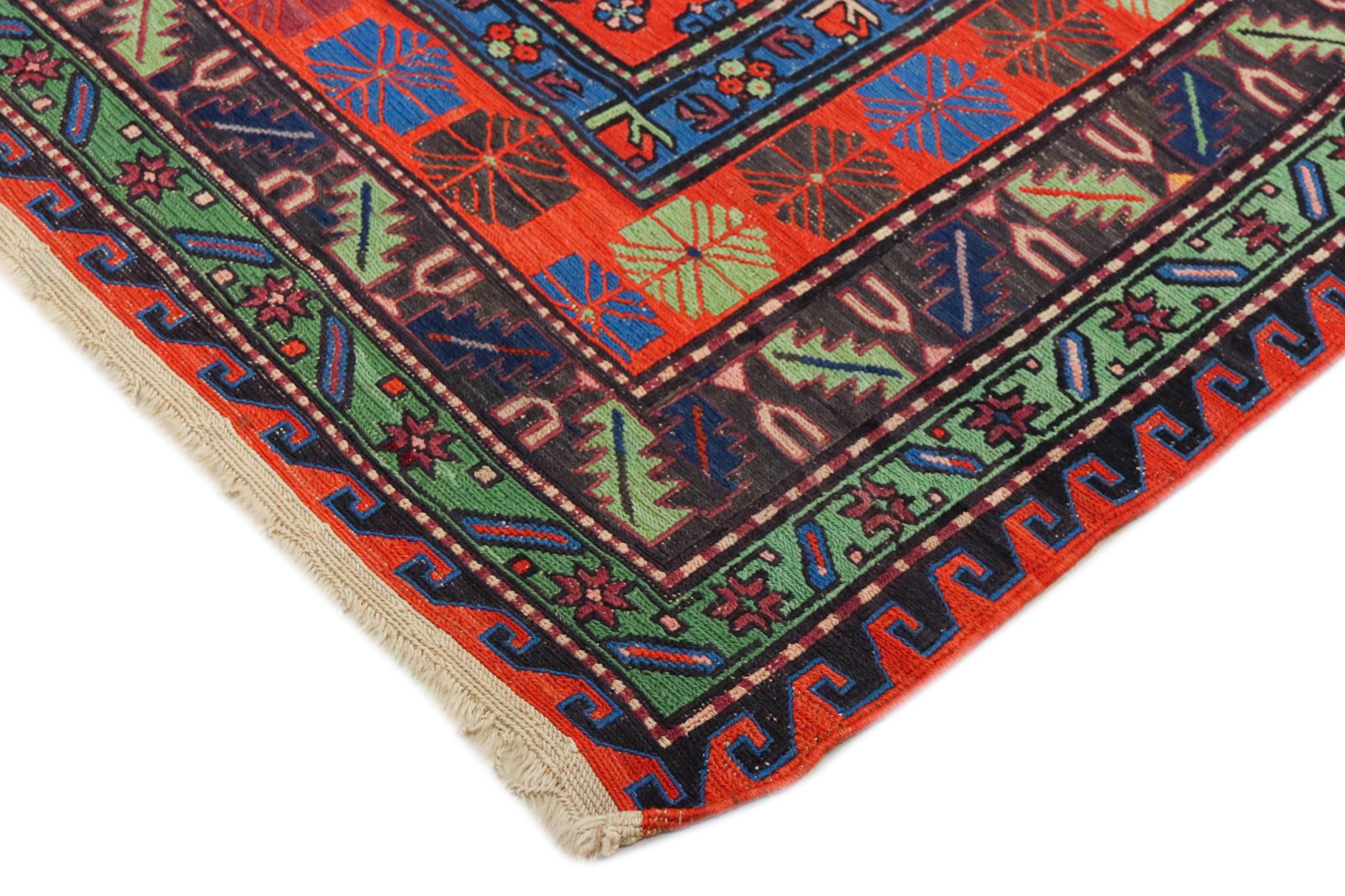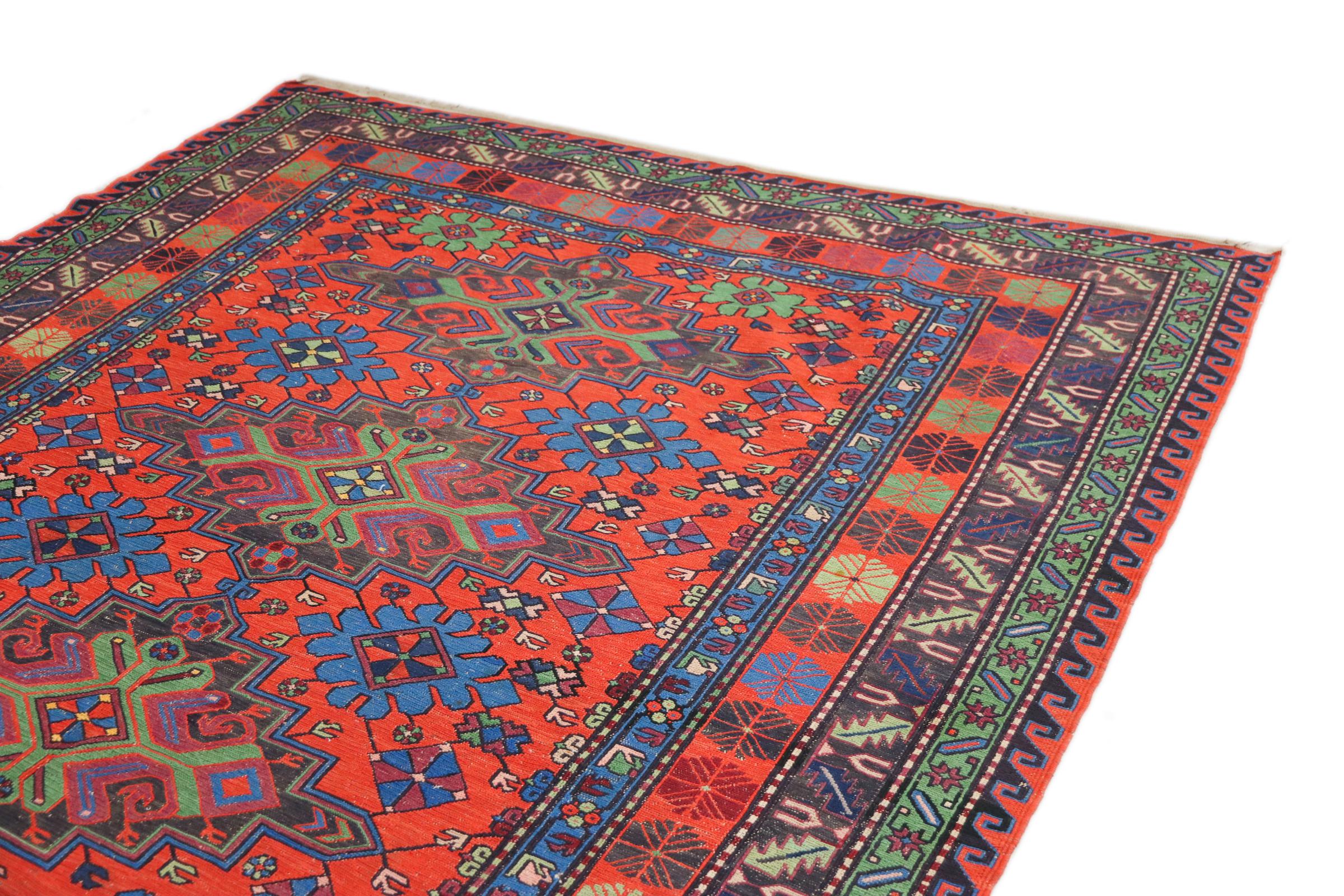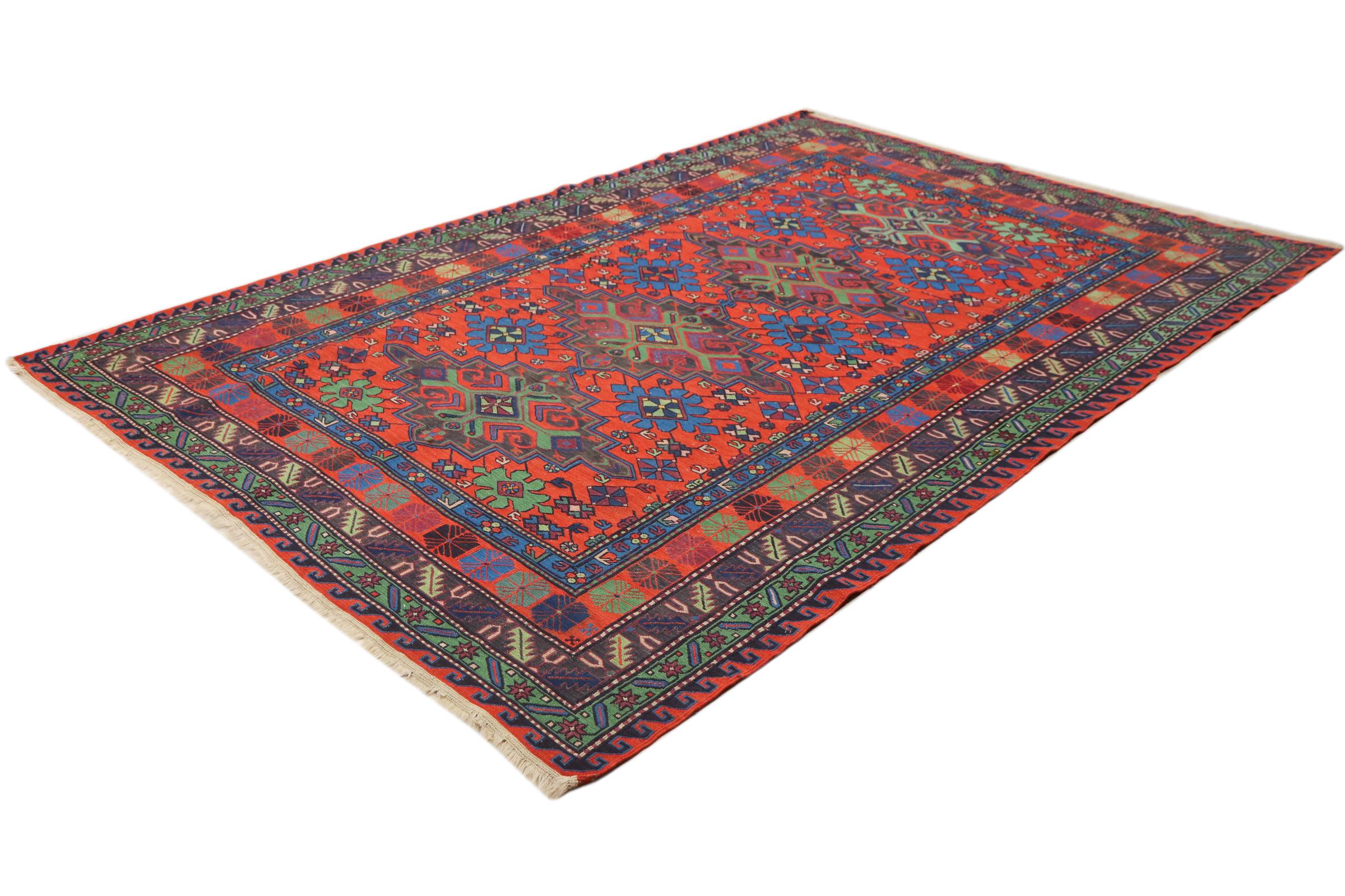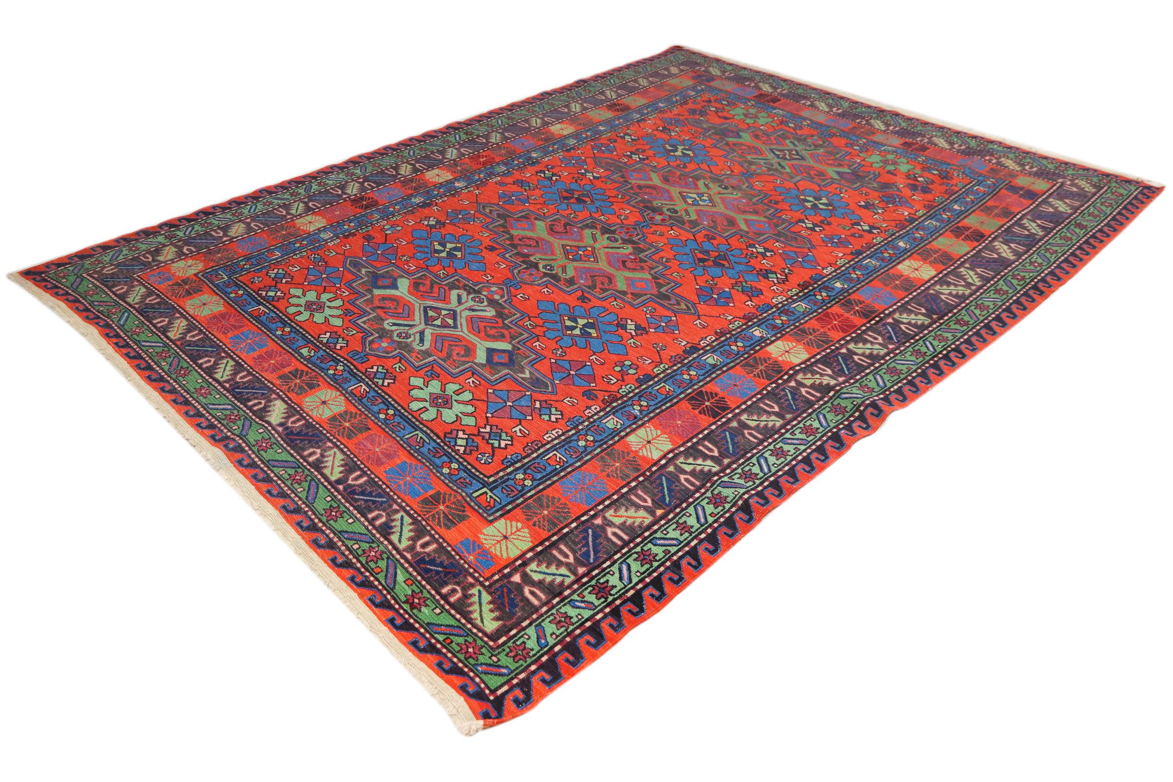 Dette håndvævede Soumakh blev lavet efter en særlig vikle metode. Dette er helt klart på bagsiden og de hængende skudender. Et dejligt, fladvævet orientalsk tæppe.