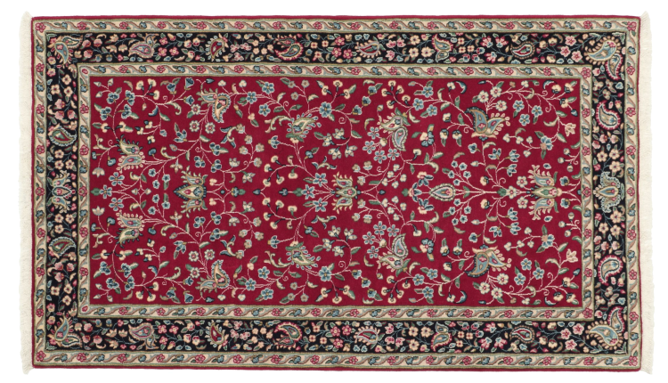 Tæppe-nr.: 308687009960799 Størrelse: 156x89 cm Tykkelse: ca. 12 mm Knuder: 320 000 - 360 000 / m² Forarbejdelse: Knyttet i hånden Luv: Håndspunden uld Kæde: Bomuld Oprindelse: Persien / Iran Alder: Ny Vægt: ca. 5 kg Antal på lager: Unik - Kun 1 tilbage på lager