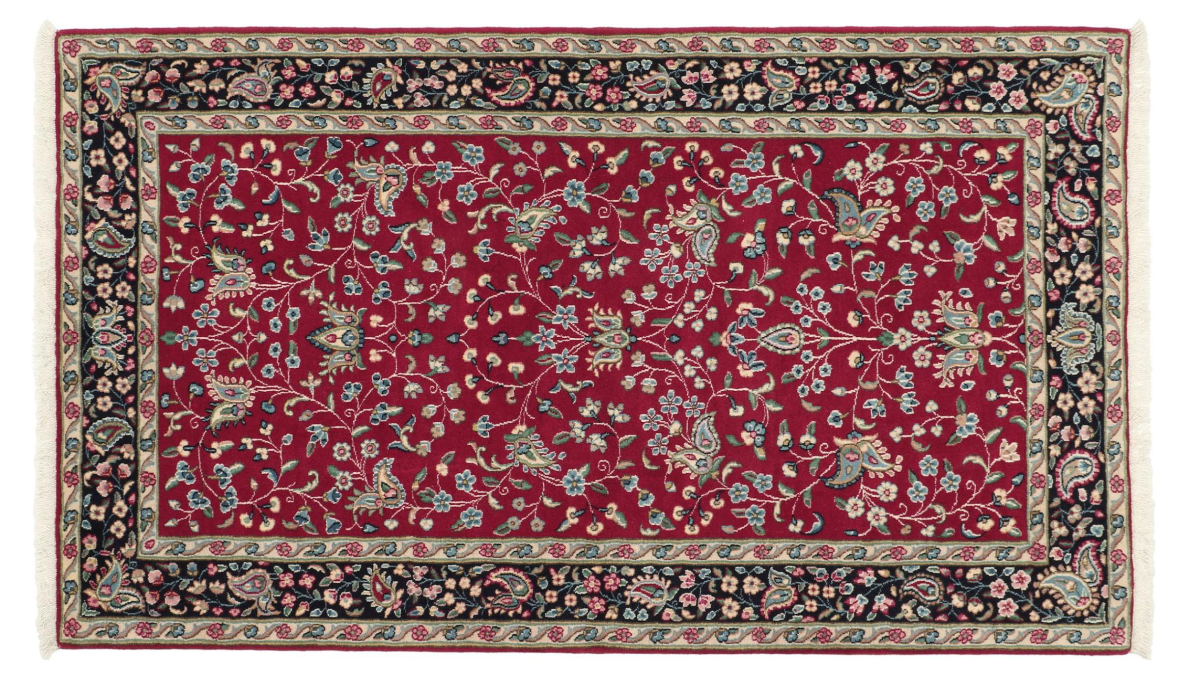 Dette Kerman tæppe er simpelthen overbevisende: enige i kvalitet og design. Den var håndlavet i byen Kerman, som er en oase i en ørken langt fra Teheran, af garn af høj kvalitet. Se selv. Det vil komme dig til gavn.