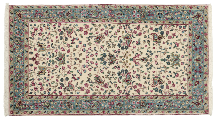 Tæppe-nr.: 308704004616694 Størrelse: 157x89 cm Tykkelse: ca. 12 mm Knuder: 320 000 - 360 000 / m² Forarbejdelse: Knyttet i hånden Luv: Håndspunden uld Kæde: Bomuld Oprindelse: Persien / Iran Alder: Ny Vægt: ca. 5 kg Antal på lager: Unik - Kun 1 tilbage på lager