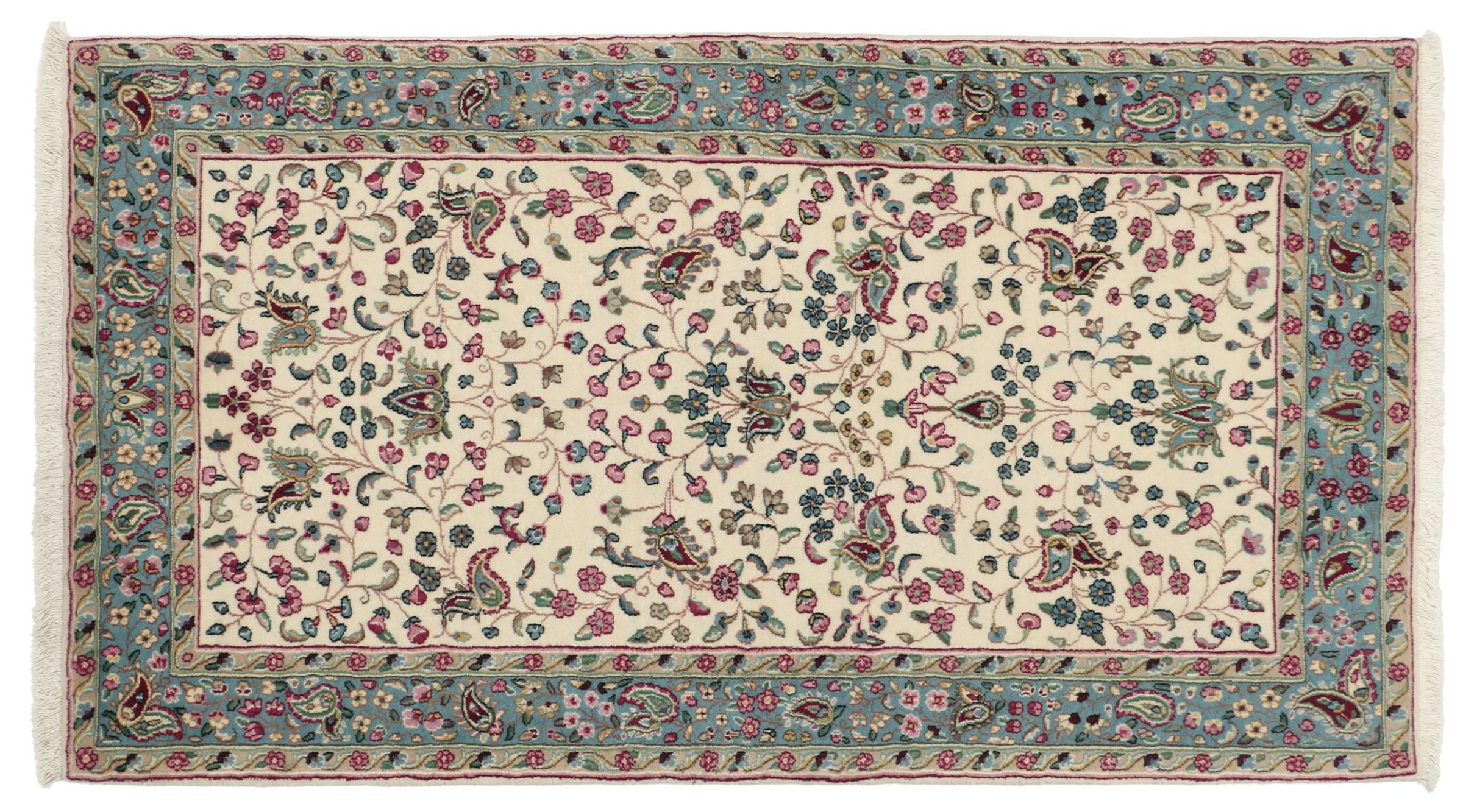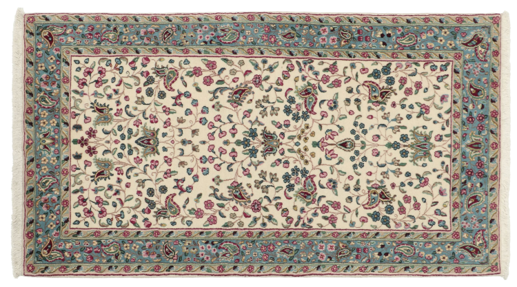 Tæppe-nr.: 308705007694684 Størrelse: 161x89 cm Tykkelse: ca. 12 mm Knuder: 320 000 - 360 000 / m² Forarbejdelse: Knyttet i hånden Luv: Håndspunden uld Kæde: Bomuld Oprindelse: Persien / Iran Alder: Ny Vægt: ca. 5 kg Antal på lager: Unik - Kun 1 tilbage på lager