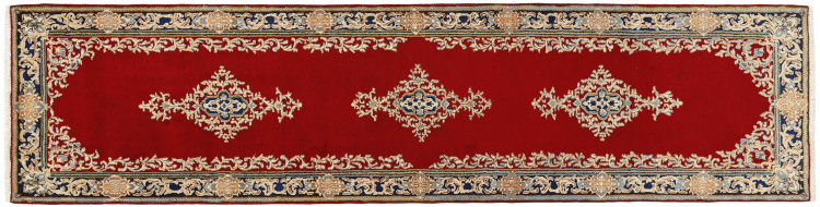 Tæppe-nr.: 264889001605957 Størrelse: 301x74 cm Tykkelse: ca. 12 mm Knuder: 200 000 - 250 000 / m² Forarbejdelse: Knyttet i hånden Luv: Håndspunden uld Kæde: Bomuld Oprindelse: Persien / Iran Alder: Ny Vægt: ca. 8 kg Antal på lager: Unik - Kun 1 tilbage på lager