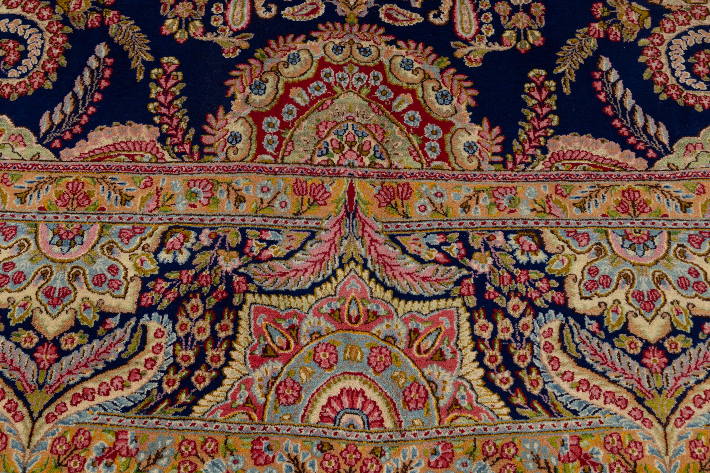 Dette Kerman tæppe er simpelthen overbevisende: enige i kvalitet og design. Den var håndlavet i byen Kerman, som er en oase i en ørken langt fra Teheran, af garn af høj kvalitet. Se selv. Det vil komme dig til gavn.
