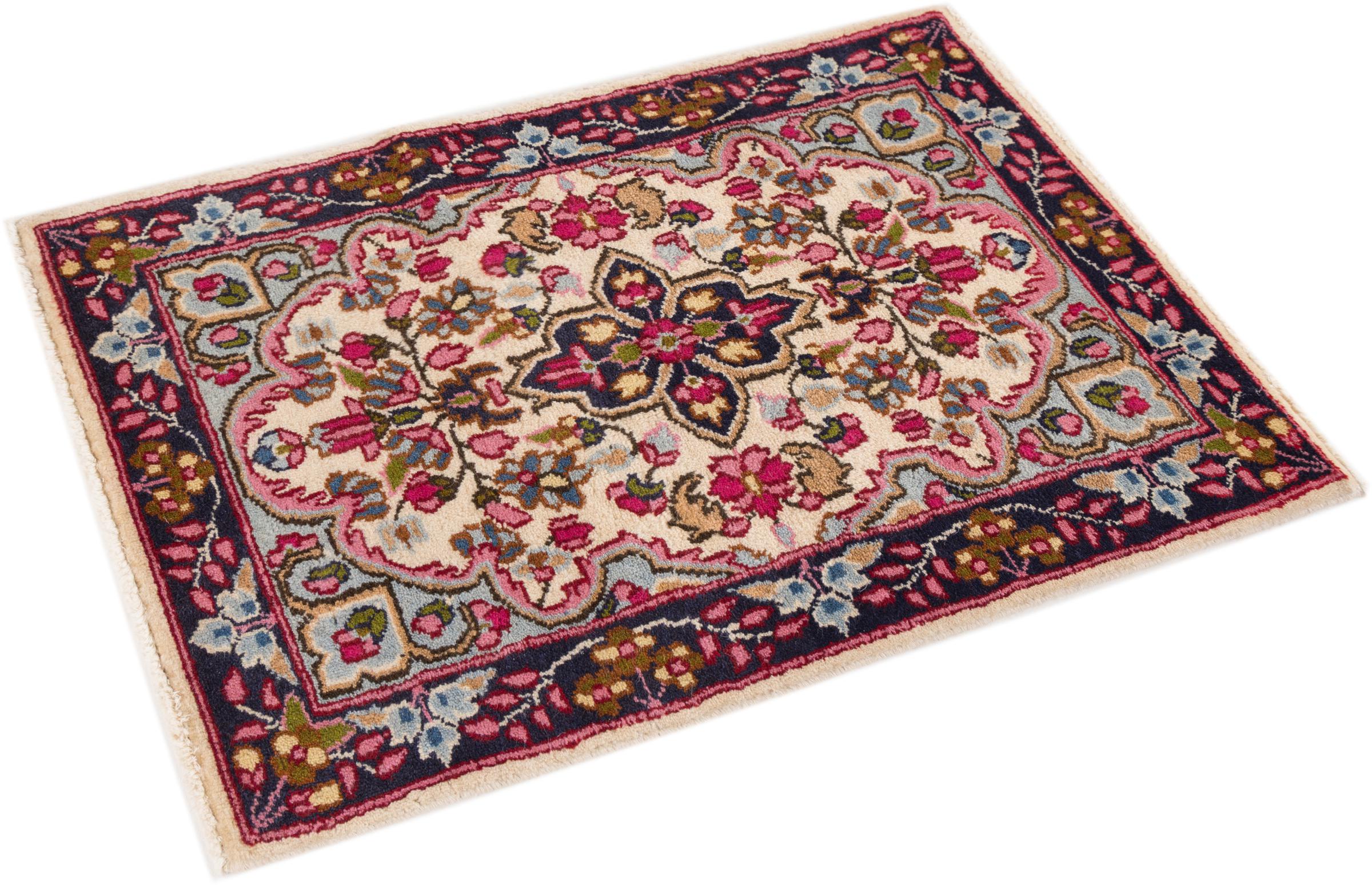 Tæppe-nr.: 296554004312 Størrelse: 90x60 cm Tykkelse: ca. 12 mm Knuder: 128 000 - 160 000 / m² Forarbejdelse: Knyttet i hånden Luv: Håndspunden uld Kæde: Bomuld Oprindelse: Persien / Iran Alder: Ny Vægt: ca. 2 kg Antal på lager: Unik - Kun 1 tilbage på lager