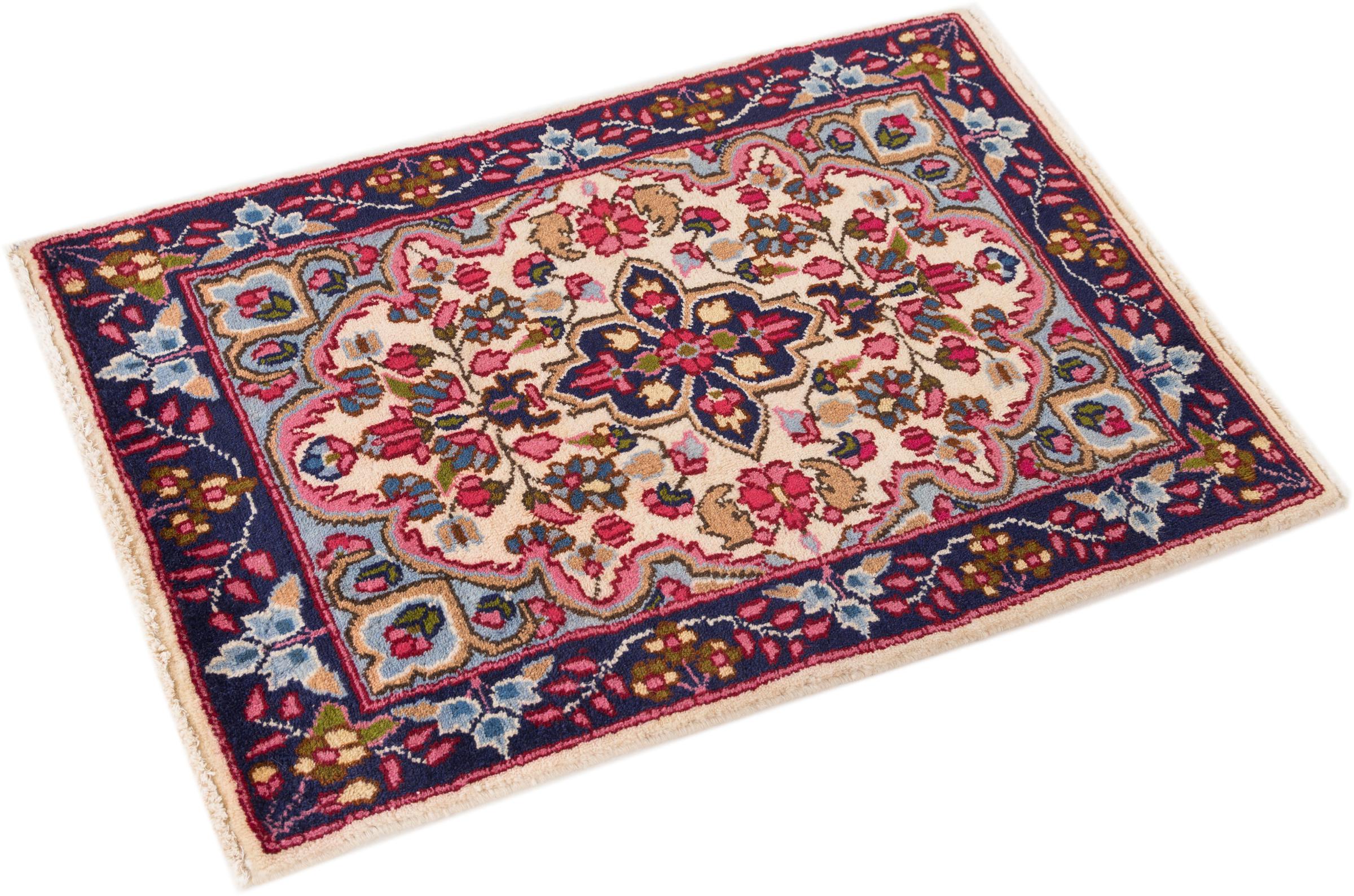 Tæppe-nr.: 296569004295 Størrelse: 94x58 cm Tykkelse: ca. 12 mm Knuder: 128 000 - 160 000 / m² Forarbejdelse: Knyttet i hånden Luv: Håndspunden uld Kæde: Bomuld Oprindelse: Persien / Iran Alder: Ny Vægt: ca. 2 kg Antal på lager: Unik - Kun 1 tilbage på lager