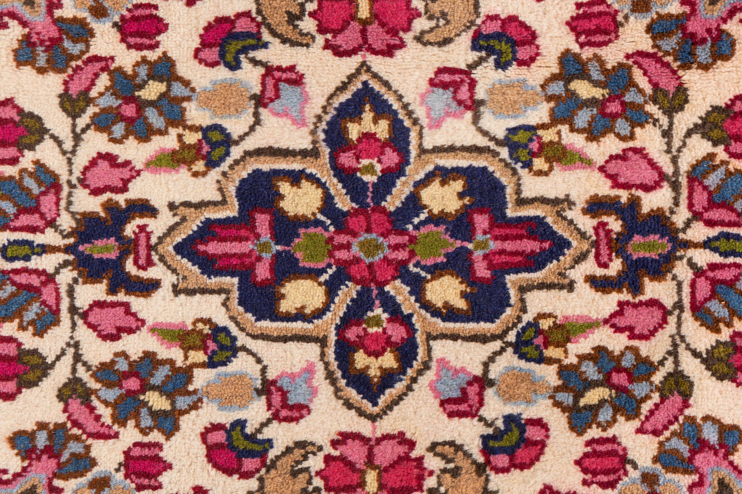 Dette Kerman tæppe er simpelthen overbevisende: enige i kvalitet og design. Den var håndlavet i byen Kerman, som er en oase i en ørken langt fra Teheran, af garn af høj kvalitet. Se selv. Det vil komme dig til gavn.