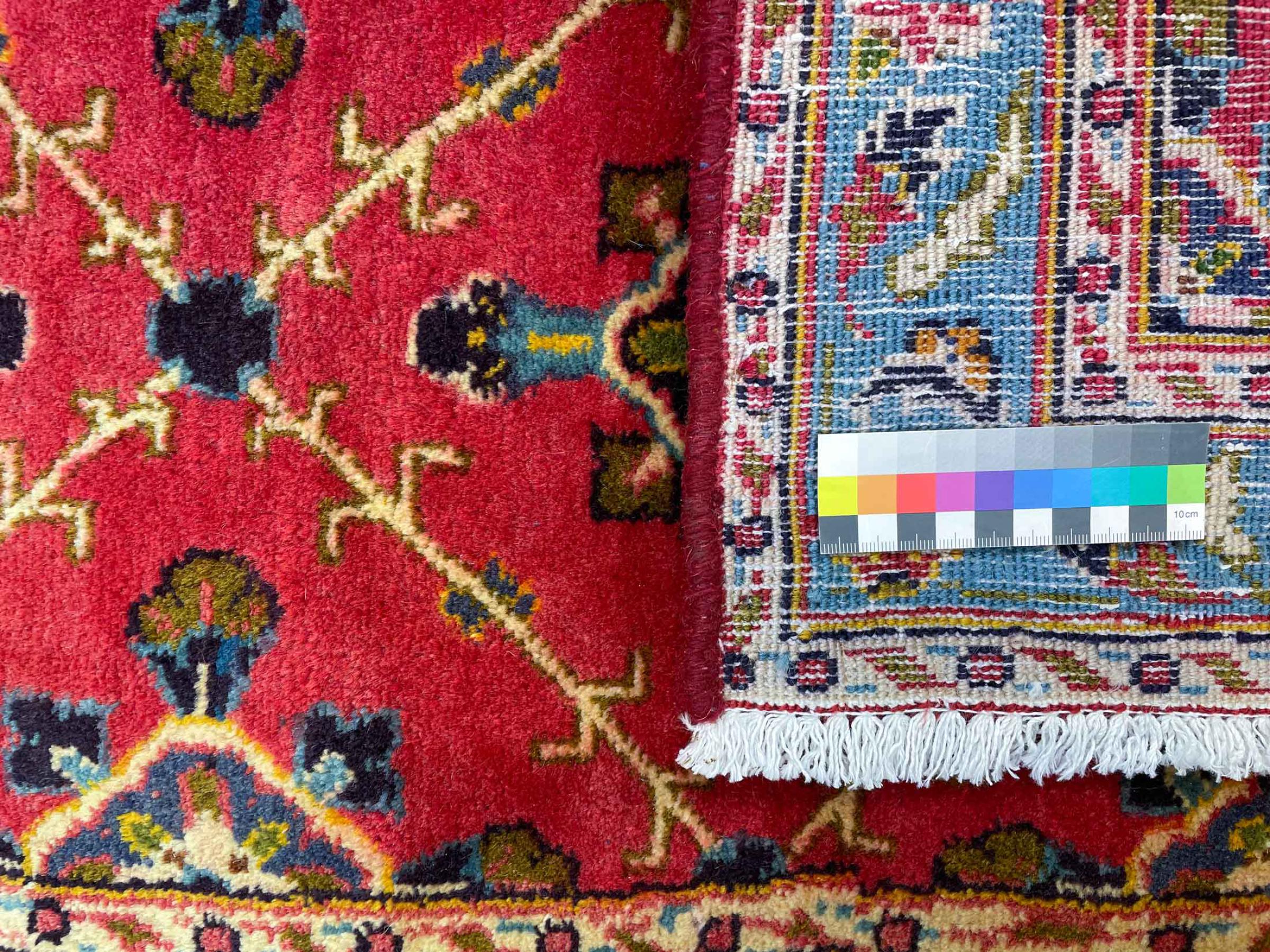 Dette tæppe fra Kashan (Keshan) er holdt i sit meget traditionelle og typiske persiske design med smukke ornamenter. Kashan tæpper er meget populære på grund af deres usædvanligt elegante design. Disse tæpper stammer fra Kashan, en by på den gamle Silkevej. Dette tæppe er blevet knyttet i hånden af højkvalitets fåreuld og vil være et unikt højdepunkt i dit hjem.