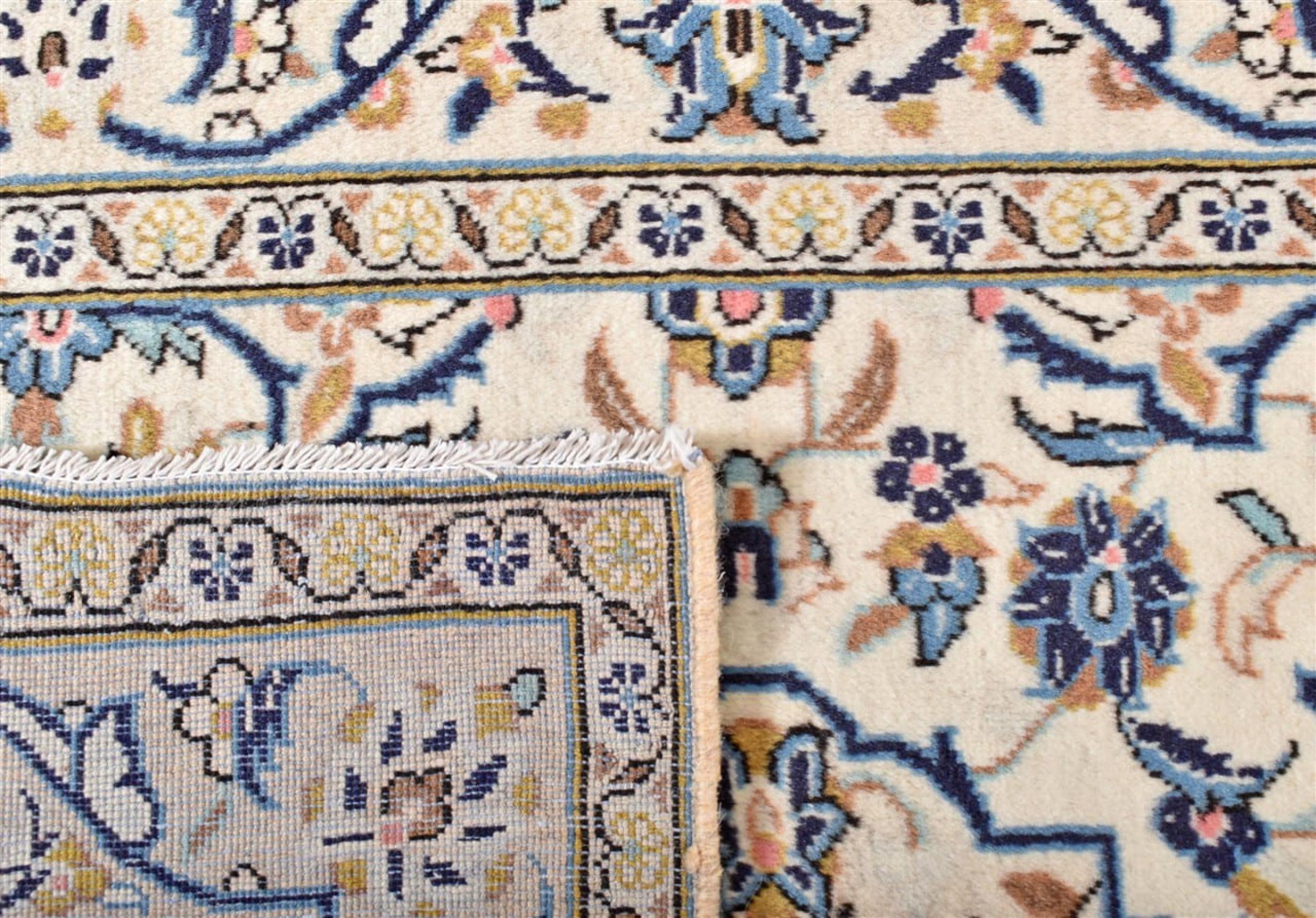 Dette tæppe fra Kashan (Keshan) er holdt i sit meget traditionelle og typiske persiske design med smukke ornamenter. Kashan tæpper er meget populære på grund af deres usædvanligt elegante design. Disse tæpper stammer fra Kashan, en by på den gamle Silkevej. Dette tæppe er blevet knyttet i hånden af højkvalitets fåreuld og vil være et unikt højdepunkt i dit hjem.