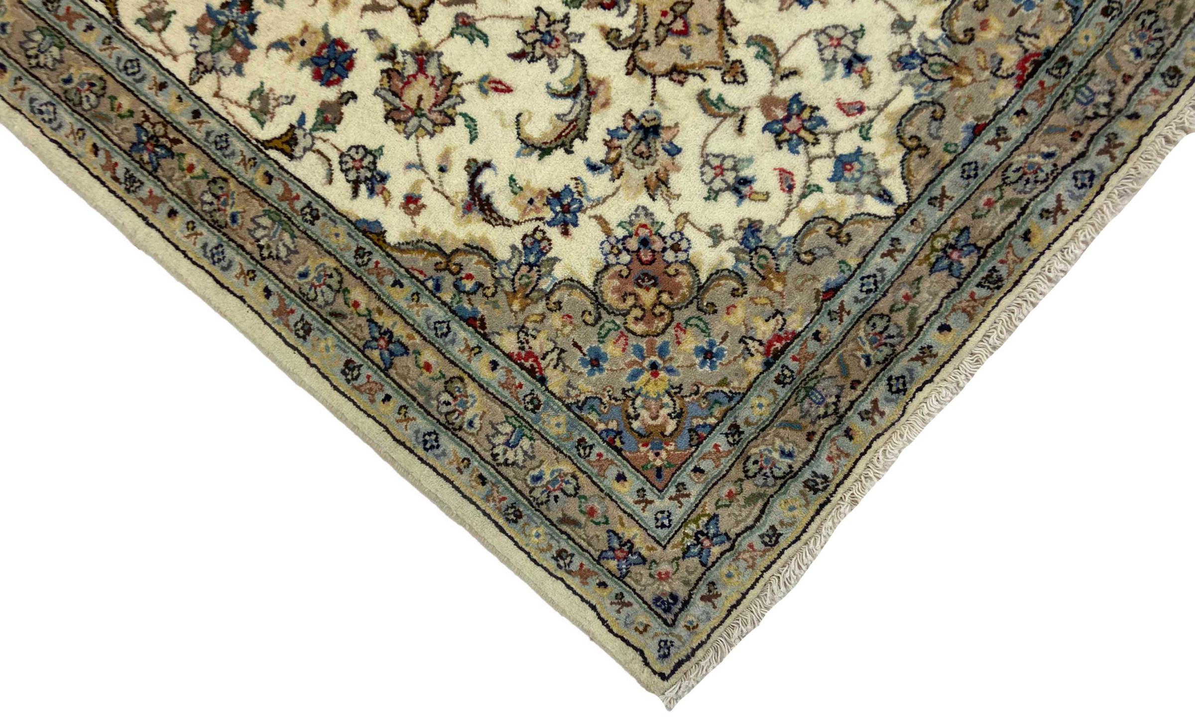 Dette tæppe fra Kashan (Keshan) er holdt i sit meget traditionelle og typiske persiske design med smukke ornamenter. Kashan tæpper er meget populære på grund af deres usædvanligt elegante design. Disse tæpper stammer fra Kashan, en by på den gamle Silkevej. Dette tæppe er blevet knyttet i hånden af højkvalitets fåreuld og vil være et unikt højdepunkt i dit hjem.