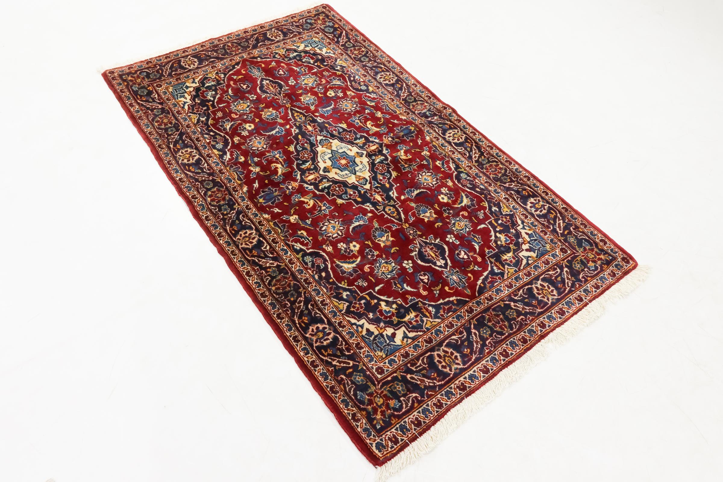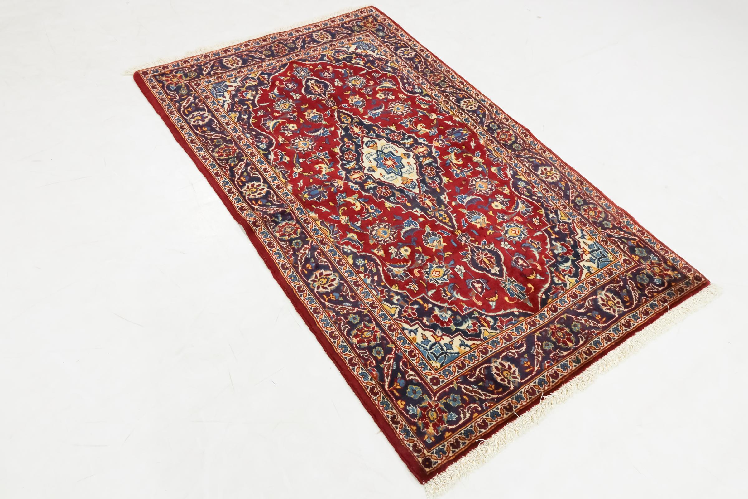 Dette tæppe fra Kashan (Keshan) er holdt i sit meget traditionelle og typiske persiske design med smukke ornamenter. Kashan tæpper er meget populære på grund af deres usædvanligt elegante design. Disse tæpper stammer fra Kashan, en by på den gamle Silkevej. Dette tæppe er blevet knyttet i hånden af højkvalitets fåreuld og vil være et unikt højdepunkt i dit hjem.