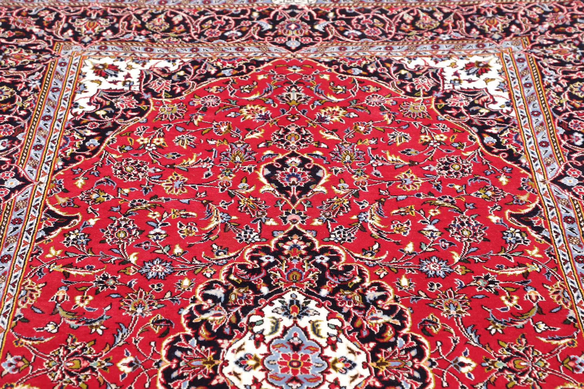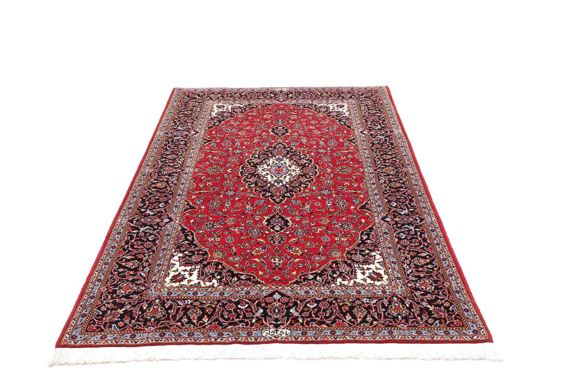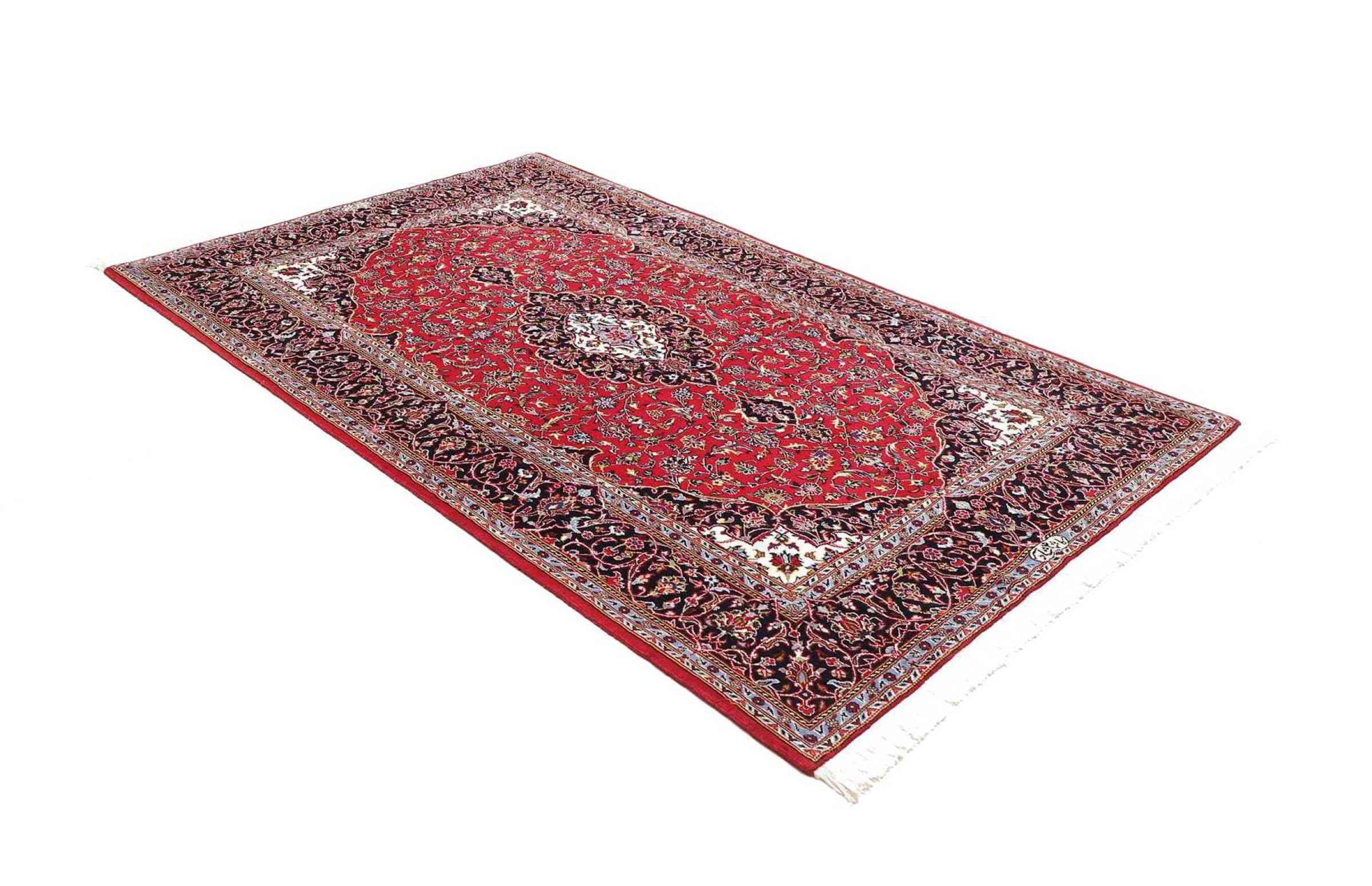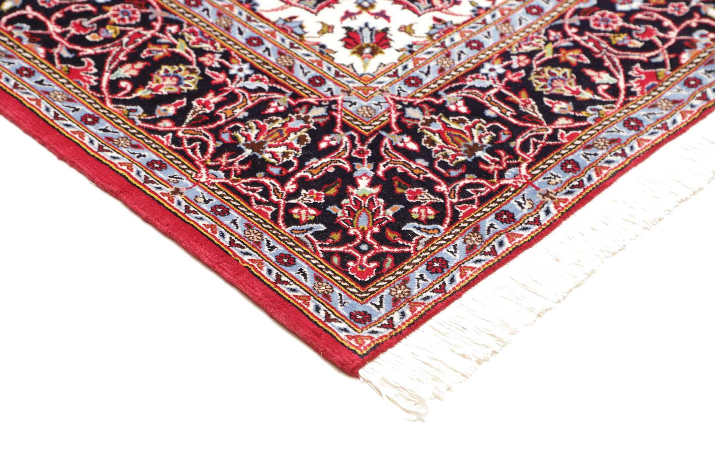 Dette tæppe fra Kashan (Keshan) er holdt i sit meget traditionelle og typiske persiske design med smukke ornamenter. Kashan tæpper er meget populære på grund af deres usædvanligt elegante design. Disse tæpper stammer fra Kashan, en by på den gamle Silkevej. Dette tæppe er blevet knyttet i hånden af højkvalitets fåreuld og vil være et unikt højdepunkt i dit hjem.