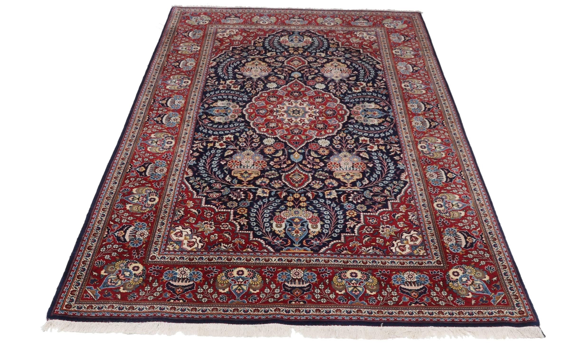 Dette tæppe fra Kashan (Keshan) er holdt i sit meget traditionelle og typiske persiske design med smukke ornamenter. Kashan tæpper er meget populære på grund af deres usædvanligt elegante design. Disse tæpper stammer fra Kashan, en by på den gamle Silkevej. Dette tæppe er blevet knyttet i hånden af højkvalitets fåreuld og vil være et unikt højdepunkt i dit hjem.