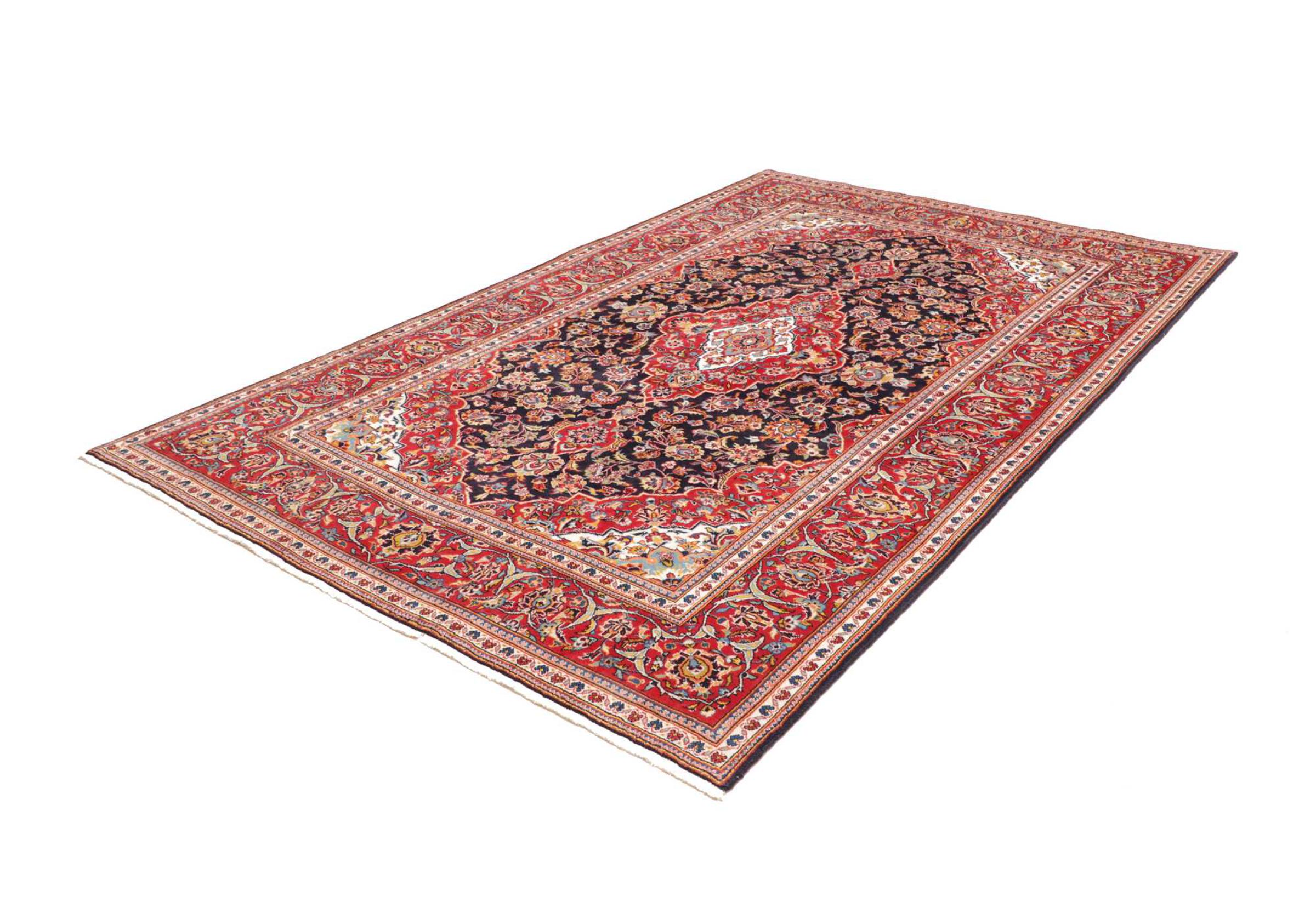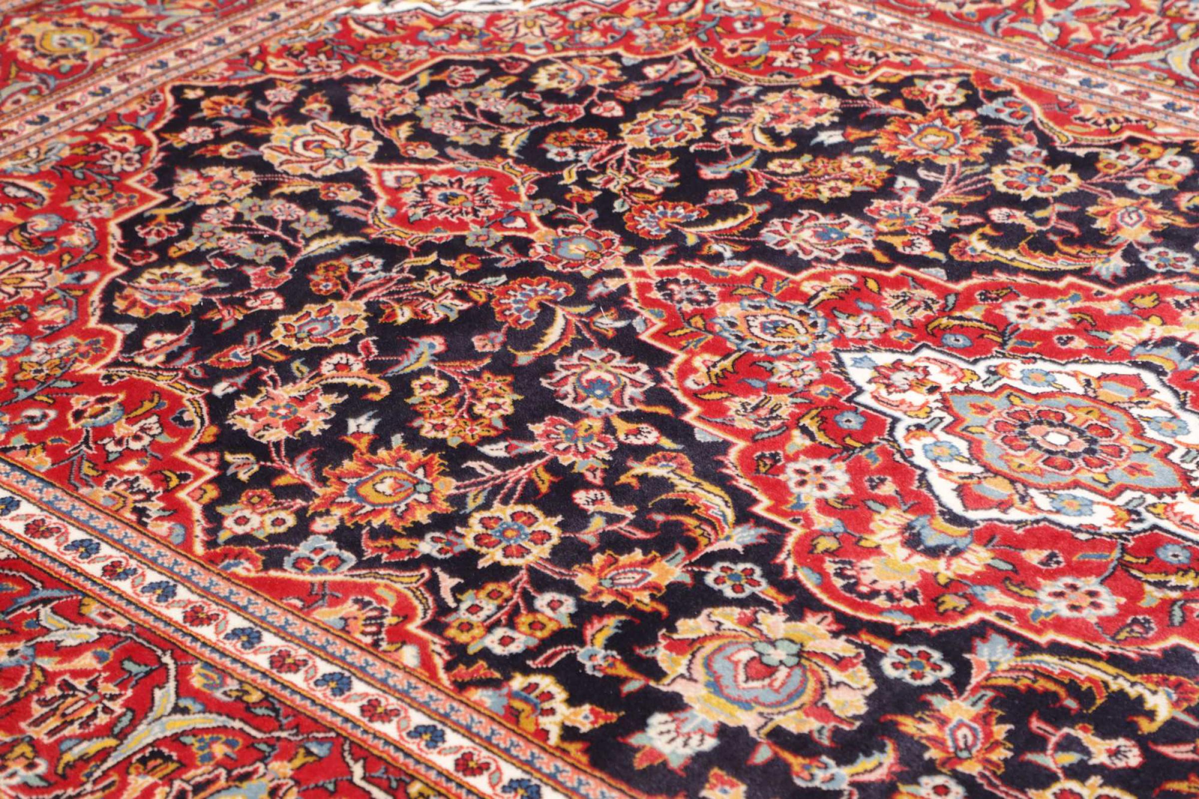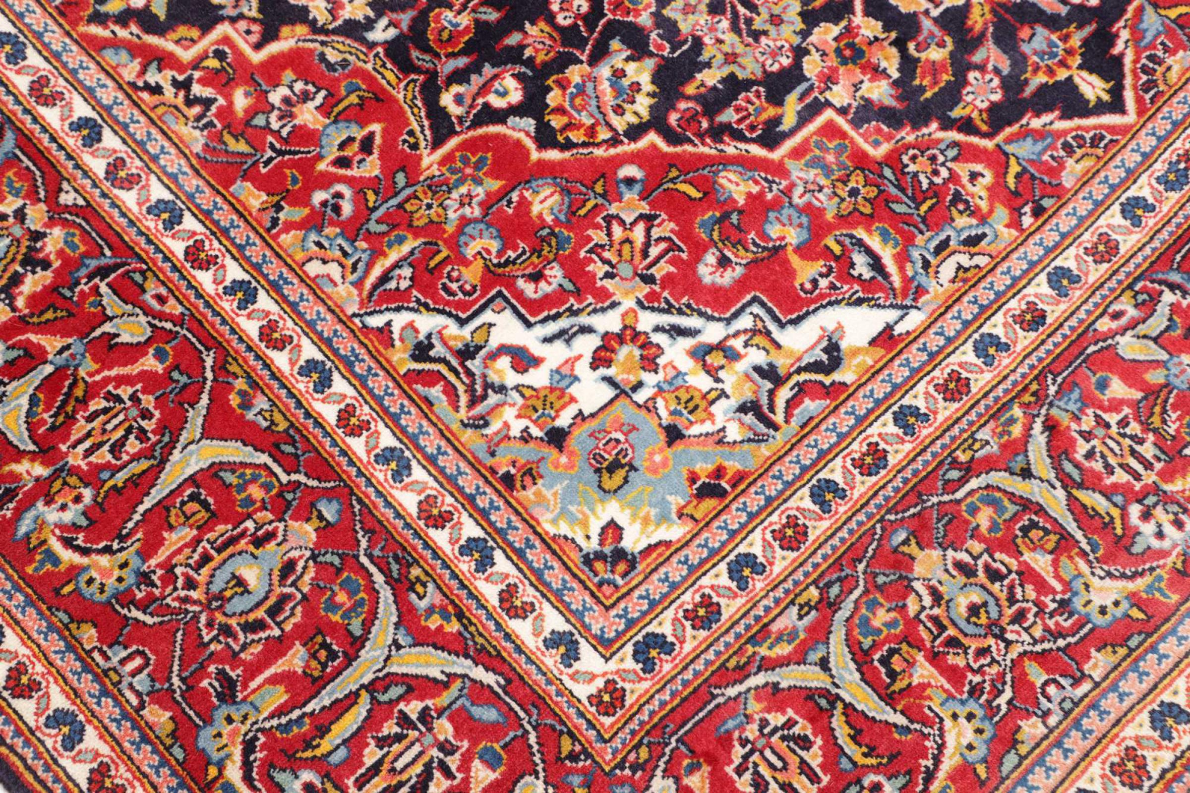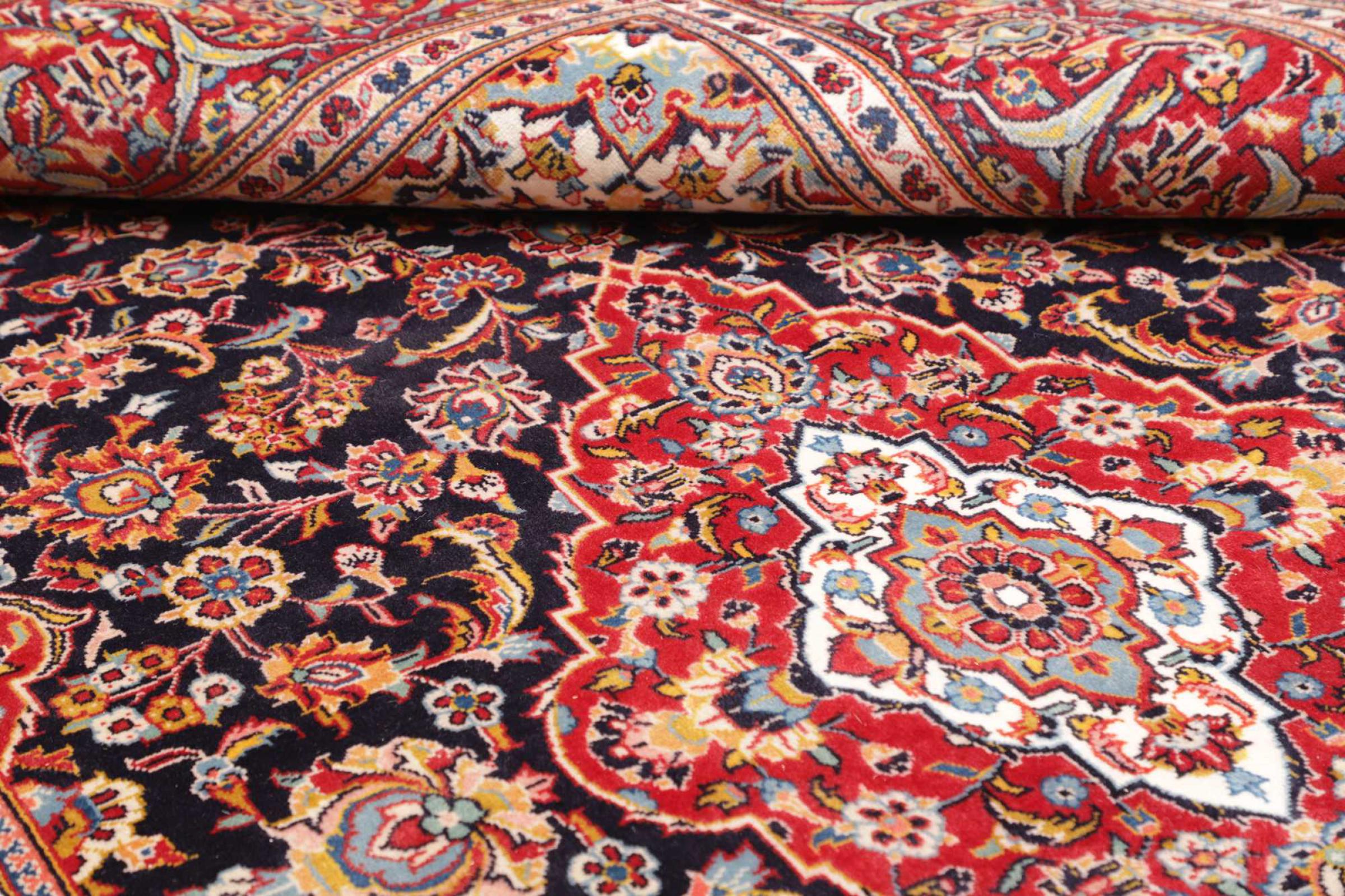 Dette tæppe fra Kashan (Keshan) er holdt i sit meget traditionelle og typiske persiske design med smukke ornamenter. Kashan tæpper er meget populære på grund af deres usædvanligt elegante design. Disse tæpper stammer fra Kashan, en by på den gamle Silkevej. Dette tæppe er blevet knyttet i hånden af højkvalitets fåreuld og vil være et unikt højdepunkt i dit hjem.