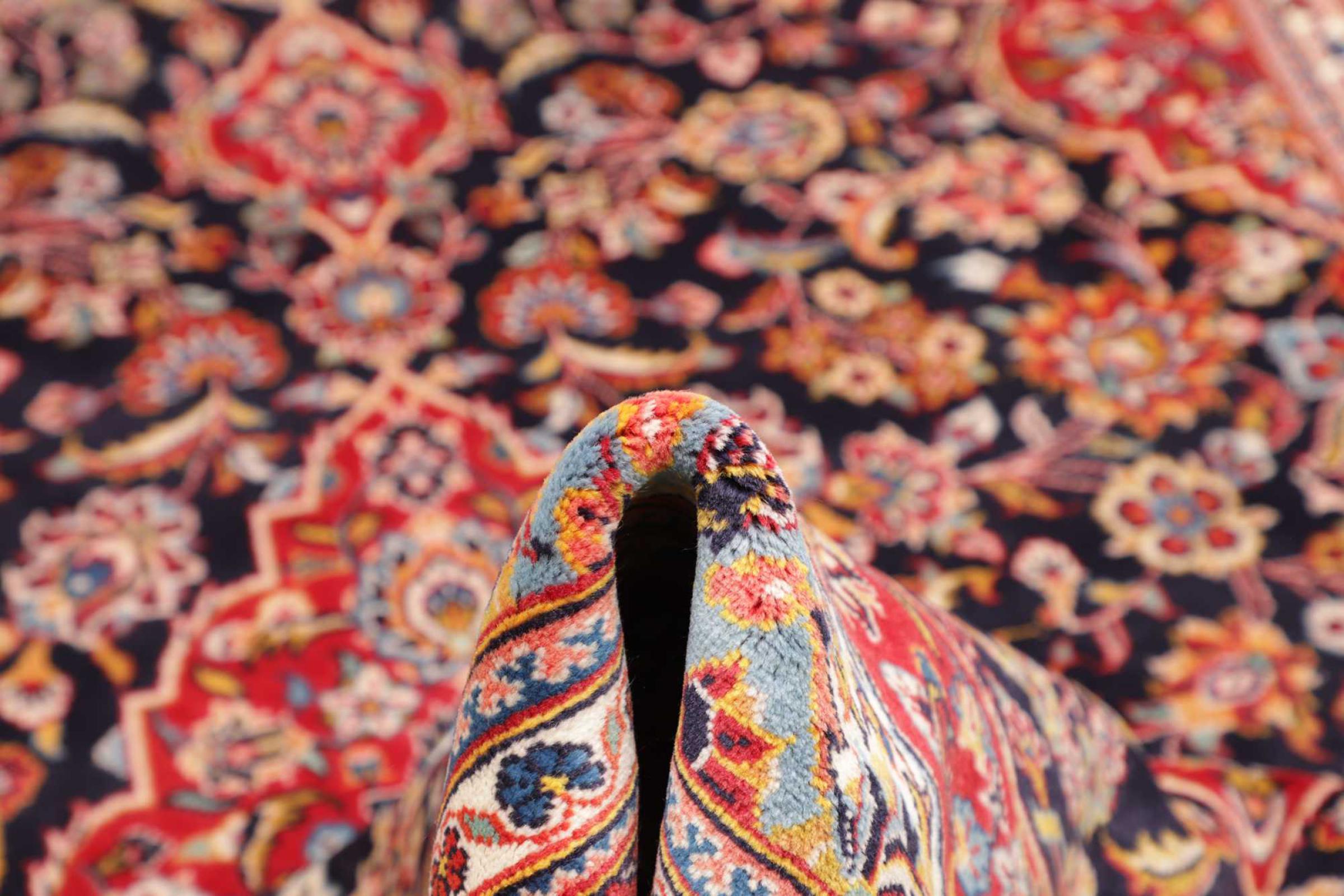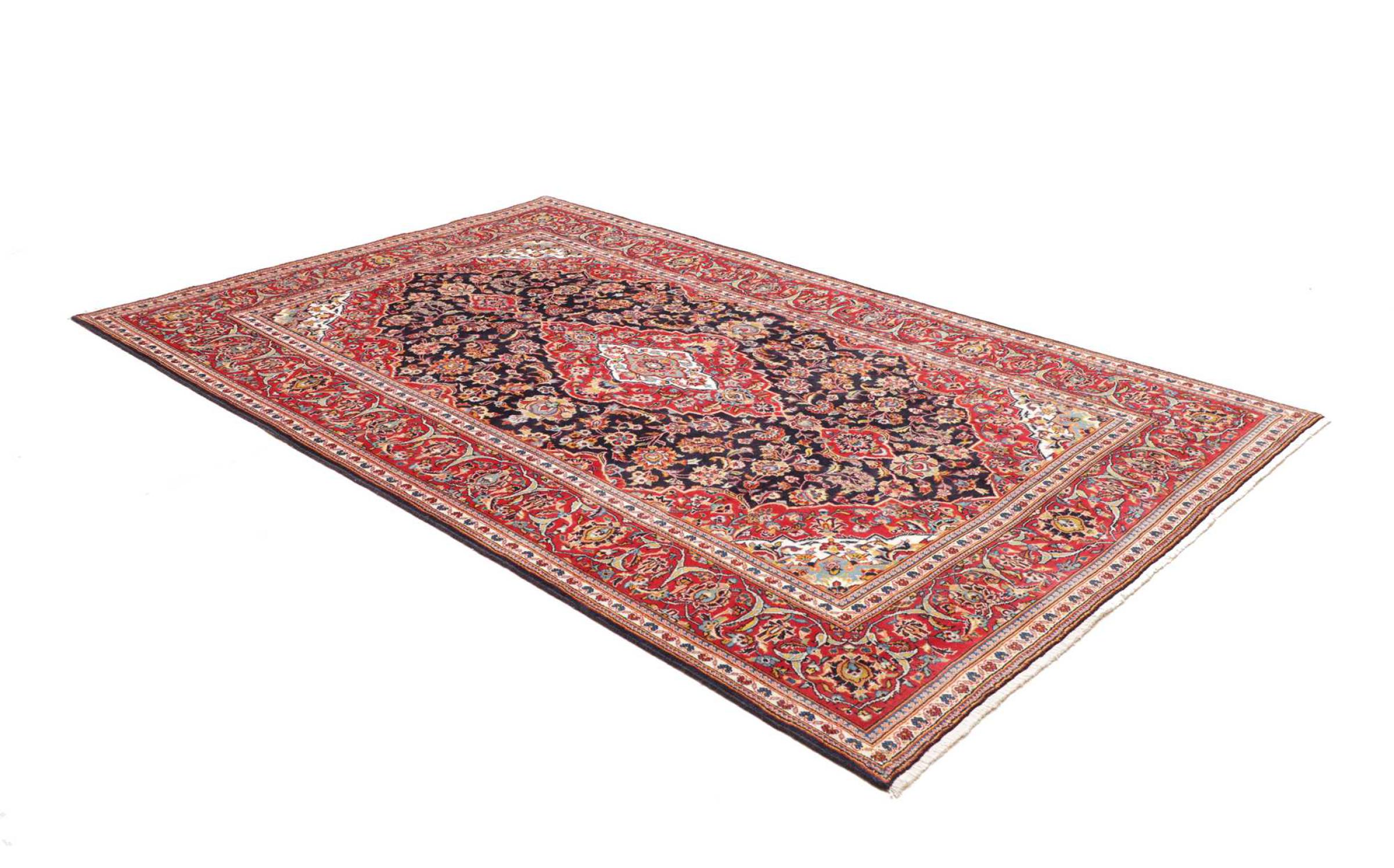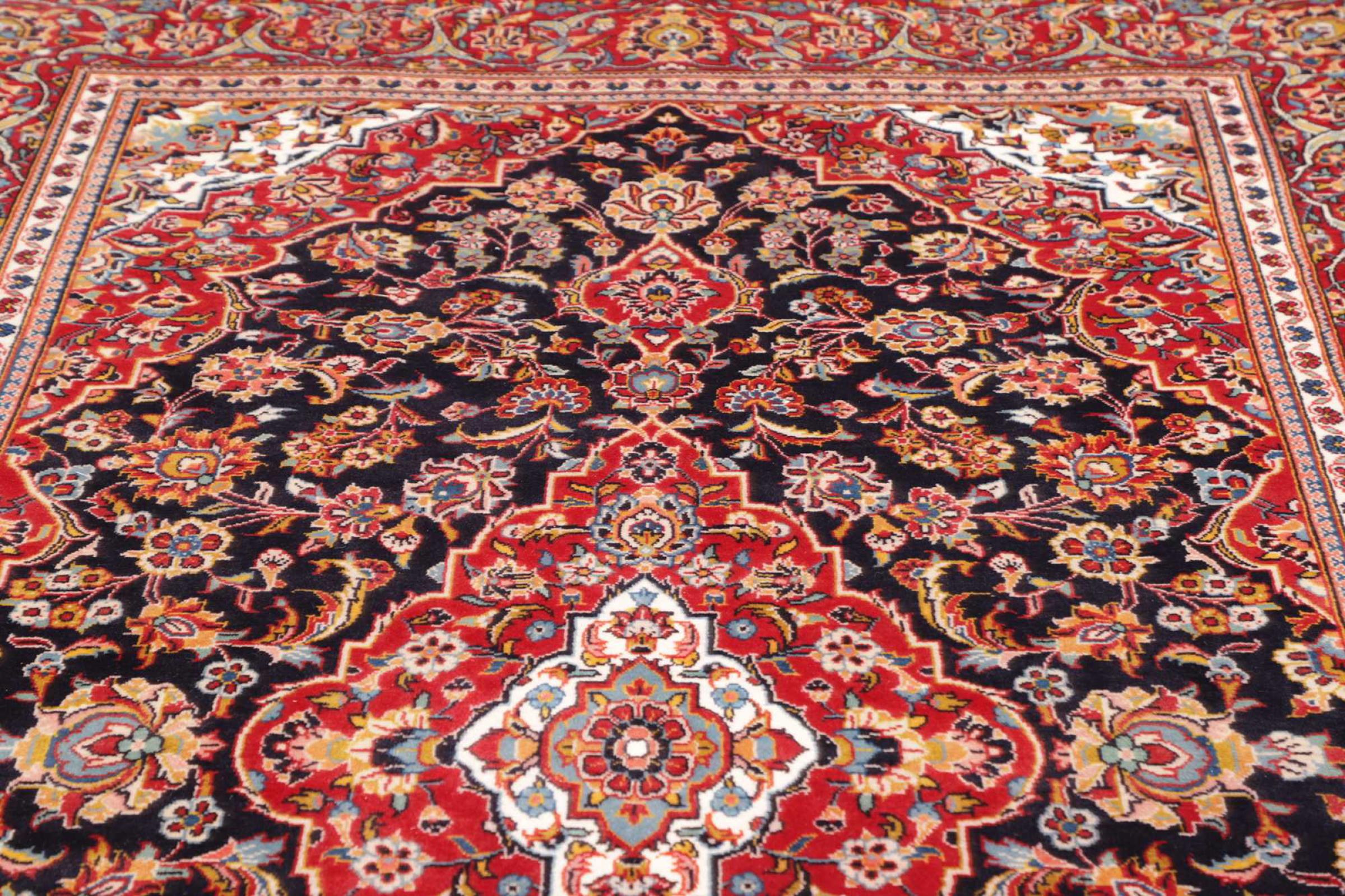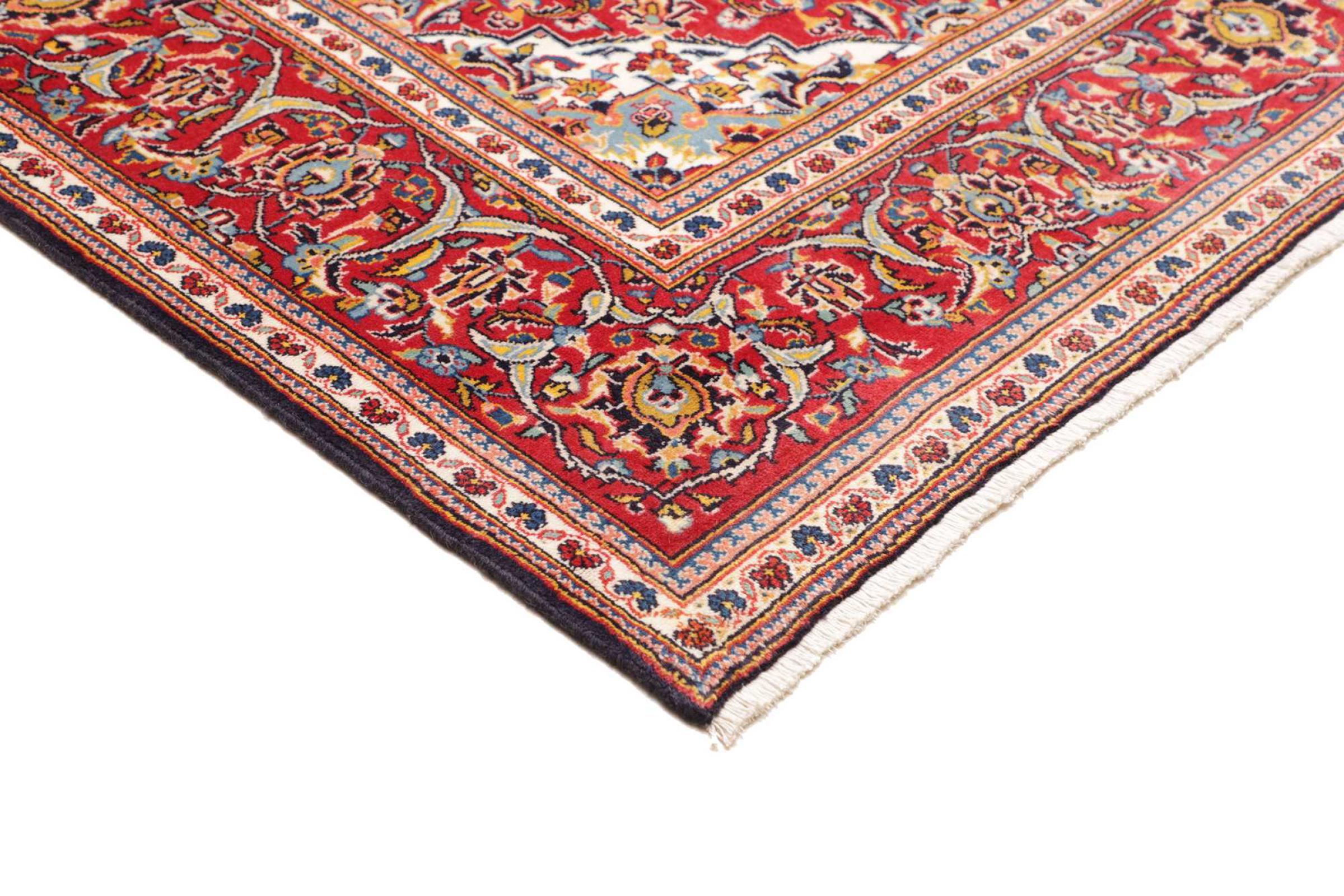 Dette tæppe fra Kashan (Keshan) er holdt i sit meget traditionelle og typiske persiske design med smukke ornamenter. Kashan tæpper er meget populære på grund af deres usædvanligt elegante design. Disse tæpper stammer fra Kashan, en by på den gamle Silkevej. Dette tæppe er blevet knyttet i hånden af højkvalitets fåreuld og vil være et unikt højdepunkt i dit hjem.