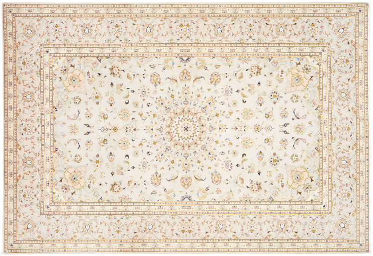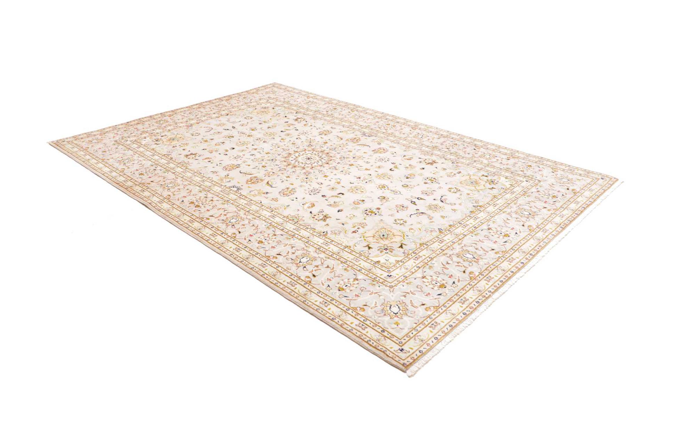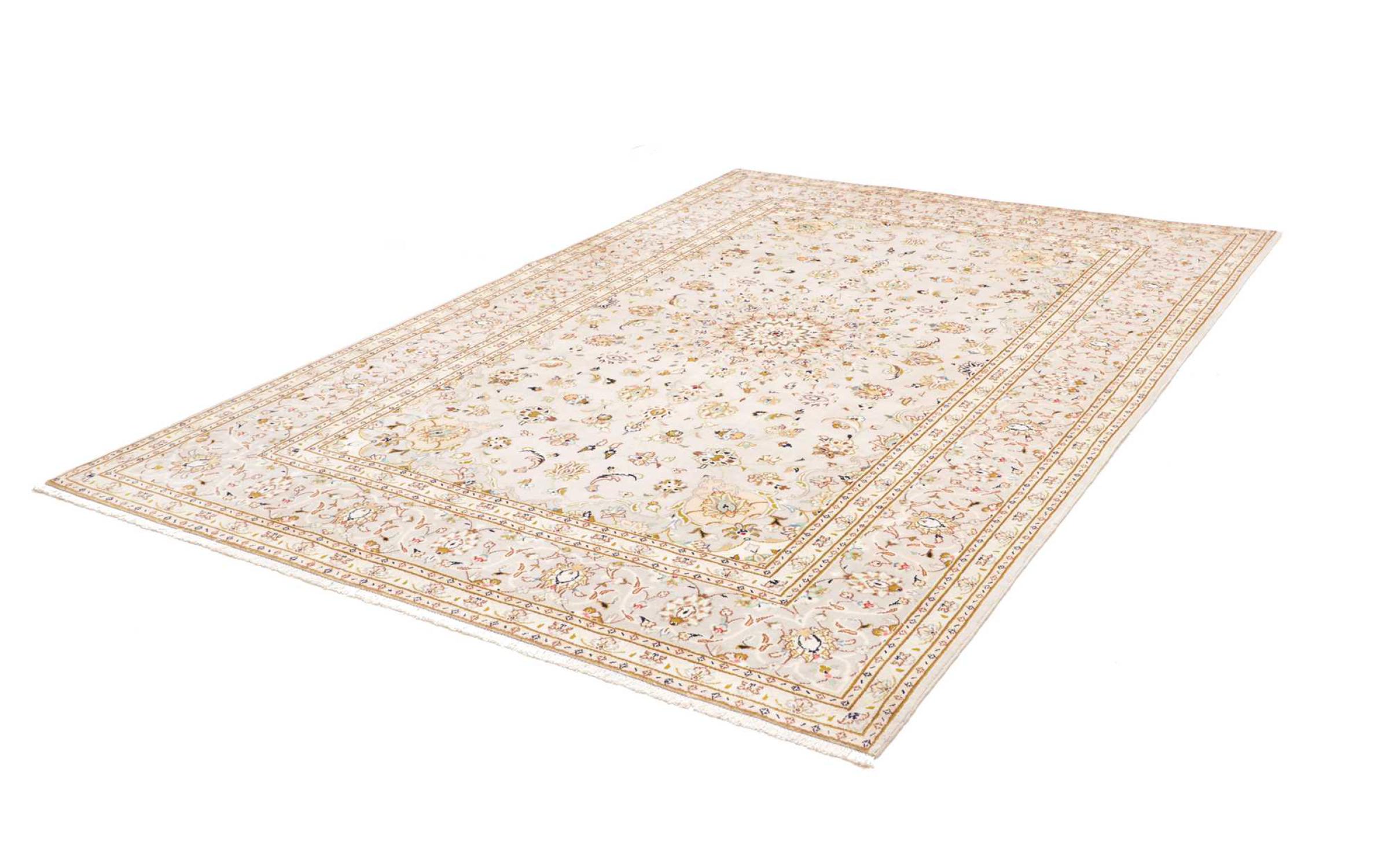 Tæppe-nr.: 31246500595893 Størrelse: 293x201 cm Tykkelse: ca. 12 mm Knuder: 128 000 - 160 000 / m² Forarbejdelse: Knyttet i hånden Luv: Håndspunden uld Kæde: Bomuld Oprindelse: Persien / Iran Alder: Ny Vægt: ca. 21 kg Antal på lager: Unik - Kun 1 tilbage på lager