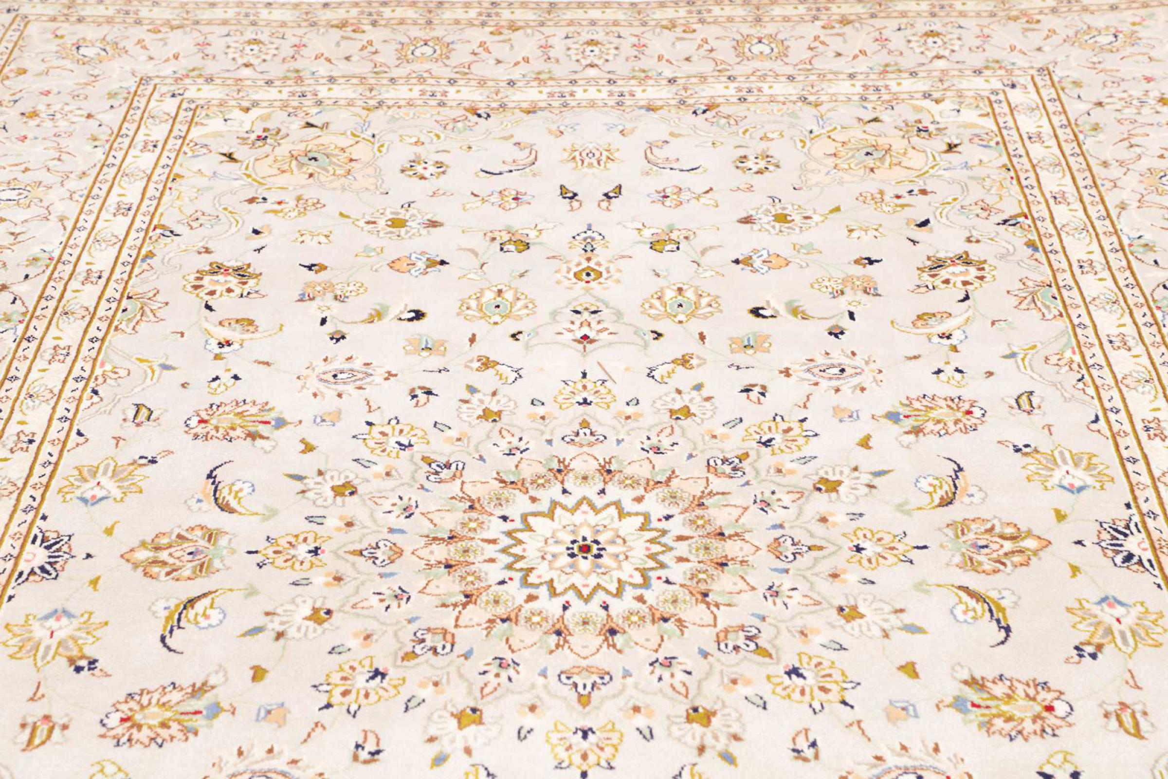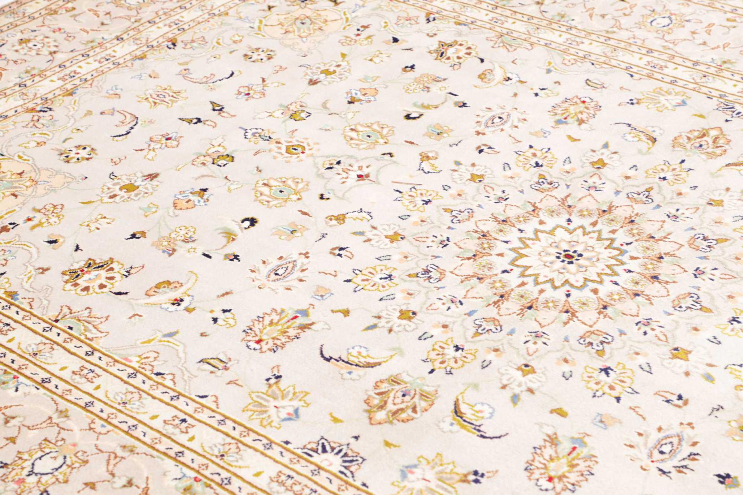 Dette tæppe fra Kashan (Keshan) er holdt i sit meget traditionelle og typiske persiske design med smukke ornamenter. Kashan tæpper er meget populære på grund af deres usædvanligt elegante design. Disse tæpper stammer fra Kashan, en by på den gamle Silkevej. Dette tæppe er blevet knyttet i hånden af højkvalitets fåreuld og vil være et unikt højdepunkt i dit hjem.