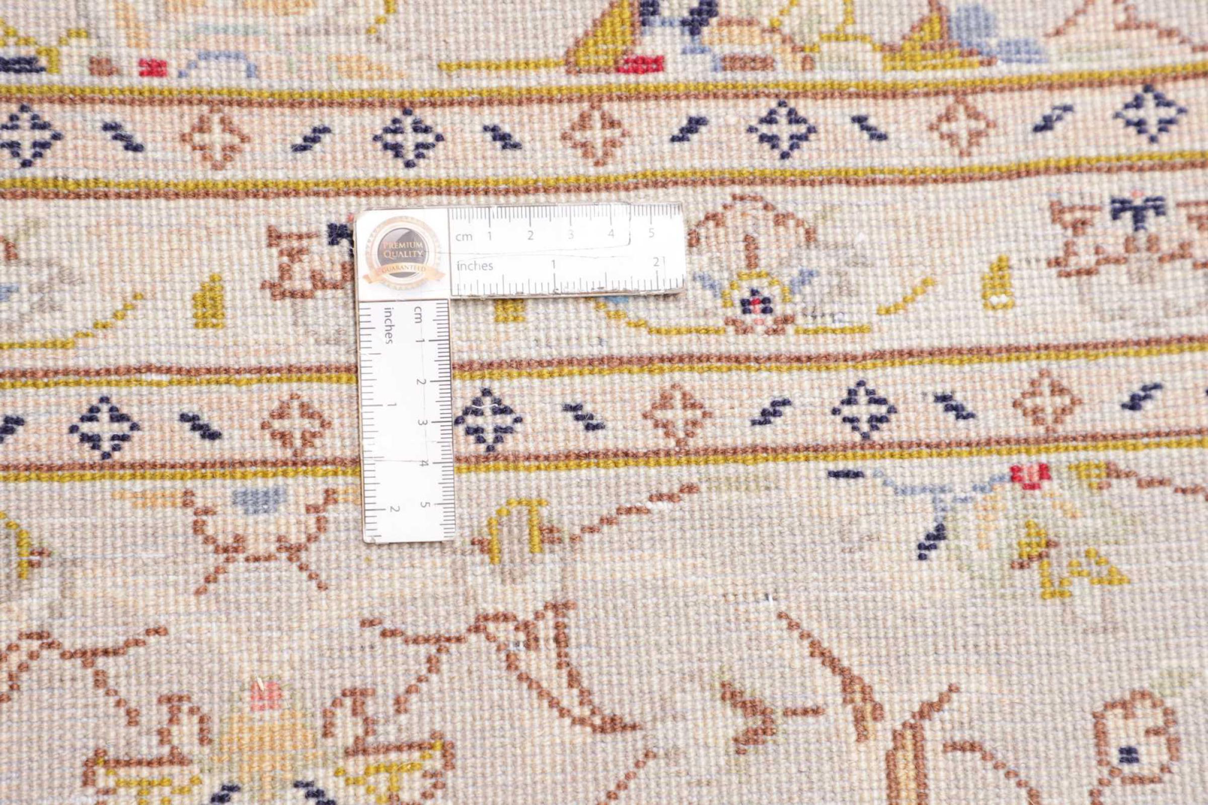 Dette tæppe består af håndspundet fåruld af højeste kvalitet. Især i Iran (tidligere Persien), Afghanistan og Pakistan spindes uld med hånden, før tæppet faktisk knuses. Uld har bevist sig som et naturligt og ekstremt slidstærkt materiale gennem århundreder. Det har blandt andet snavsafvisende og varmeisolerende egenskaber. Samtidig er uld uforlignelig blød og bringer en naturlig glans.