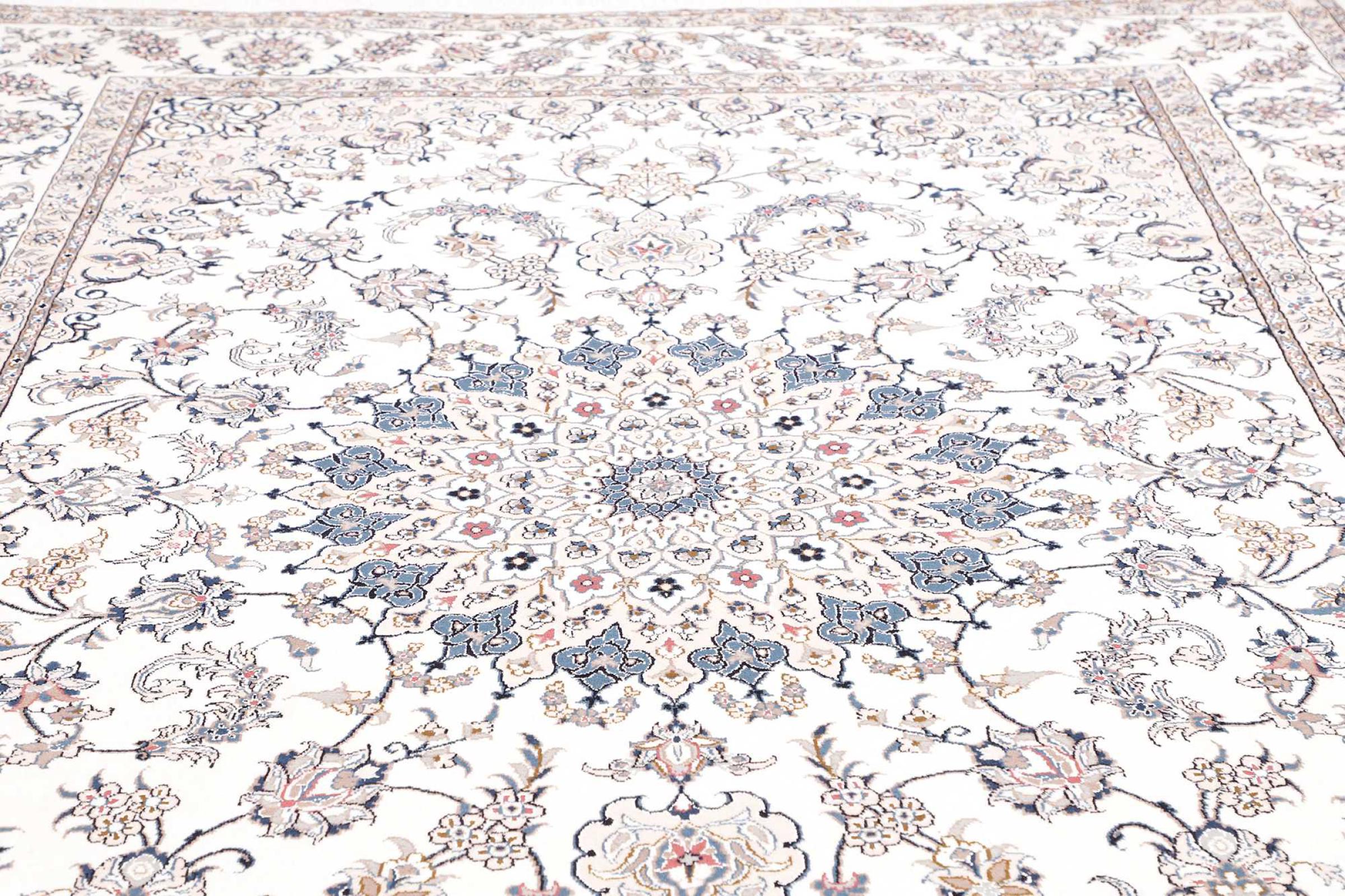 Tæppe-nr.: 31245300413864 Størrelse: 299x198 cm Tykkelse: ca. 12 mm Knuder: 128 000 - 160 000 / m² Forarbejdelse: Knyttet i hånden Luv: Håndspunden uld Kæde: Bomuld Oprindelse: Persien / Iran Alder: Ny Vægt: ca. 21 kg Antal på lager: Unik - Kun 1 tilbage på lager