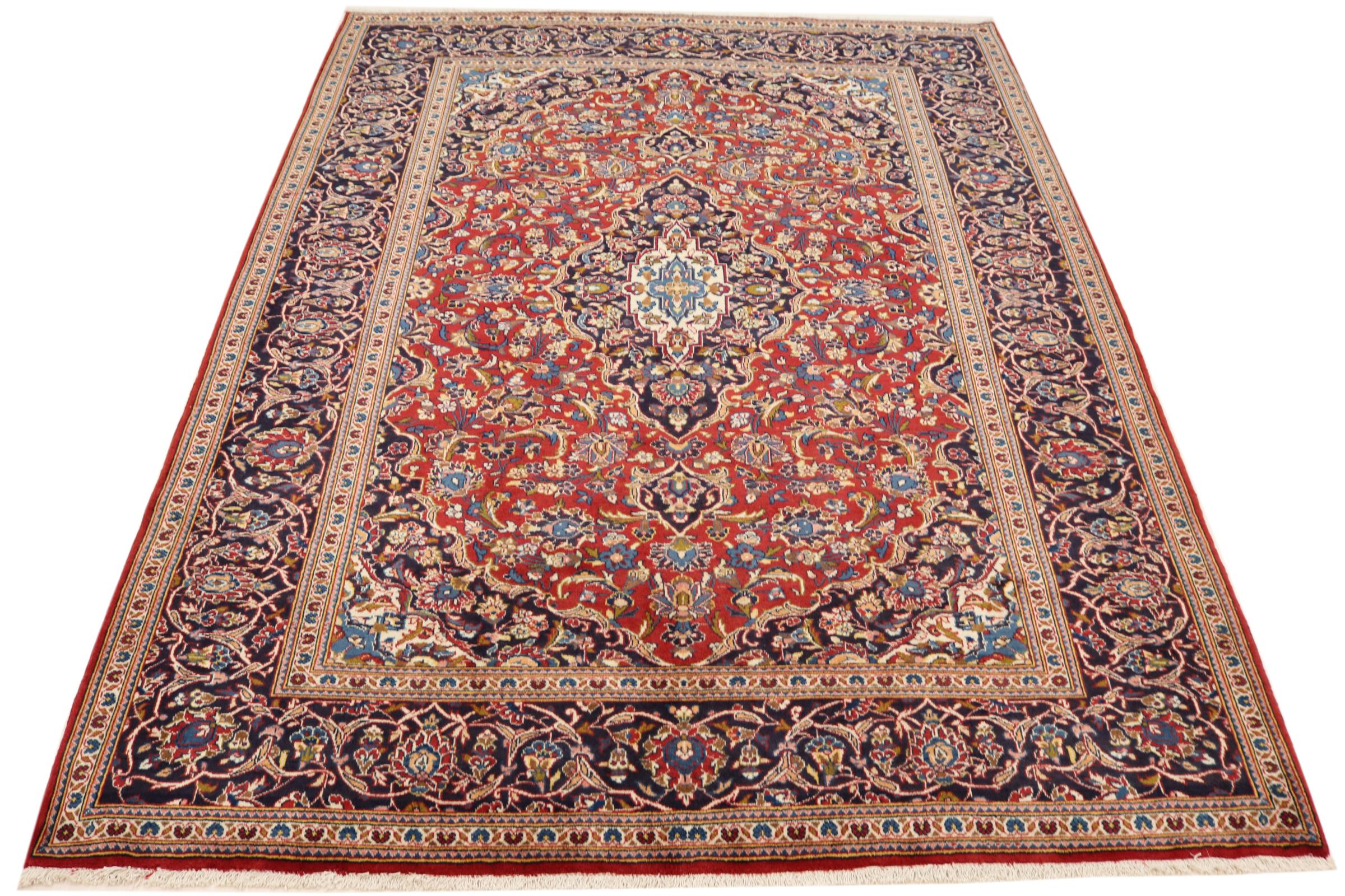 Dette tæppe fra Kashan (Keshan) er holdt i sit meget traditionelle og typiske persiske design med smukke ornamenter. Kashan tæpper er meget populære på grund af deres usædvanligt elegante design. Disse tæpper stammer fra Kashan, en by på den gamle Silkevej. Dette tæppe er blevet knyttet i hånden af højkvalitets fåreuld og vil være et unikt højdepunkt i dit hjem.