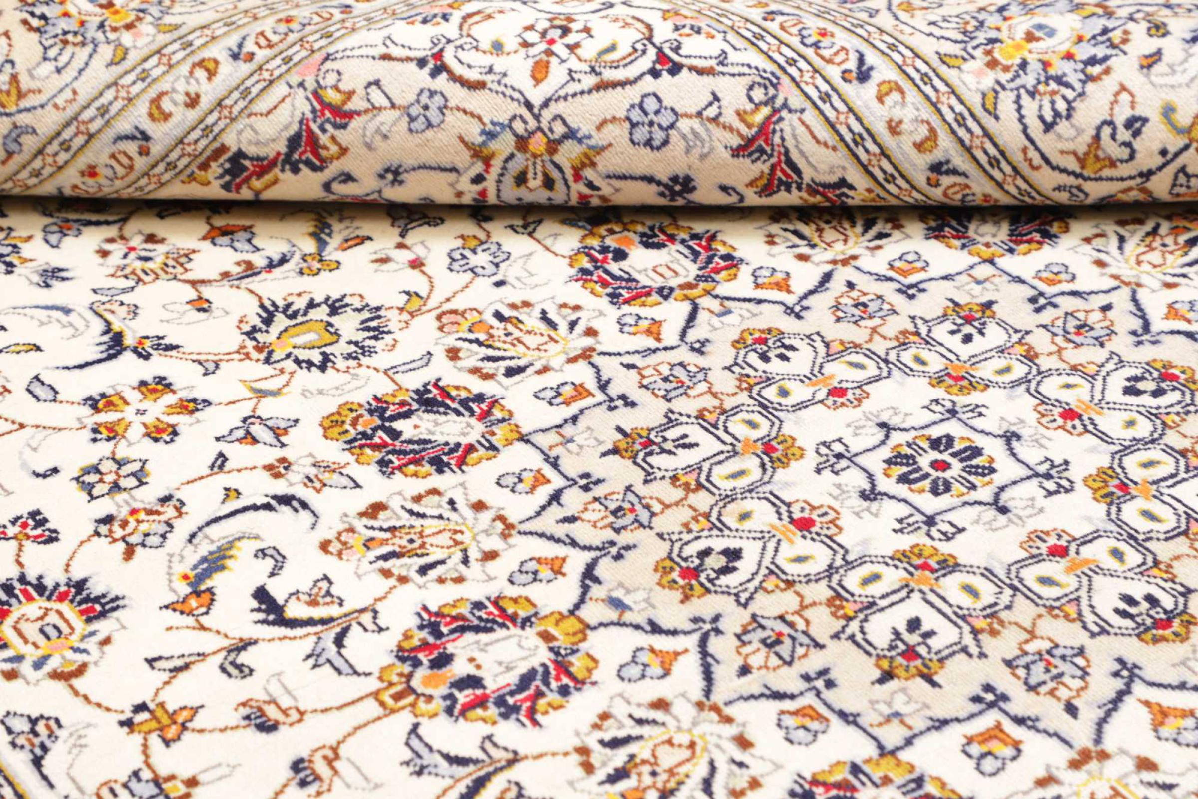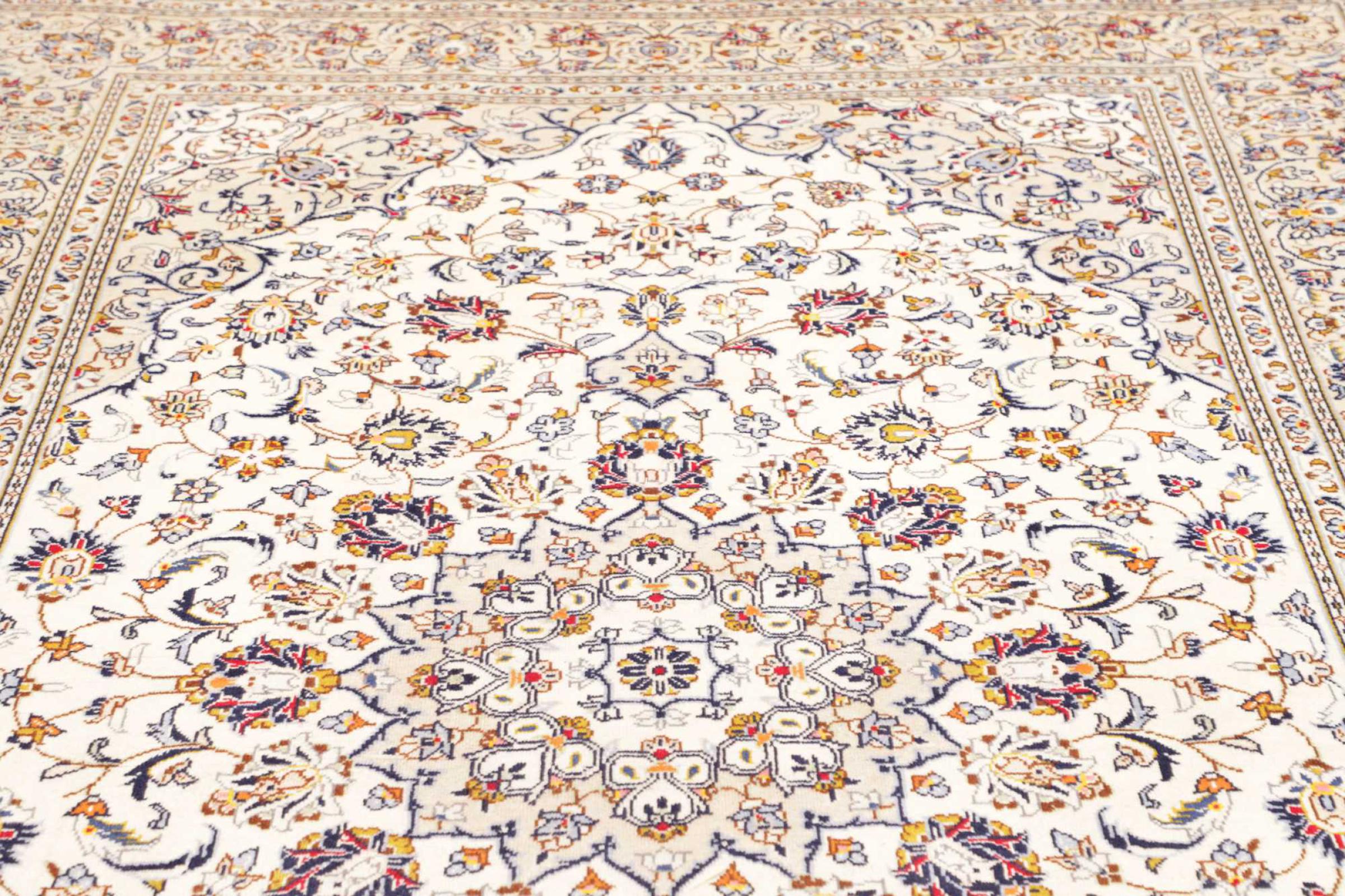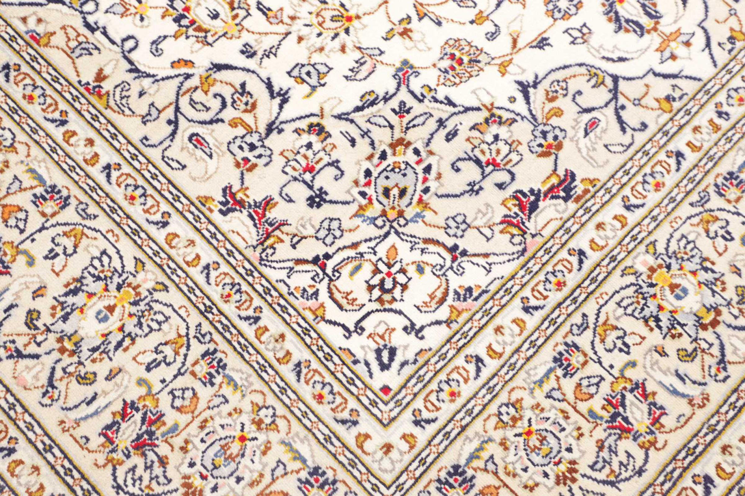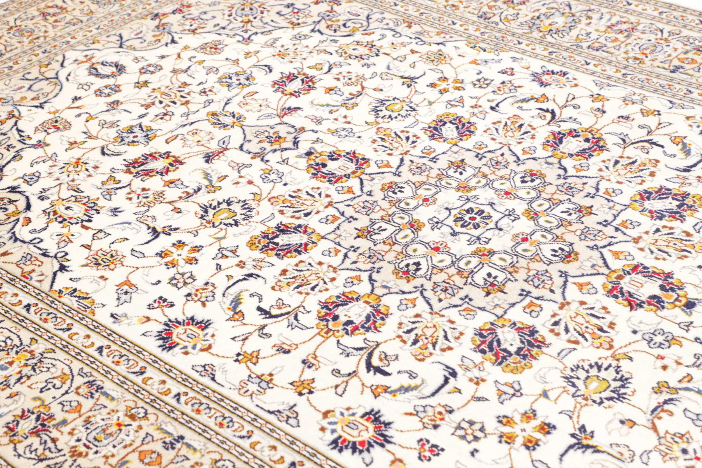Dette tæppe fra Kashan (Keshan) er holdt i sit meget traditionelle og typiske persiske design med smukke ornamenter. Kashan tæpper er meget populære på grund af deres usædvanligt elegante design. Disse tæpper stammer fra Kashan, en by på den gamle Silkevej. Dette tæppe er blevet knyttet i hånden af højkvalitets fåreuld og vil være et unikt højdepunkt i dit hjem.