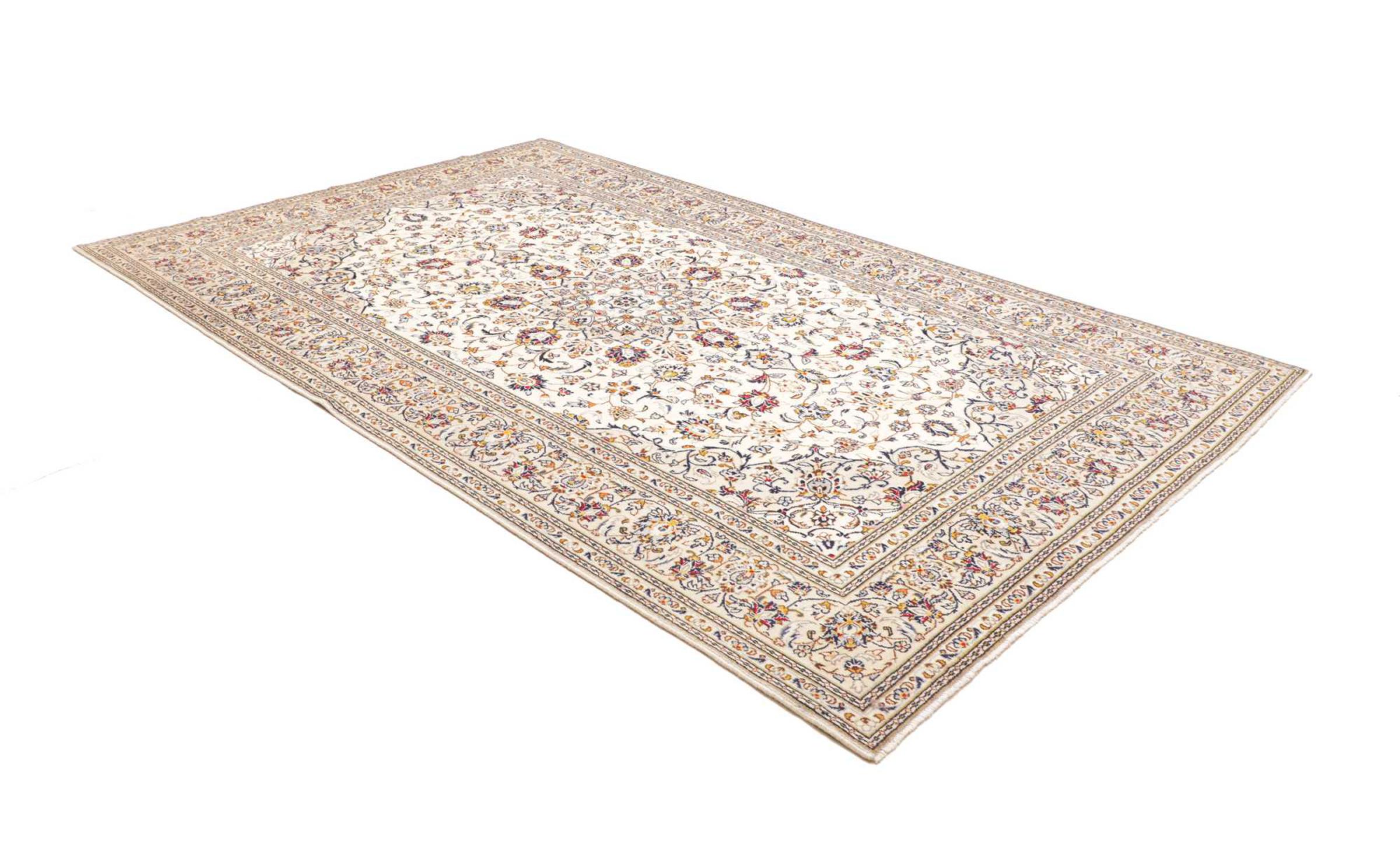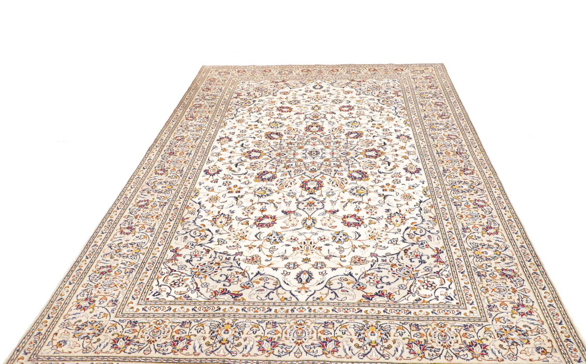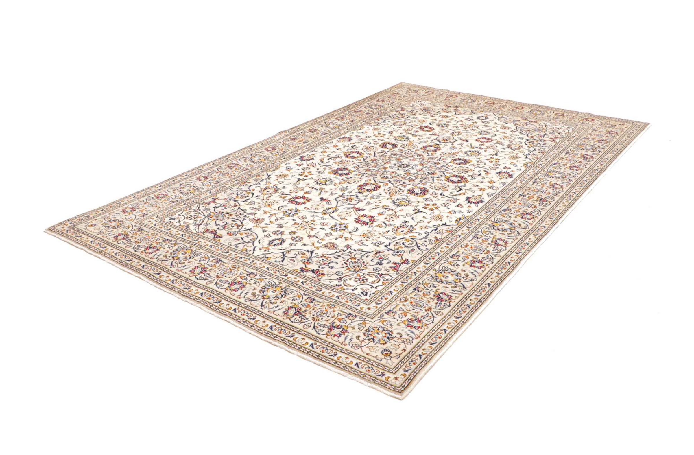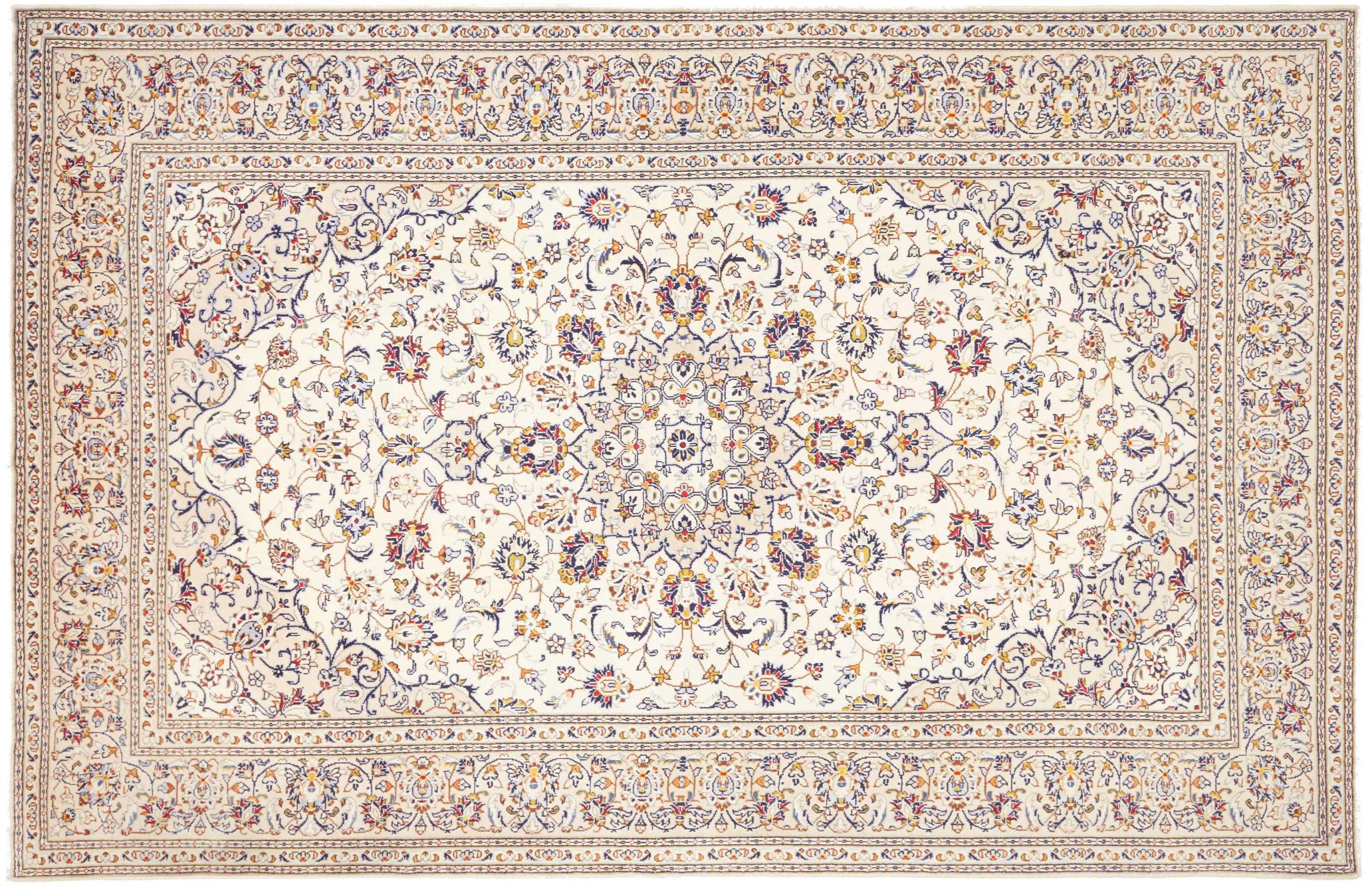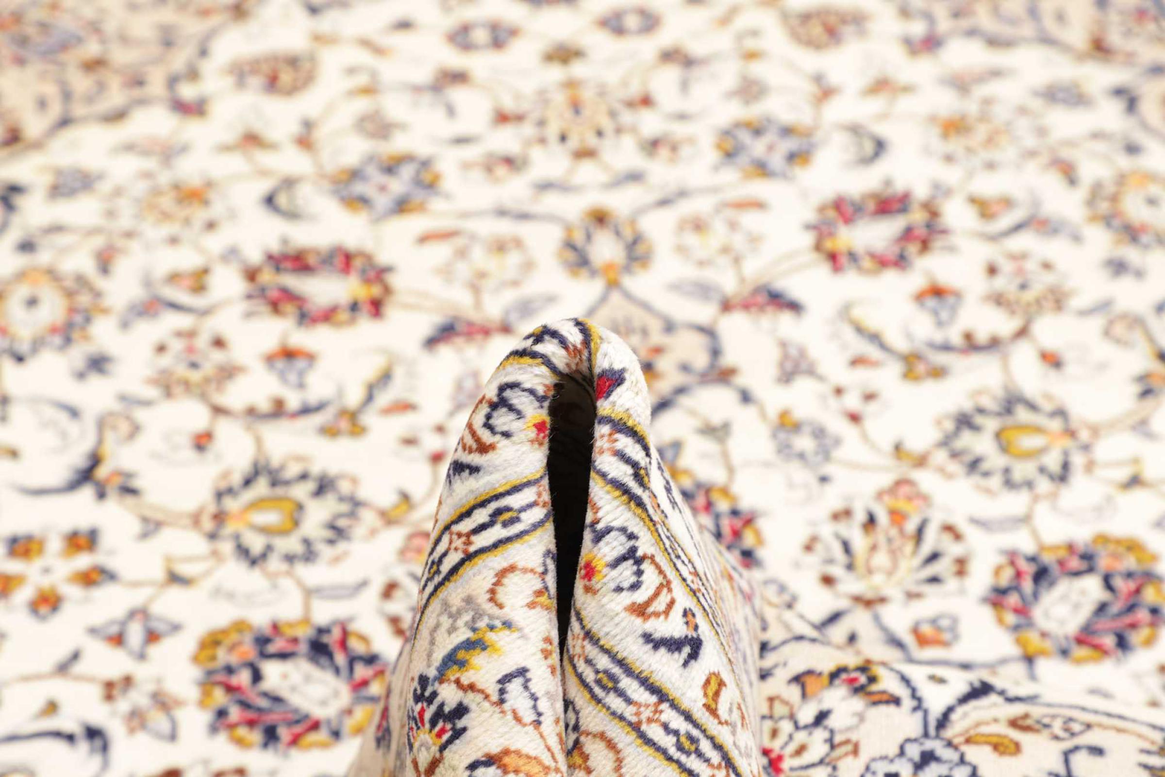 Dette tæppe fra Kashan (Keshan) er holdt i sit meget traditionelle og typiske persiske design med smukke ornamenter. Kashan tæpper er meget populære på grund af deres usædvanligt elegante design. Disse tæpper stammer fra Kashan, en by på den gamle Silkevej. Dette tæppe er blevet knyttet i hånden af højkvalitets fåreuld og vil være et unikt højdepunkt i dit hjem.