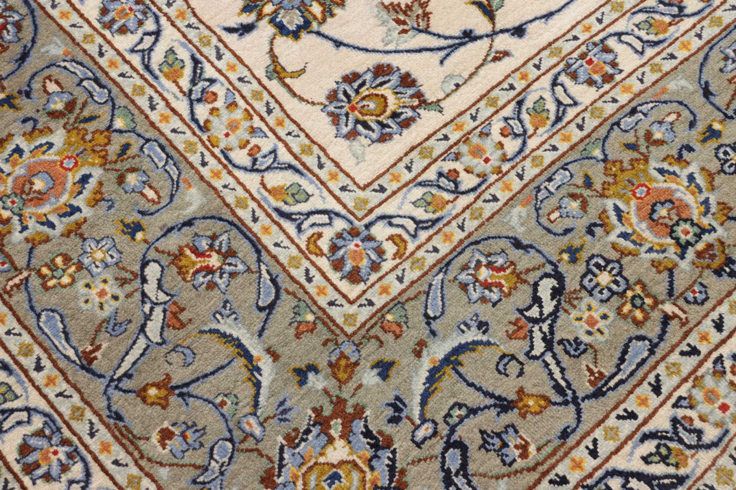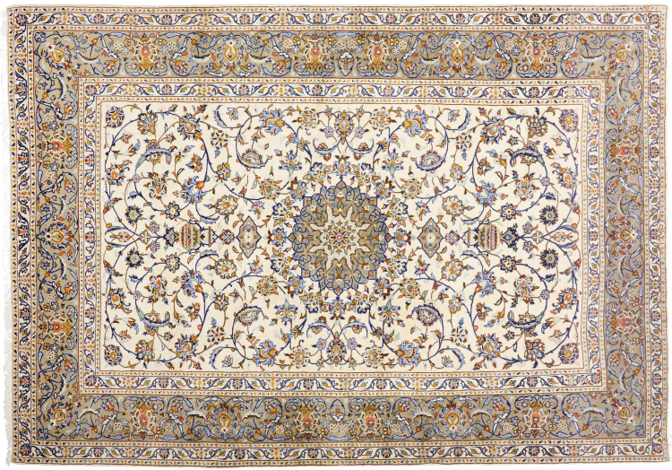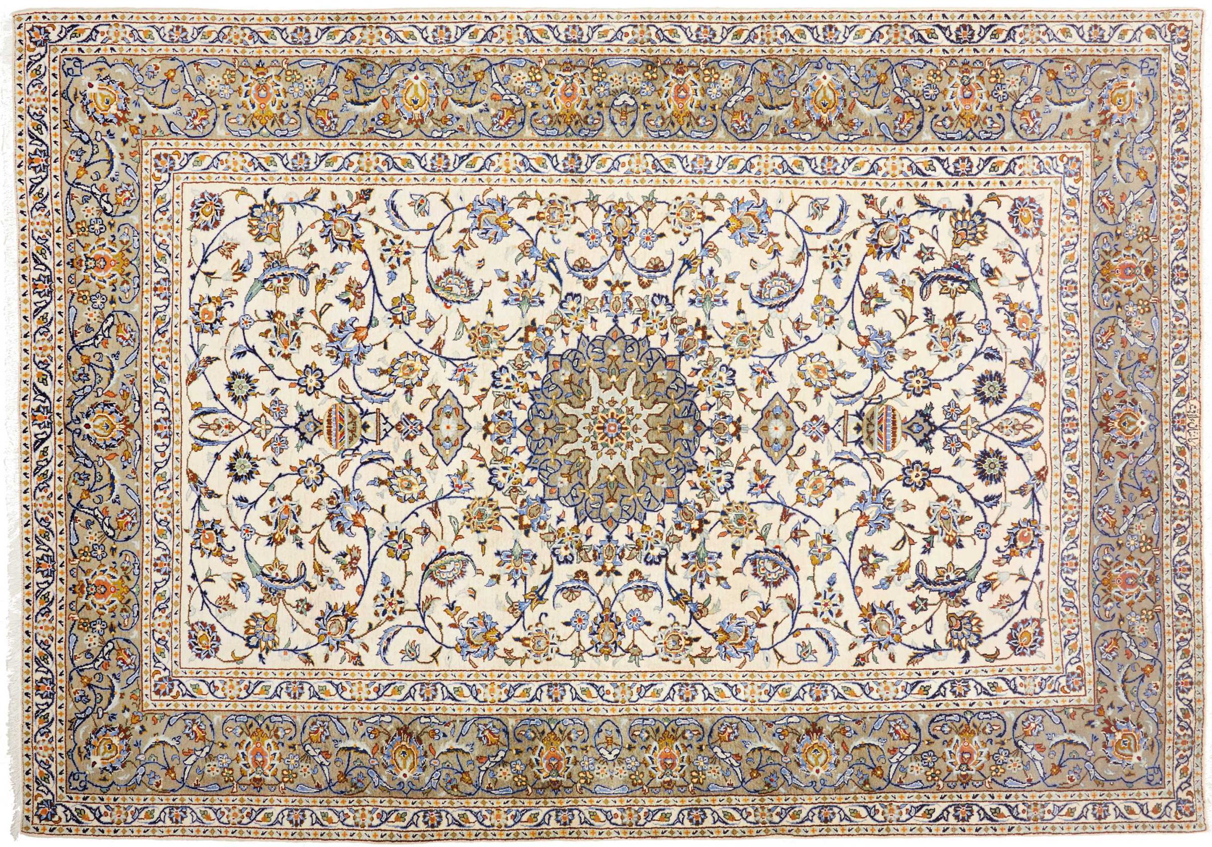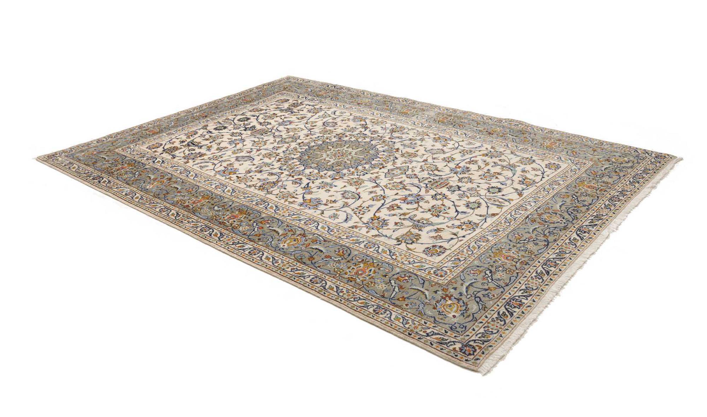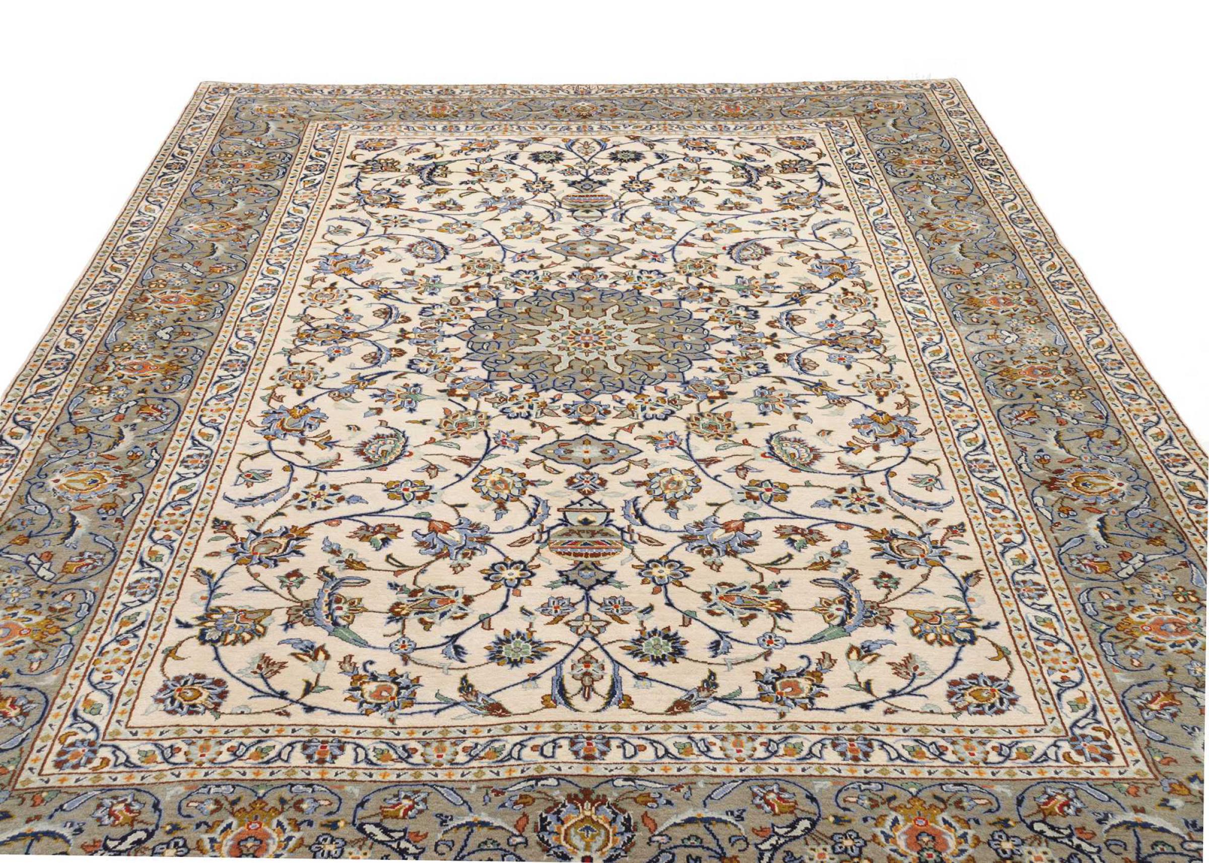 Dette tæppe fra Kashan (Keshan) er holdt i sit meget traditionelle og typiske persiske design med smukke ornamenter. Kashan tæpper er meget populære på grund af deres usædvanligt elegante design. Disse tæpper stammer fra Kashan, en by på den gamle Silkevej. Dette tæppe er blevet knyttet i hånden af højkvalitets fåreuld og vil være et unikt højdepunkt i dit hjem.