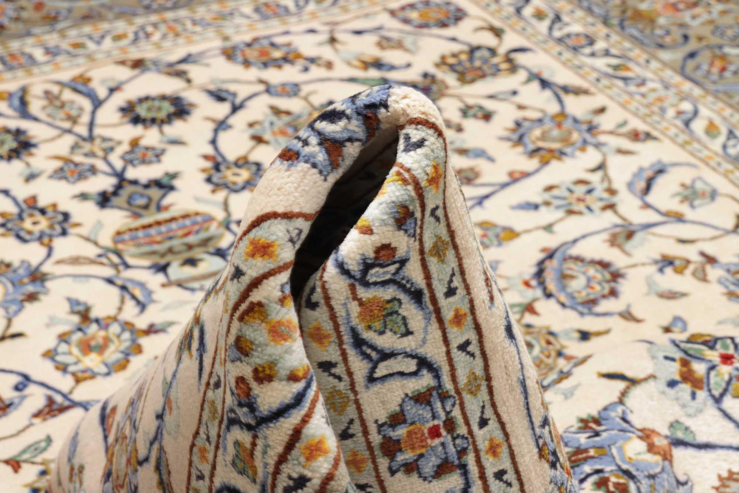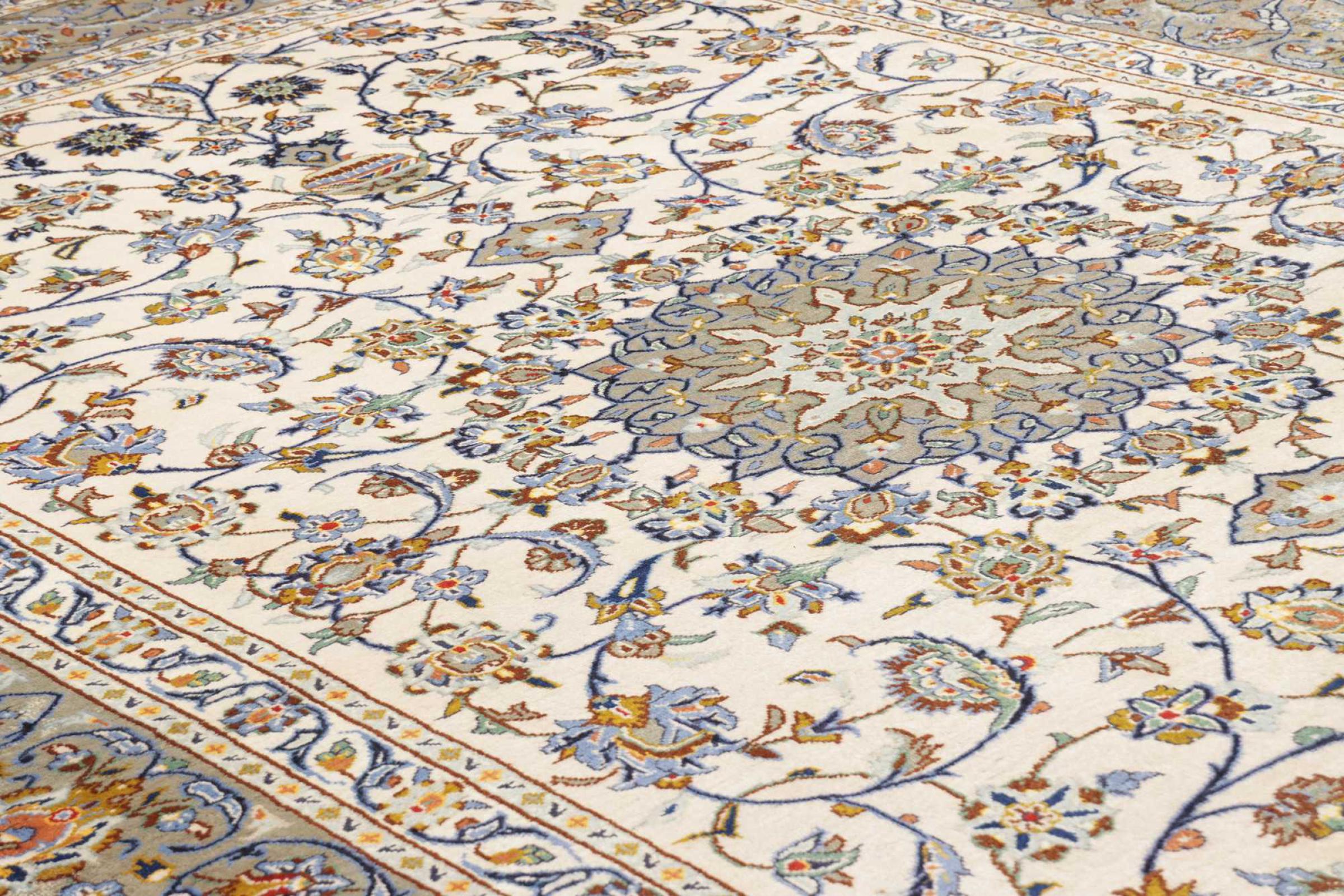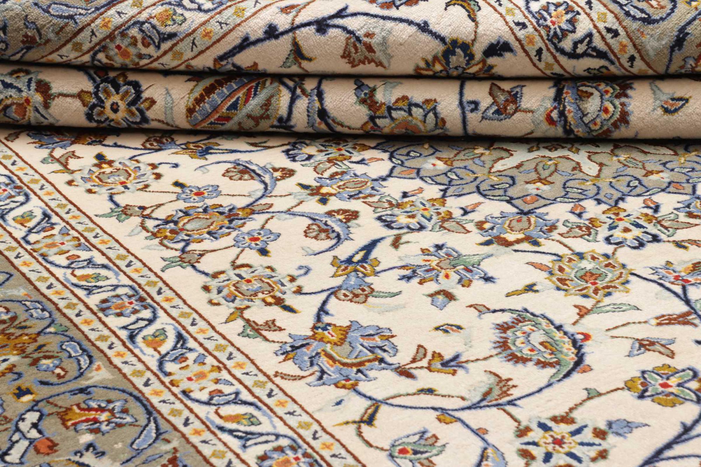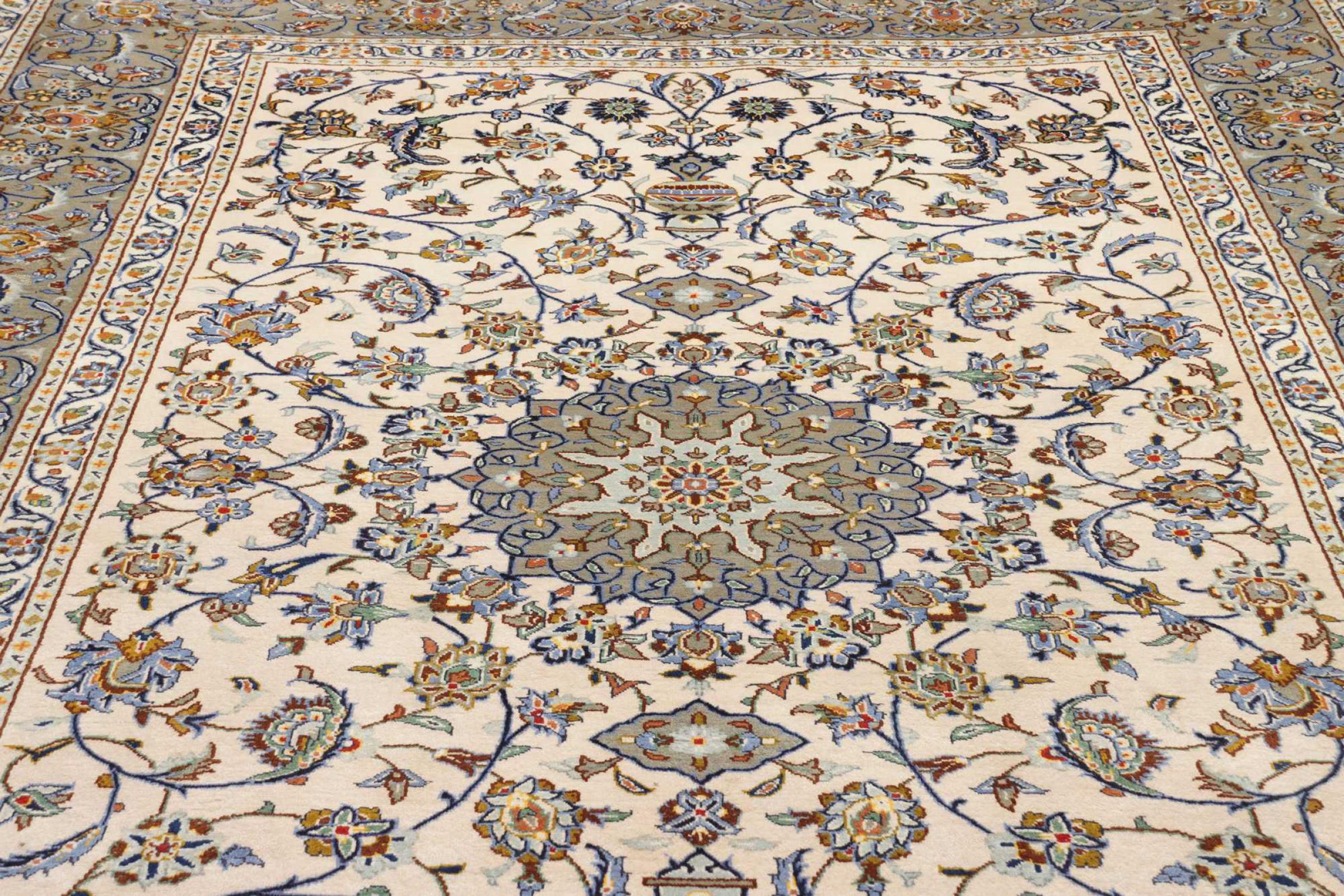 Dette tæppe fra Kashan (Keshan) er holdt i sit meget traditionelle og typiske persiske design med smukke ornamenter. Kashan tæpper er meget populære på grund af deres usædvanligt elegante design. Disse tæpper stammer fra Kashan, en by på den gamle Silkevej. Dette tæppe er blevet knyttet i hånden af højkvalitets fåreuld og vil være et unikt højdepunkt i dit hjem.