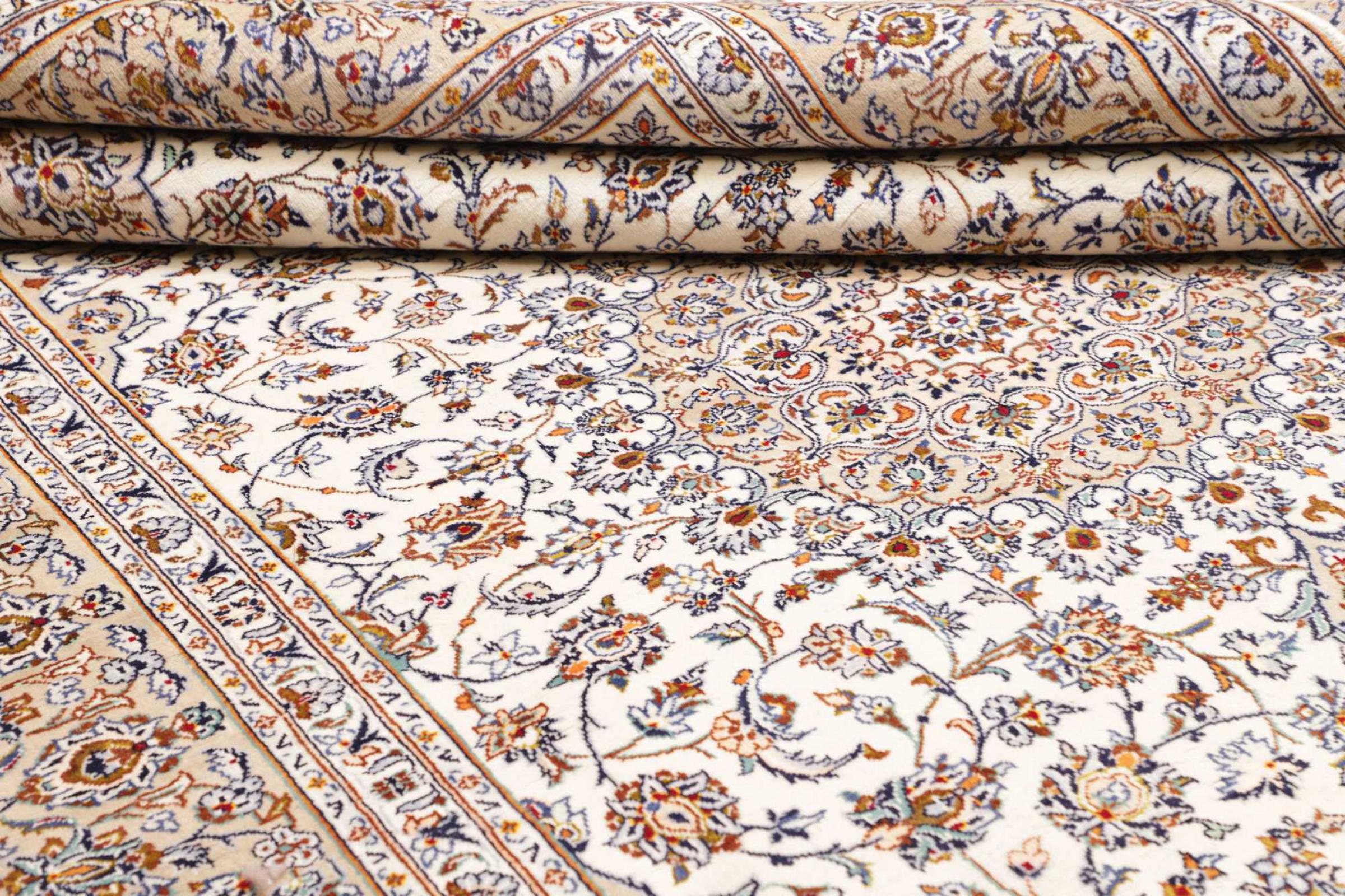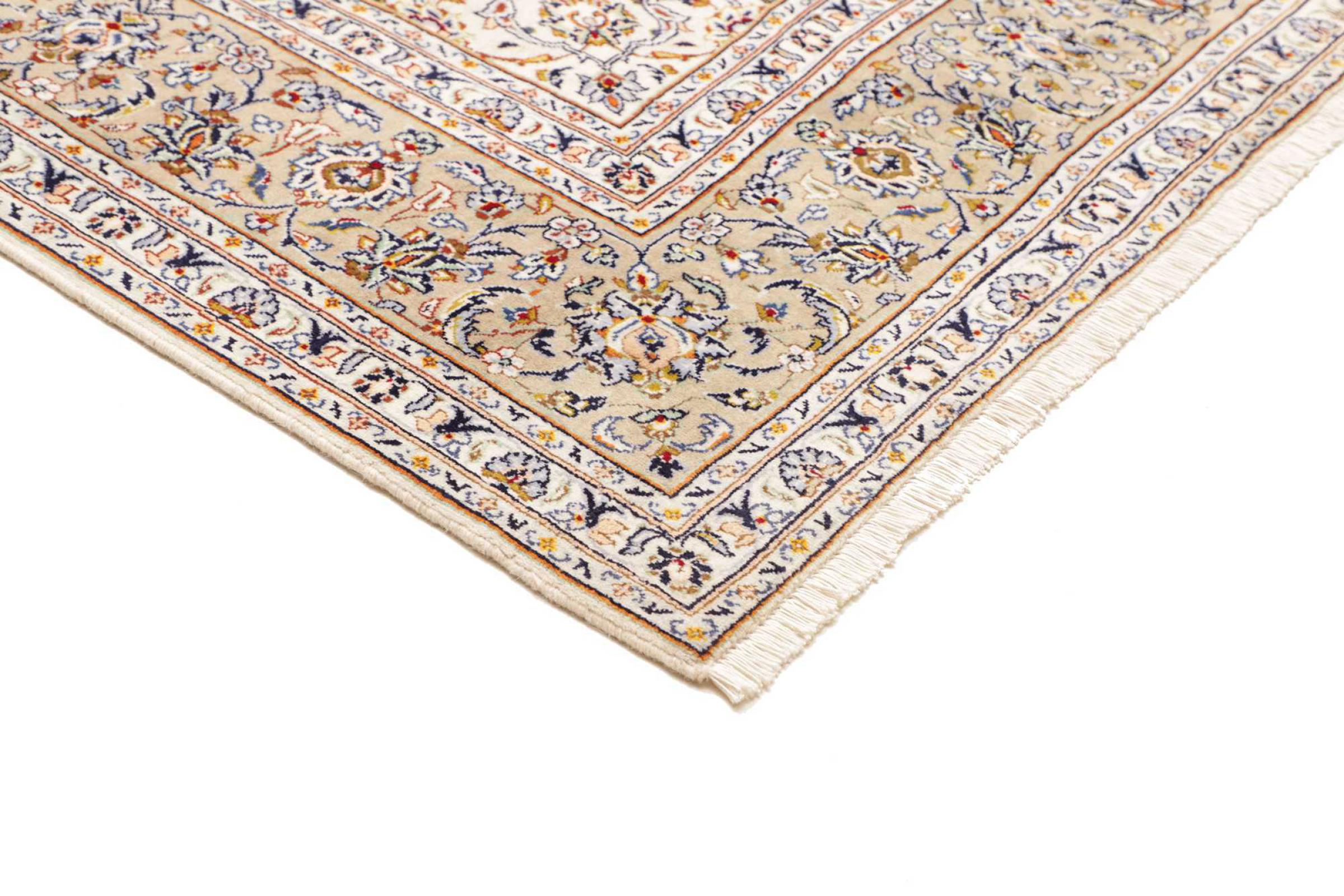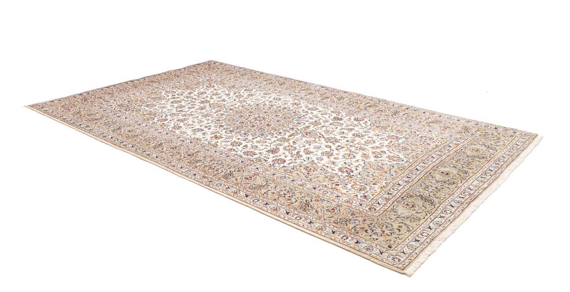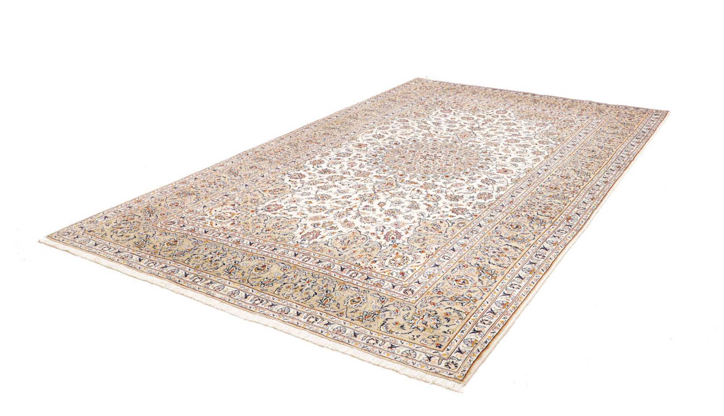 Dette tæppe fra Kashan (Keshan) er holdt i sit meget traditionelle og typiske persiske design med smukke ornamenter. Kashan tæpper er meget populære på grund af deres usædvanligt elegante design. Disse tæpper stammer fra Kashan, en by på den gamle Silkevej. Dette tæppe er blevet knyttet i hånden af højkvalitets fåreuld og vil være et unikt højdepunkt i dit hjem.
