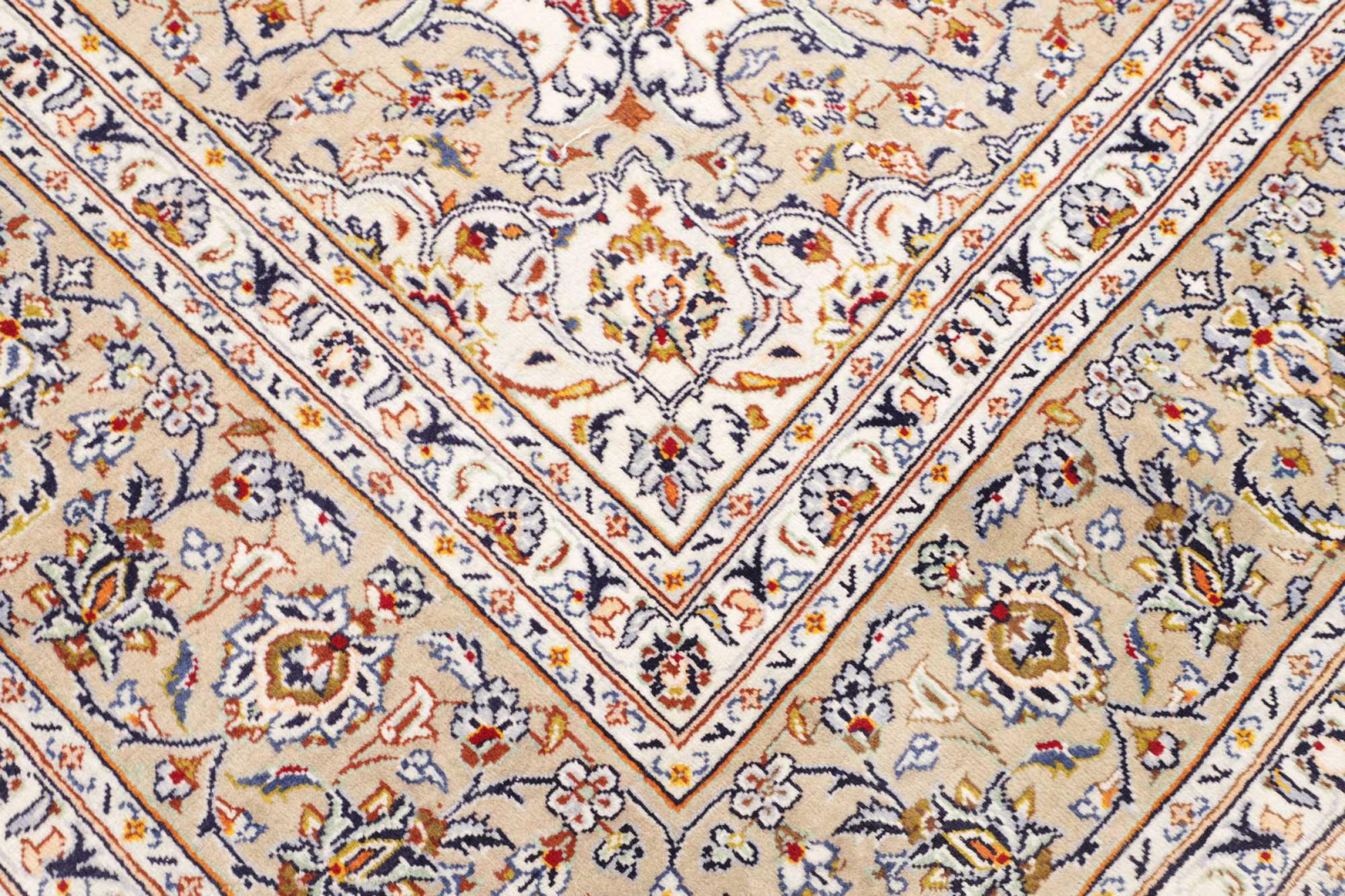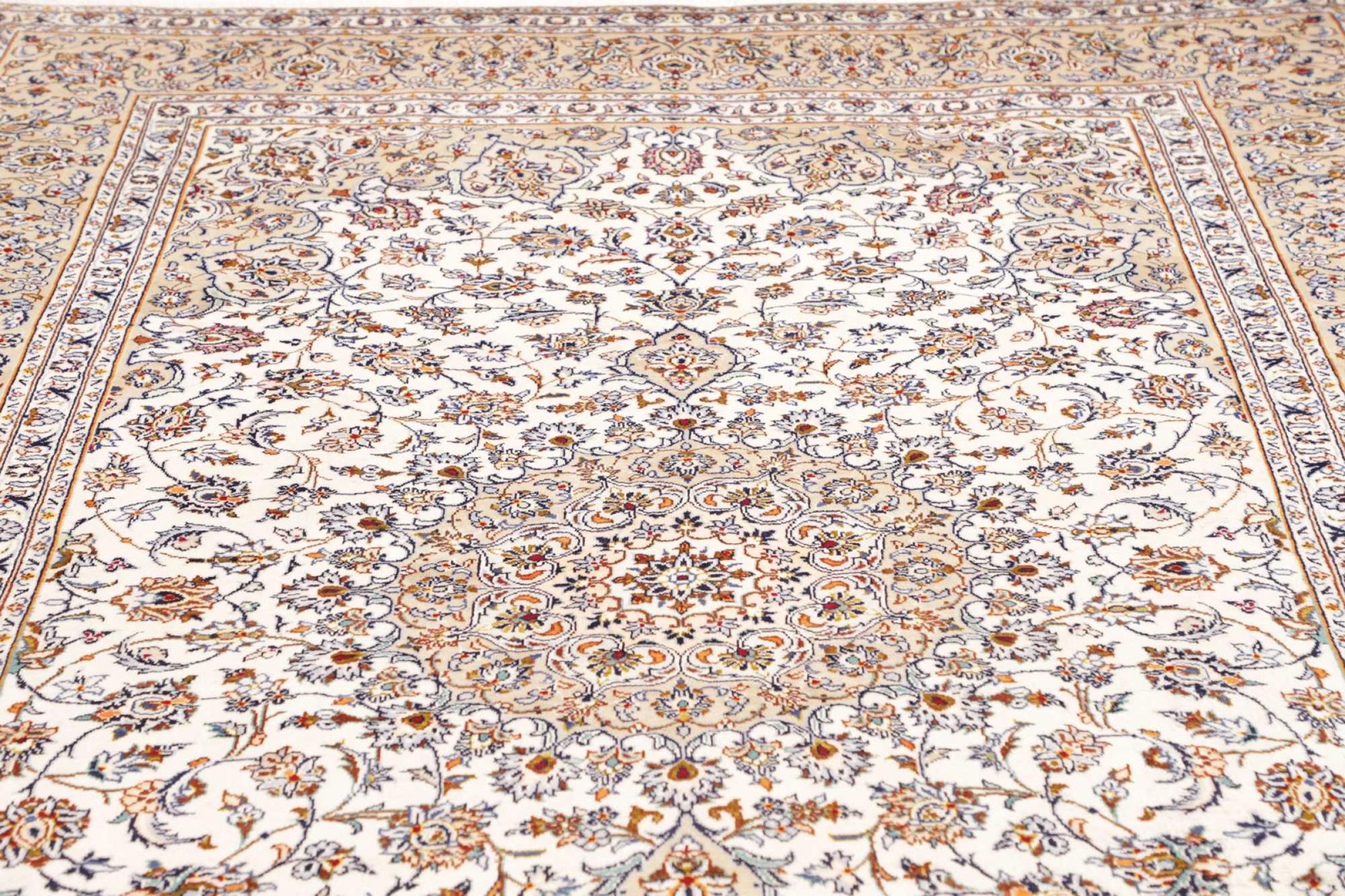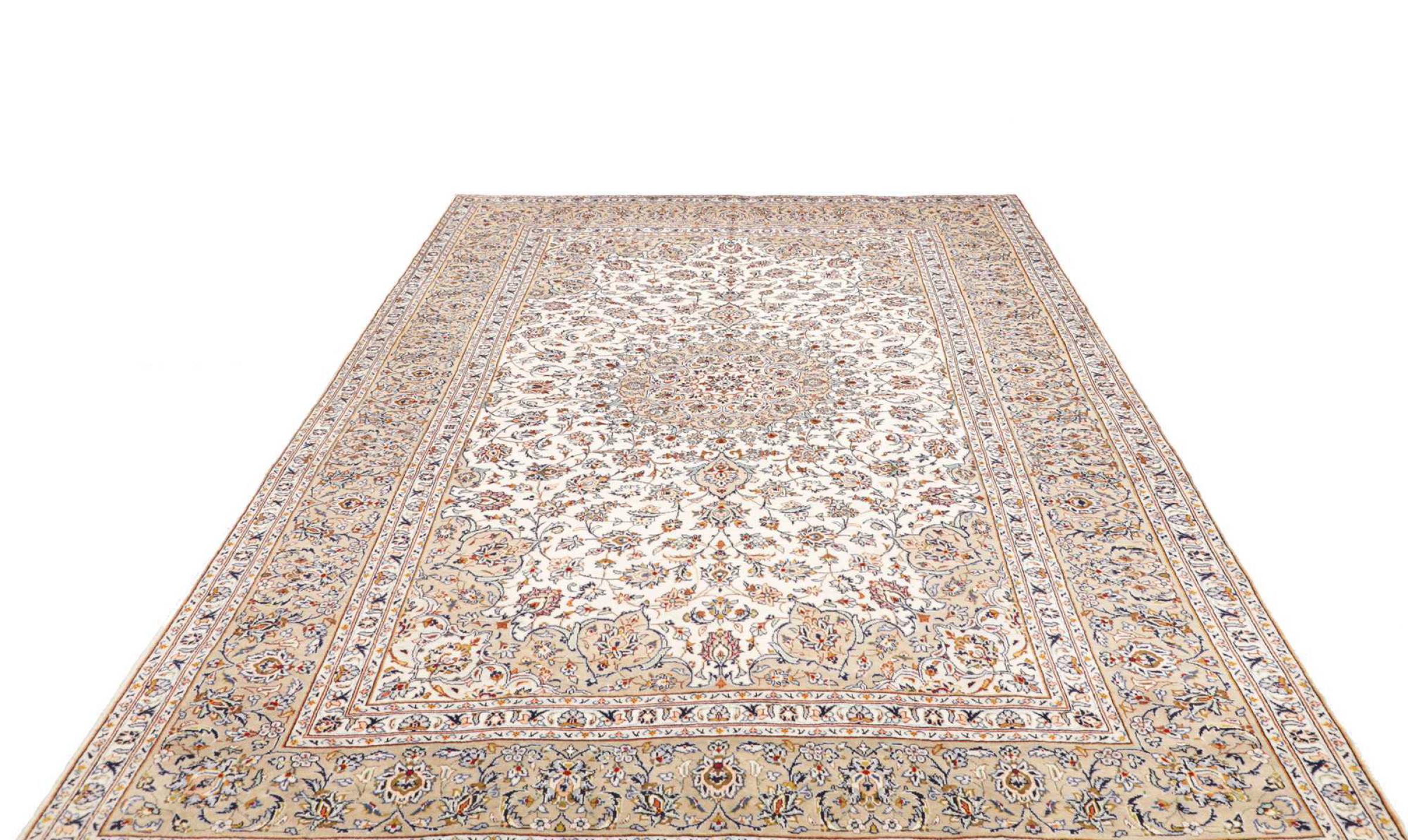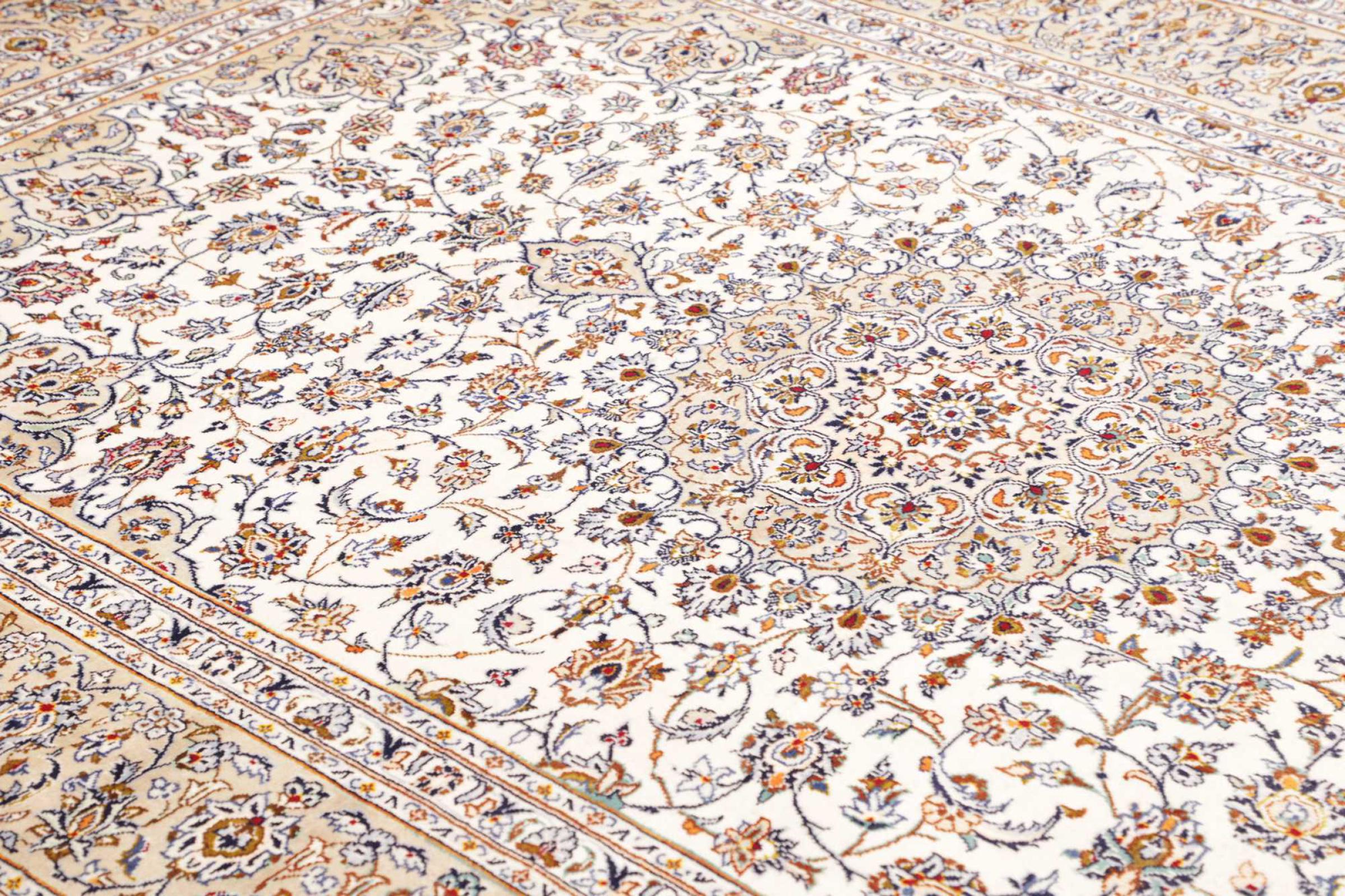 Dette tæppe fra Kashan (Keshan) er holdt i sit meget traditionelle og typiske persiske design med smukke ornamenter. Kashan tæpper er meget populære på grund af deres usædvanligt elegante design. Disse tæpper stammer fra Kashan, en by på den gamle Silkevej. Dette tæppe er blevet knyttet i hånden af højkvalitets fåreuld og vil være et unikt højdepunkt i dit hjem.