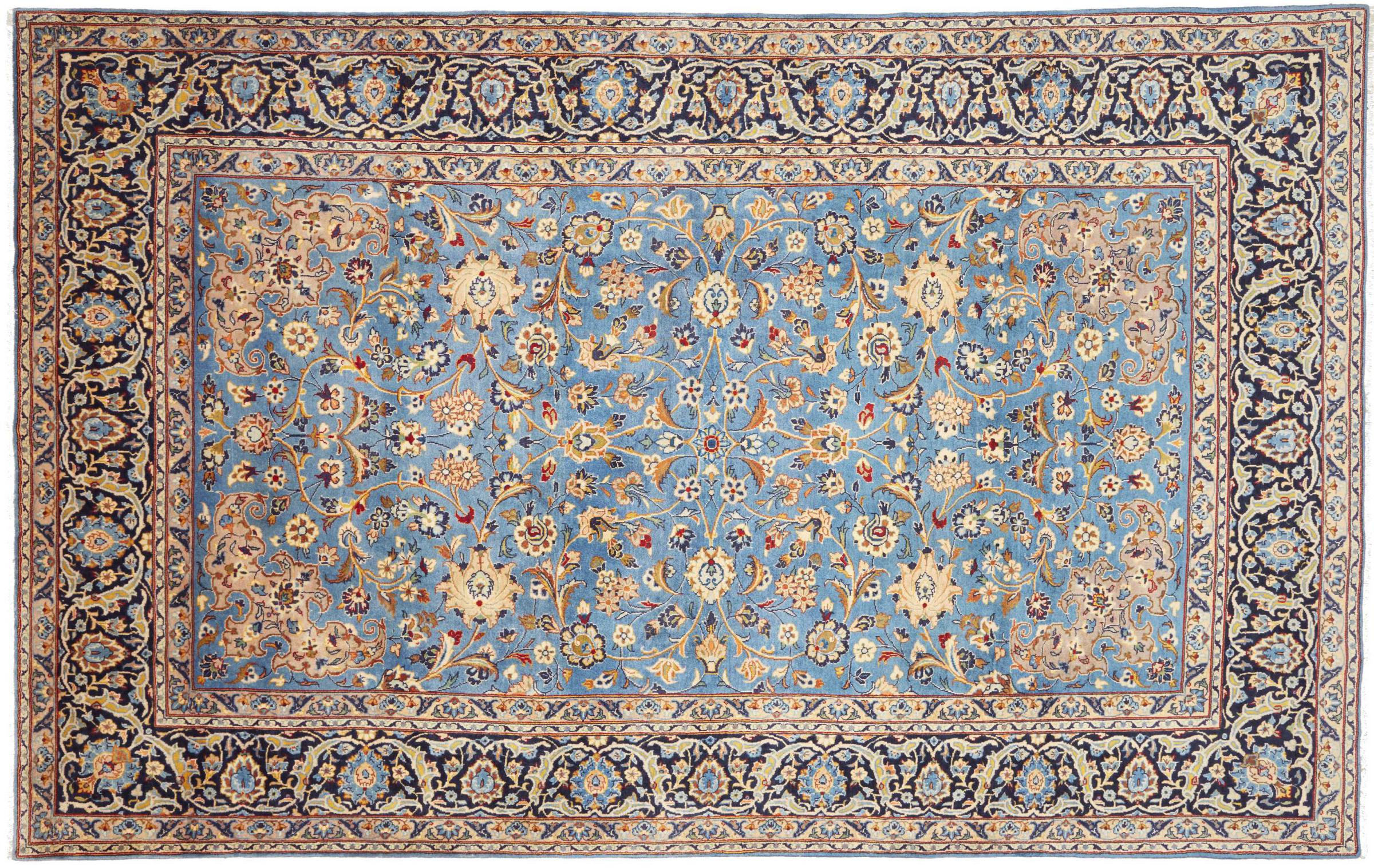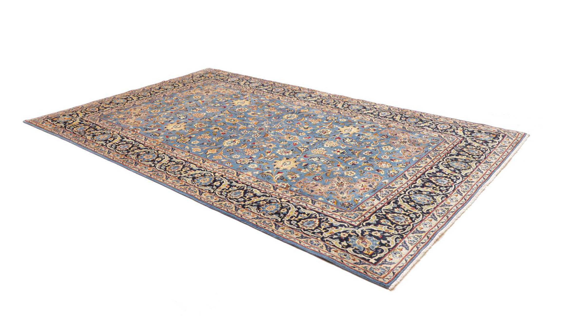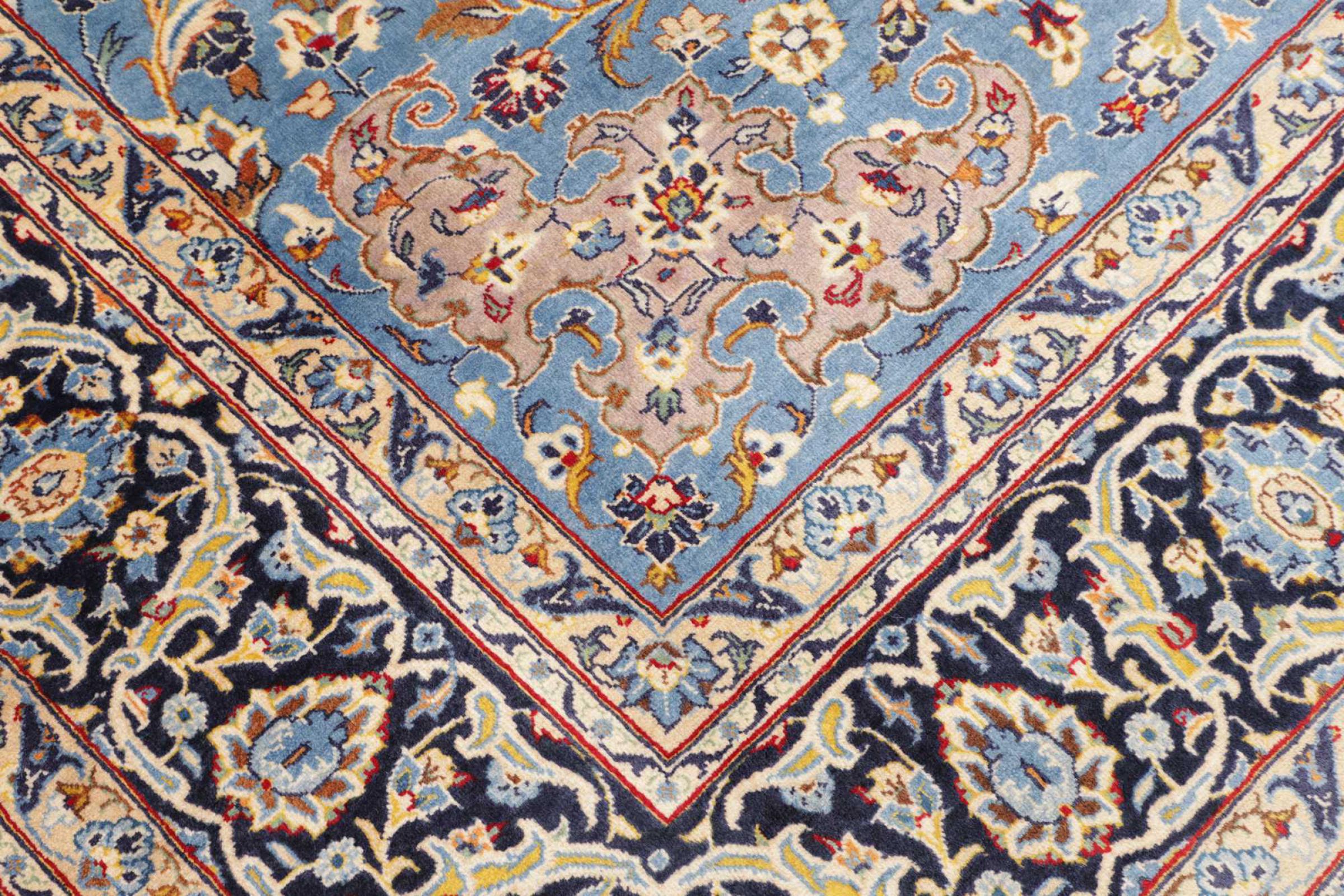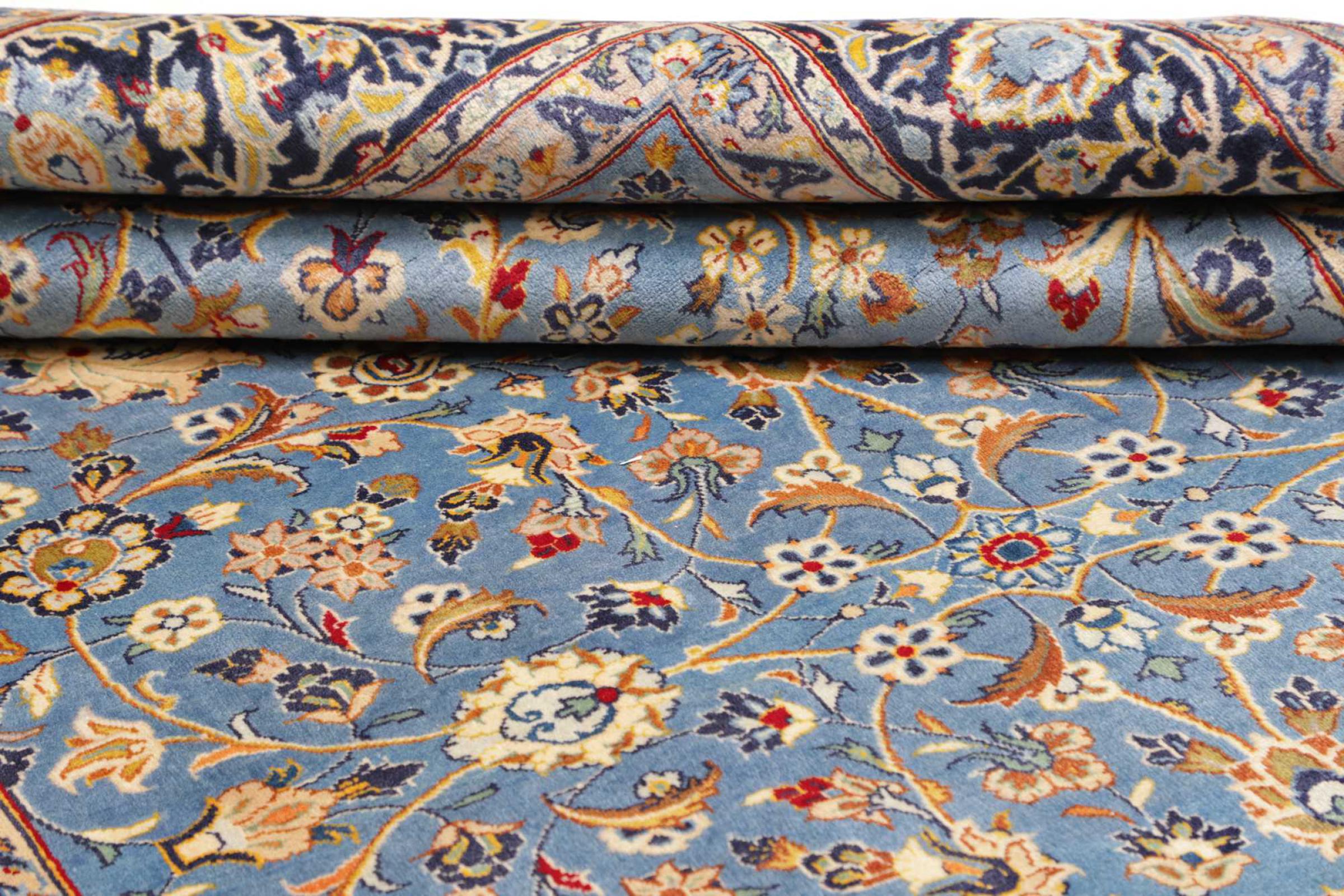 Dette tæppe fra Kashan (Keshan) er holdt i sit meget traditionelle og typiske persiske design med smukke ornamenter. Kashan tæpper er meget populære på grund af deres usædvanligt elegante design. Disse tæpper stammer fra Kashan, en by på den gamle Silkevej. Dette tæppe er blevet knyttet i hånden af højkvalitets fåreuld og vil være et unikt højdepunkt i dit hjem.