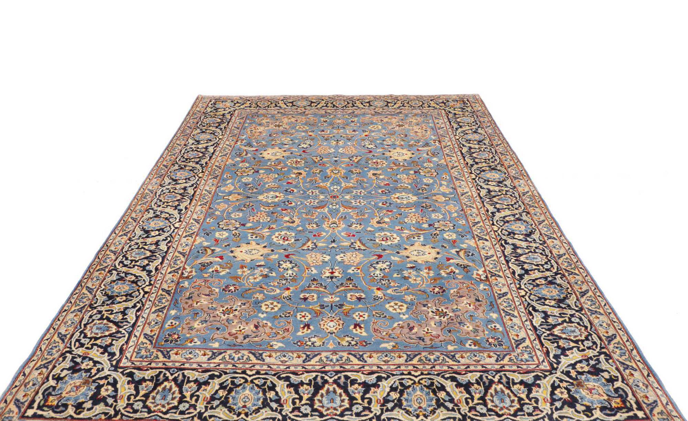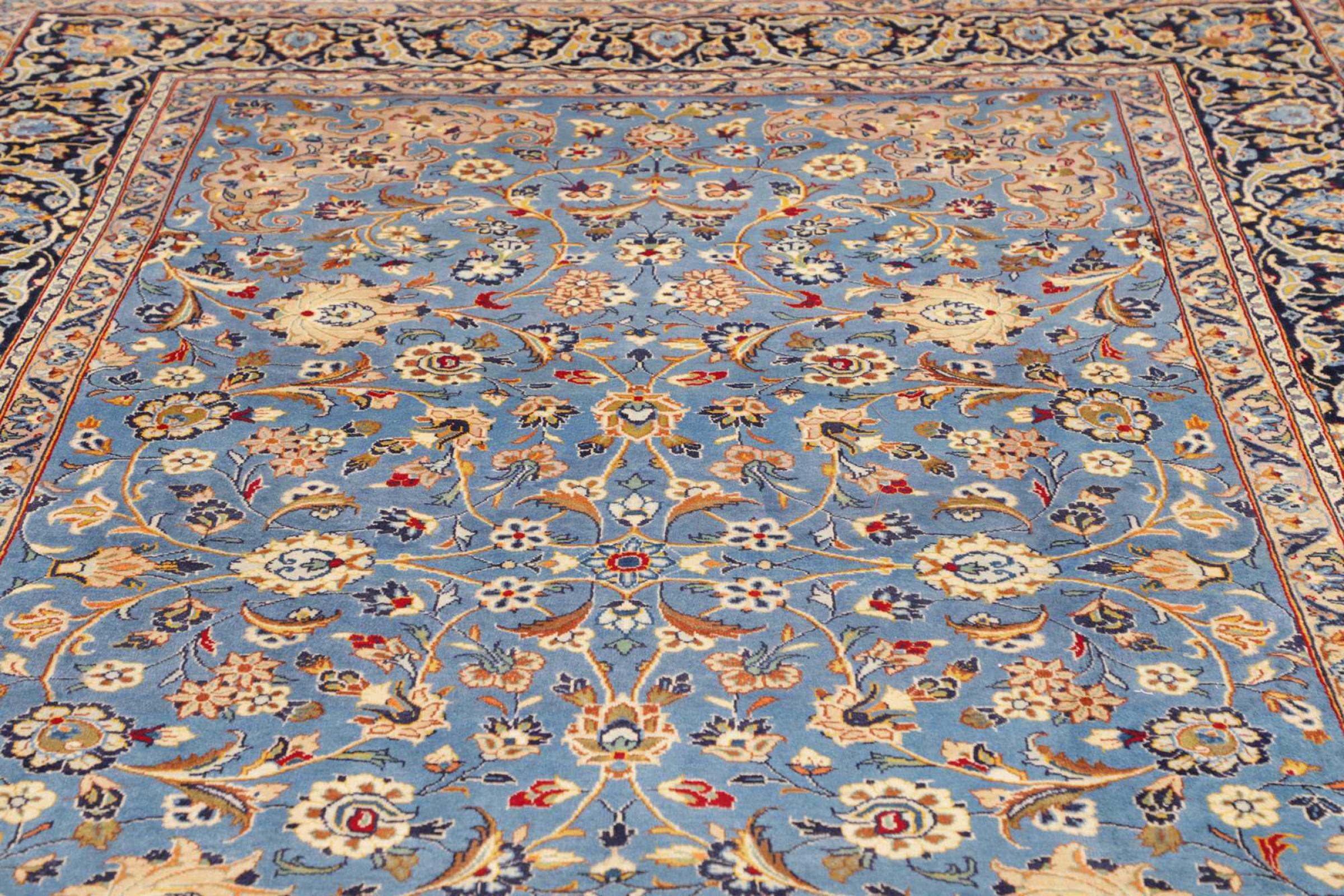 Tæppe-nr.: 312680004057134 Størrelse: 326x207 cm Tykkelse: ca. 12 mm Knuder: 128 000 - 160 000 / m² Forarbejdelse: Knyttet i hånden Luv: Håndspunden uld Kæde: Bomuld Oprindelse: Persien / Iran Alder: Ny Vægt: ca. 24 kg Antal på lager: Unik - Kun 1 tilbage på lager
