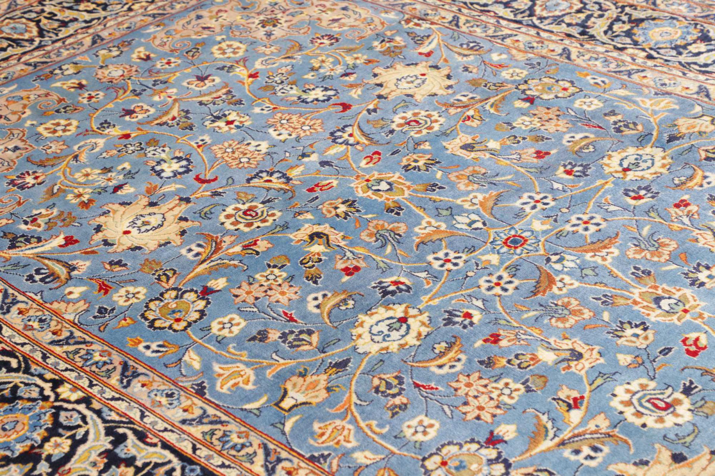 Dette tæppe består af håndspundet fåruld af højeste kvalitet. Især i Iran (tidligere Persien), Afghanistan og Pakistan spindes uld med hånden, før tæppet faktisk knuses. Uld har bevist sig som et naturligt og ekstremt slidstærkt materiale gennem århundreder. Det har blandt andet snavsafvisende og varmeisolerende egenskaber. Samtidig er uld uforlignelig blød og bringer en naturlig glans.