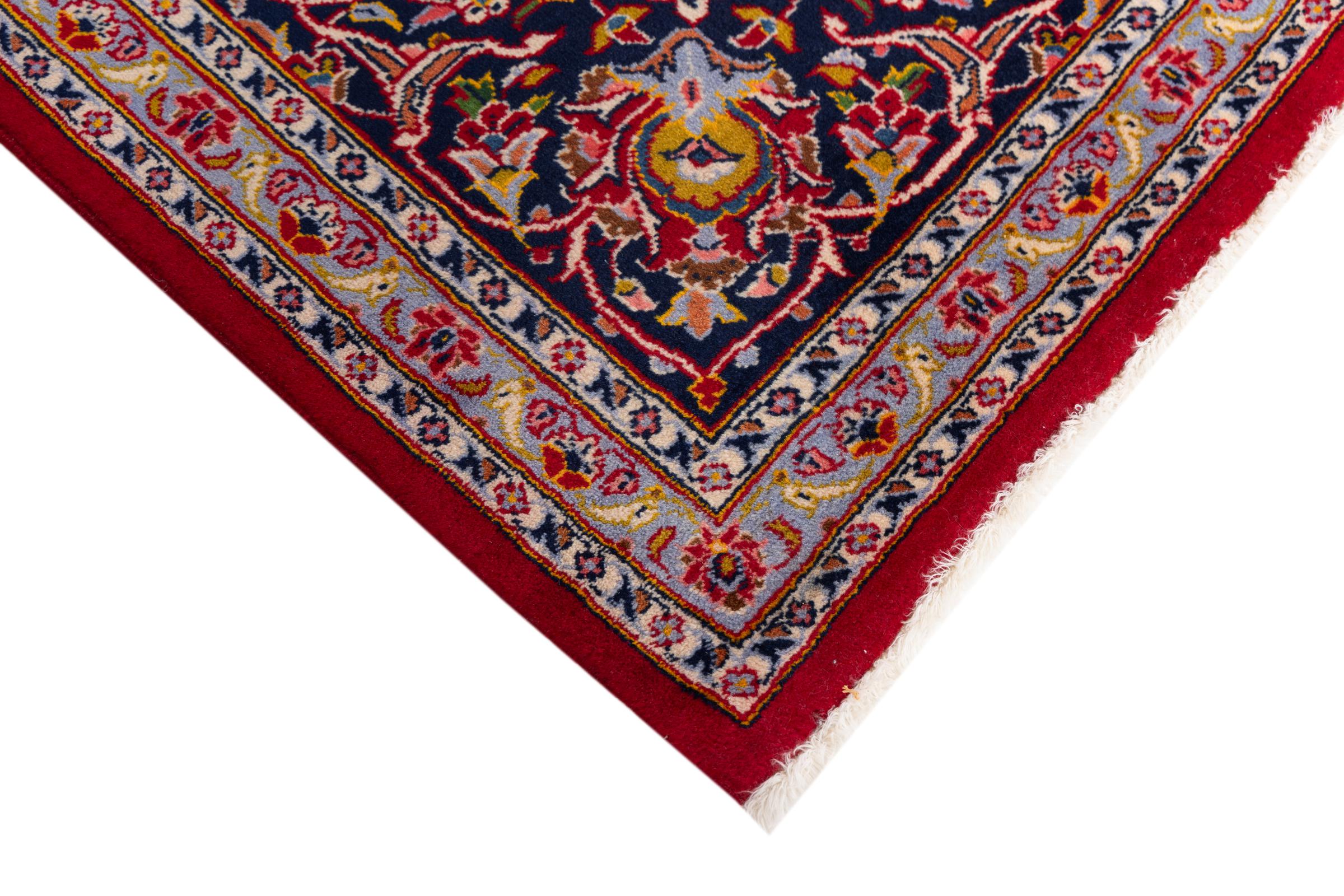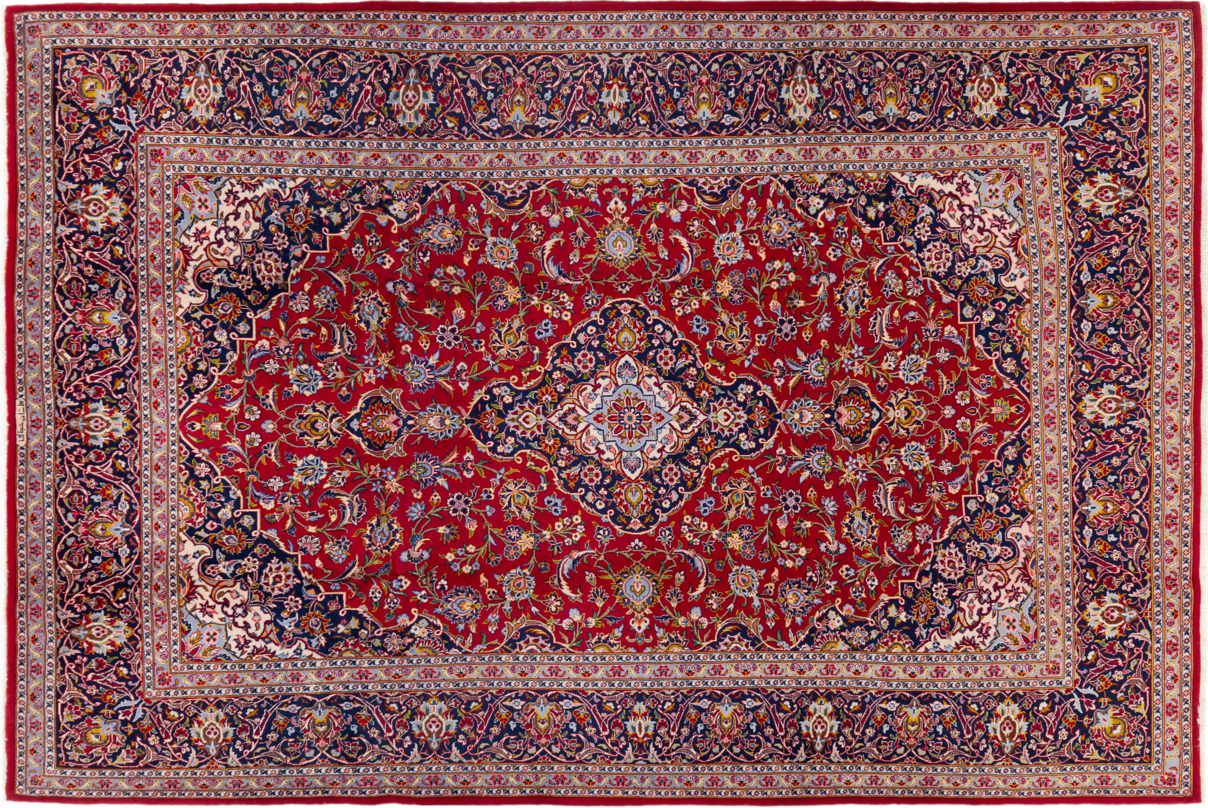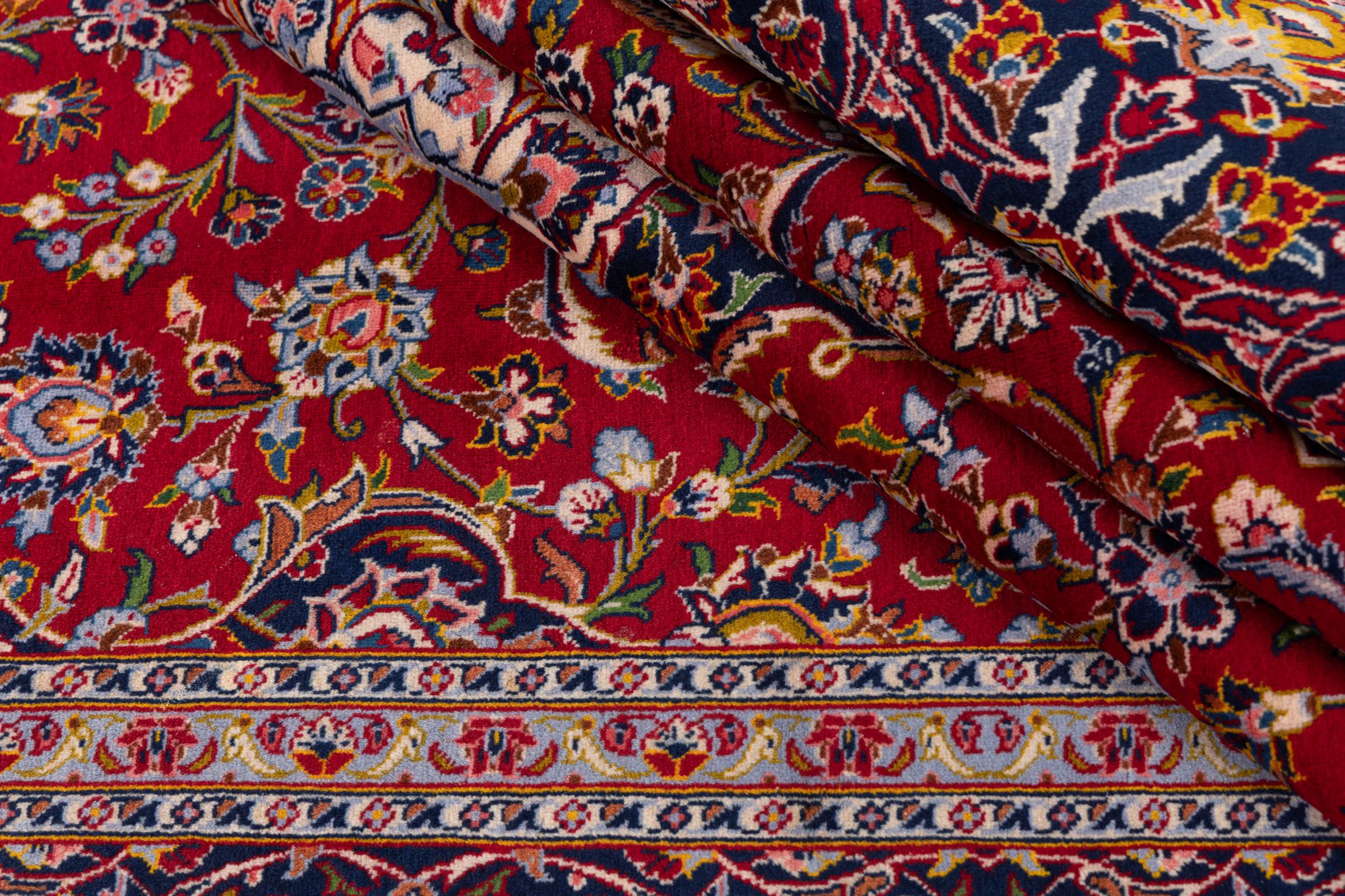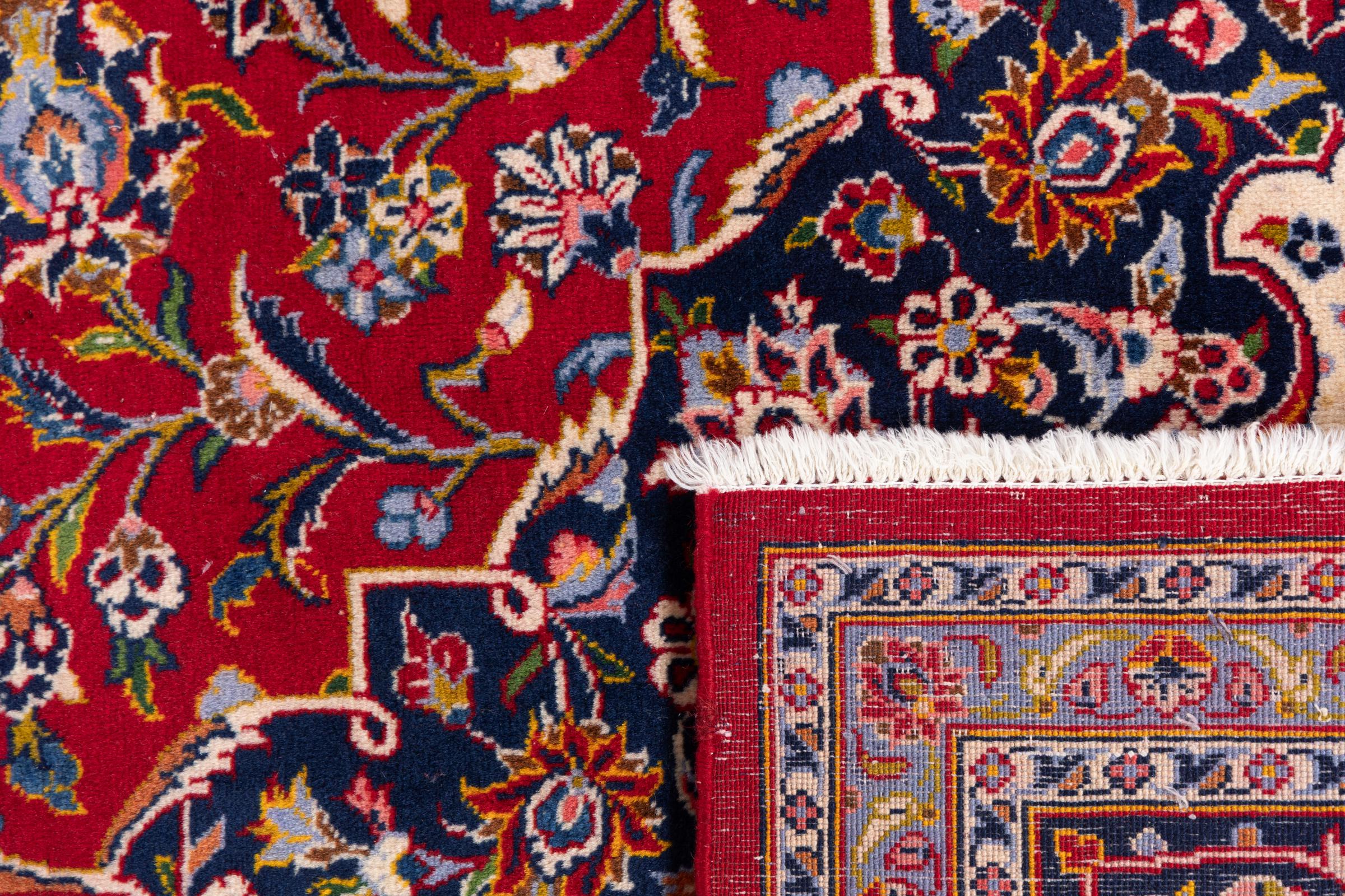 Dette tæppe fra Kashan (Keshan) er holdt i sit meget traditionelle og typiske persiske design med smukke ornamenter. Kashan tæpper er meget populære på grund af deres usædvanligt elegante design. Disse tæpper stammer fra Kashan, en by på den gamle Silkevej. Dette tæppe er blevet knyttet i hånden af højkvalitets fåreuld og vil være et unikt højdepunkt i dit hjem.