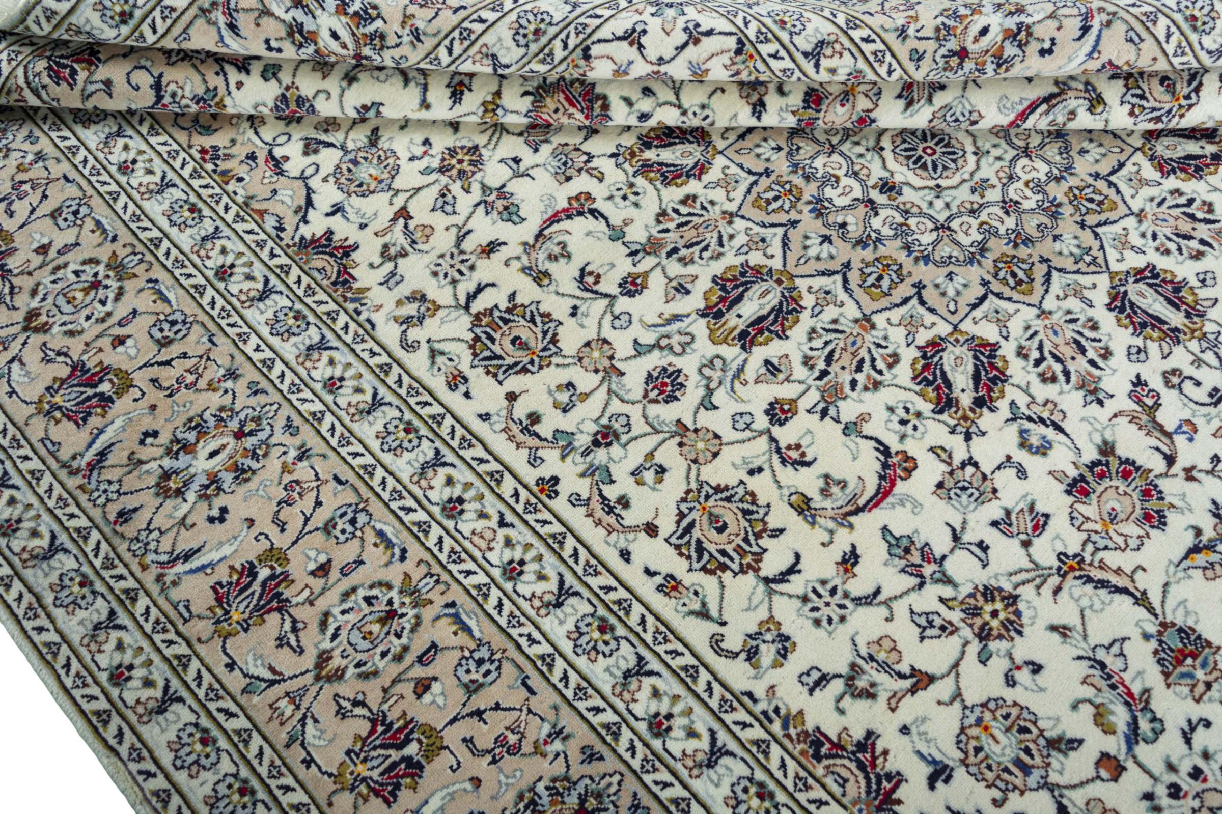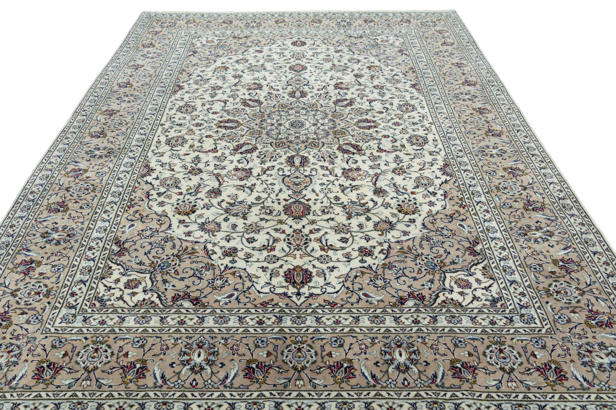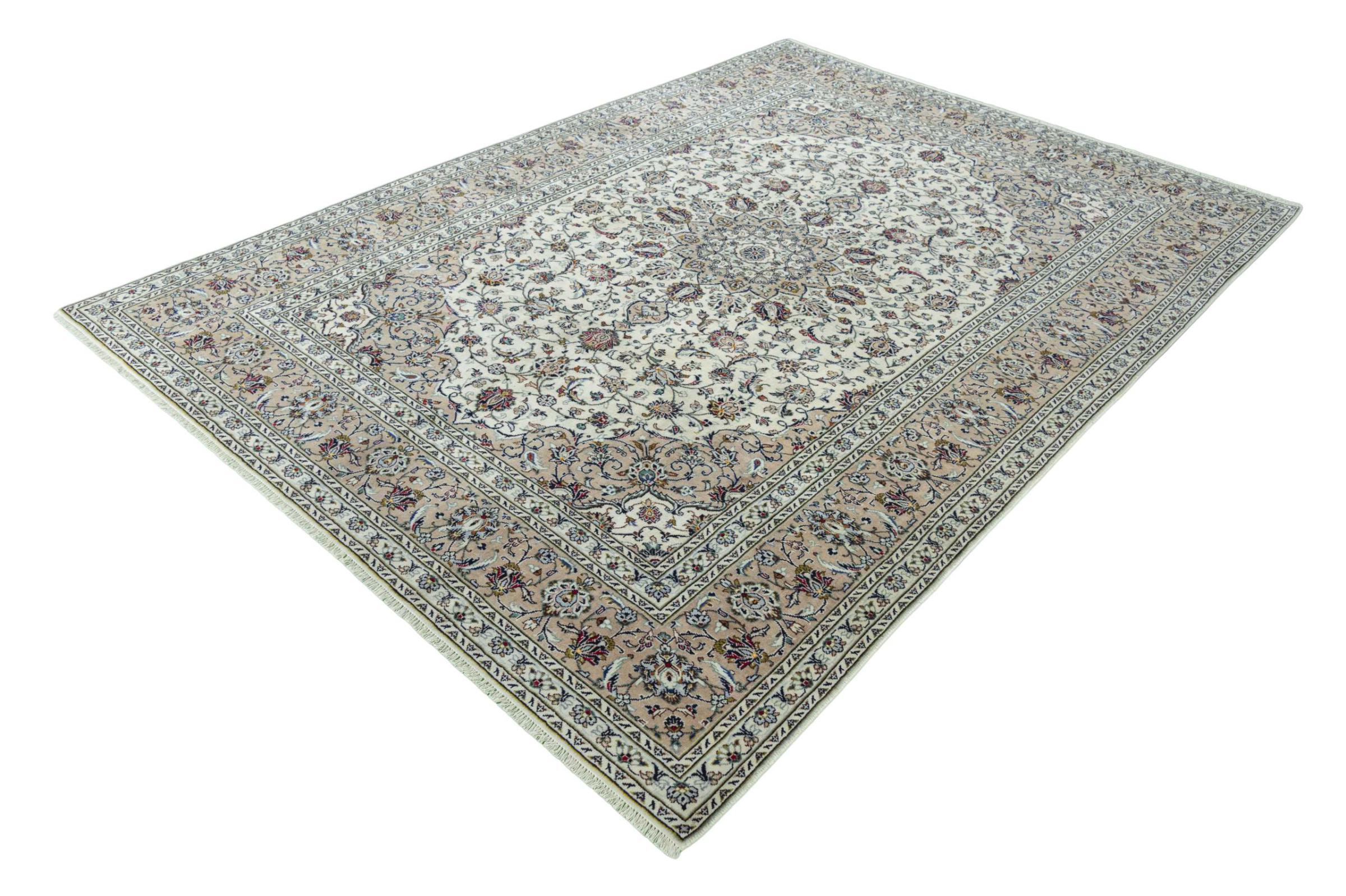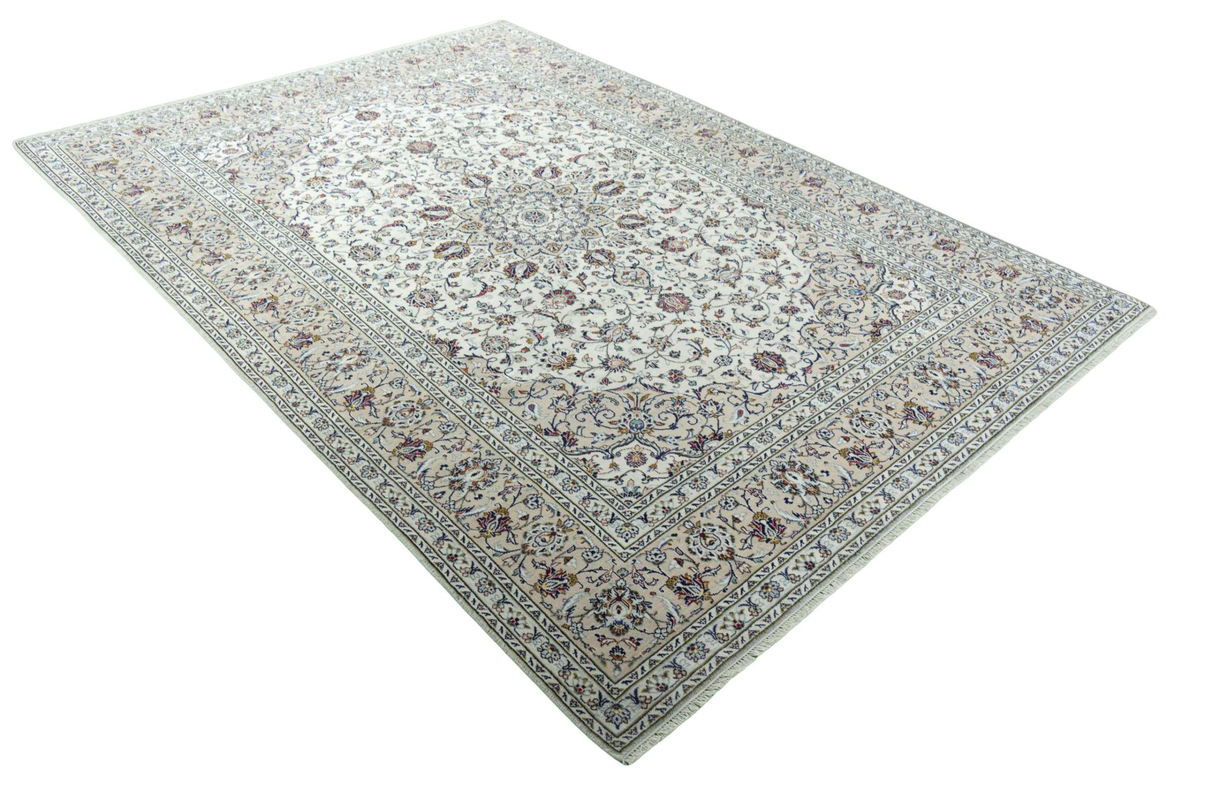 Dette tæppe fra Kashan (Keshan) er holdt i sit meget traditionelle og typiske persiske design med smukke ornamenter. Kashan tæpper er meget populære på grund af deres usædvanligt elegante design. Disse tæpper stammer fra Kashan, en by på den gamle Silkevej. Dette tæppe er blevet knyttet i hånden af højkvalitets fåreuld og vil være et unikt højdepunkt i dit hjem.