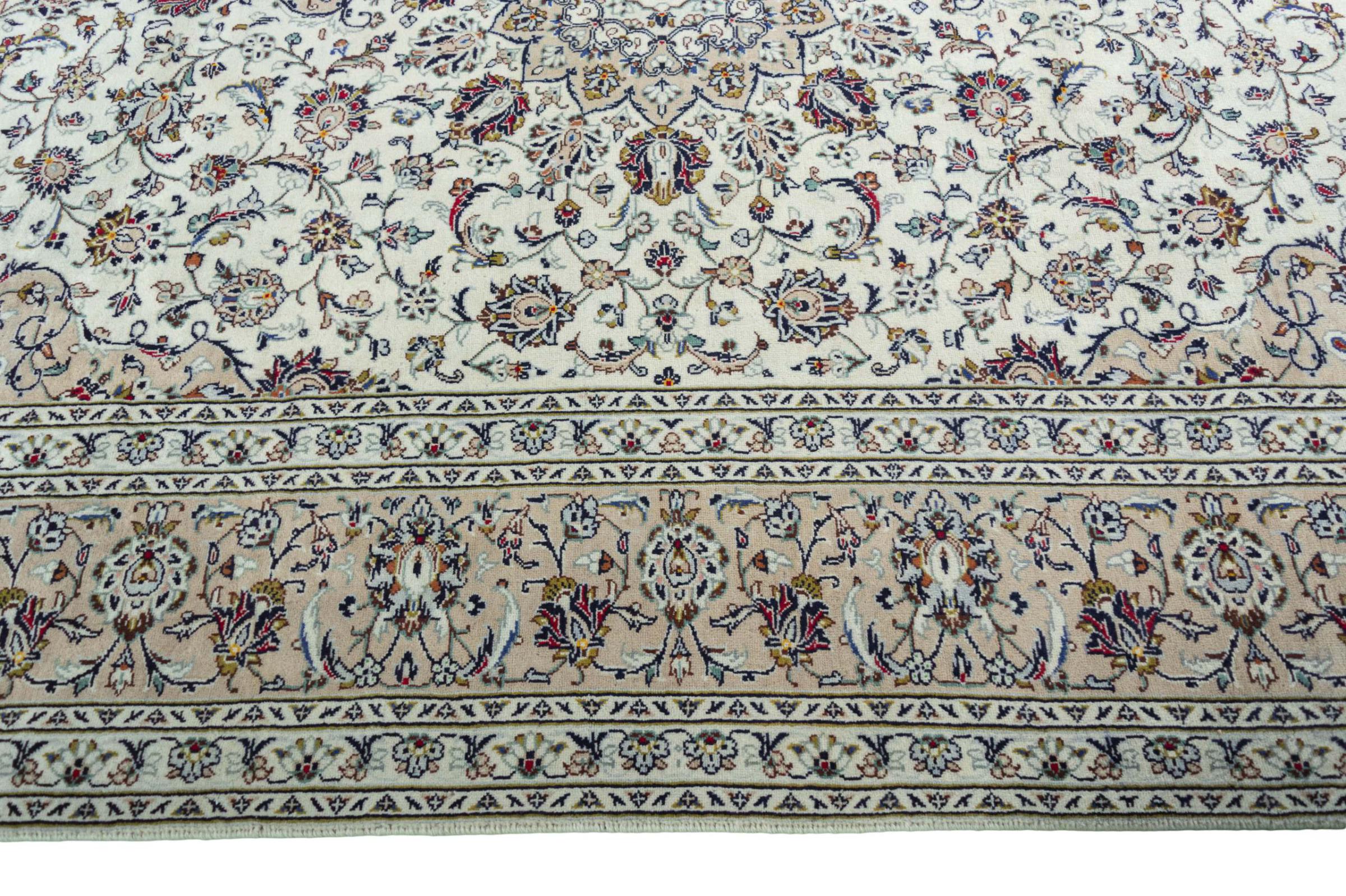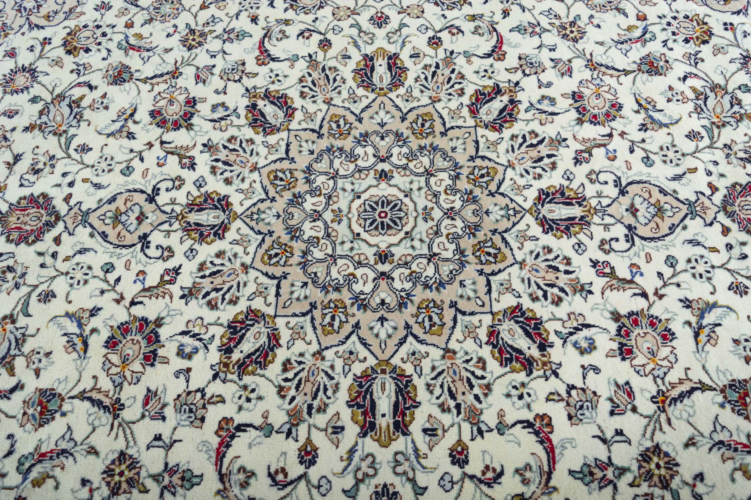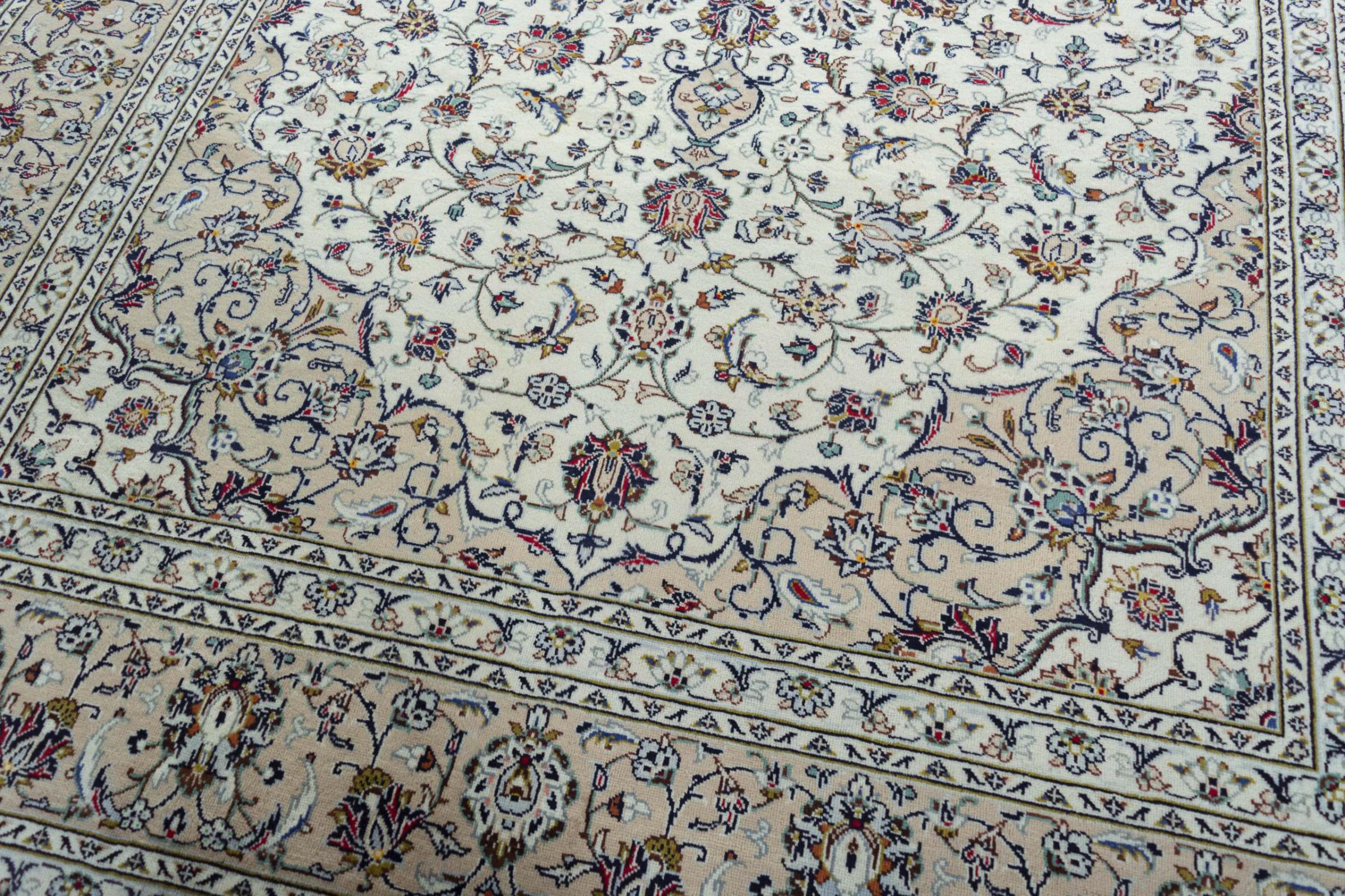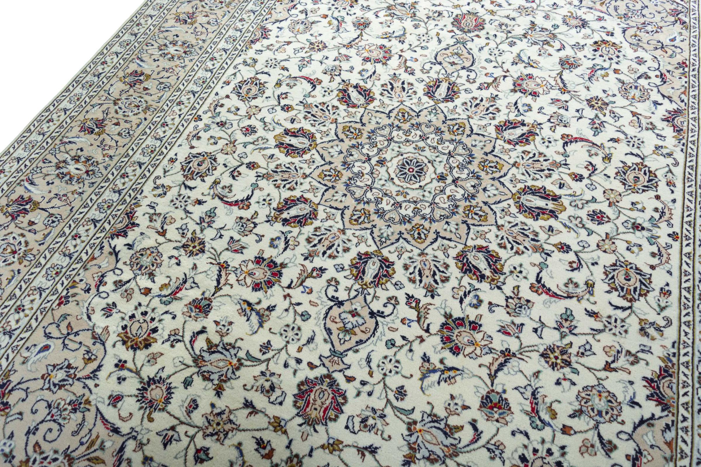 Dette tæppe fra Kashan (Keshan) er holdt i sit meget traditionelle og typiske persiske design med smukke ornamenter. Kashan tæpper er meget populære på grund af deres usædvanligt elegante design. Disse tæpper stammer fra Kashan, en by på den gamle Silkevej. Dette tæppe er blevet knyttet i hånden af højkvalitets fåreuld og vil være et unikt højdepunkt i dit hjem.