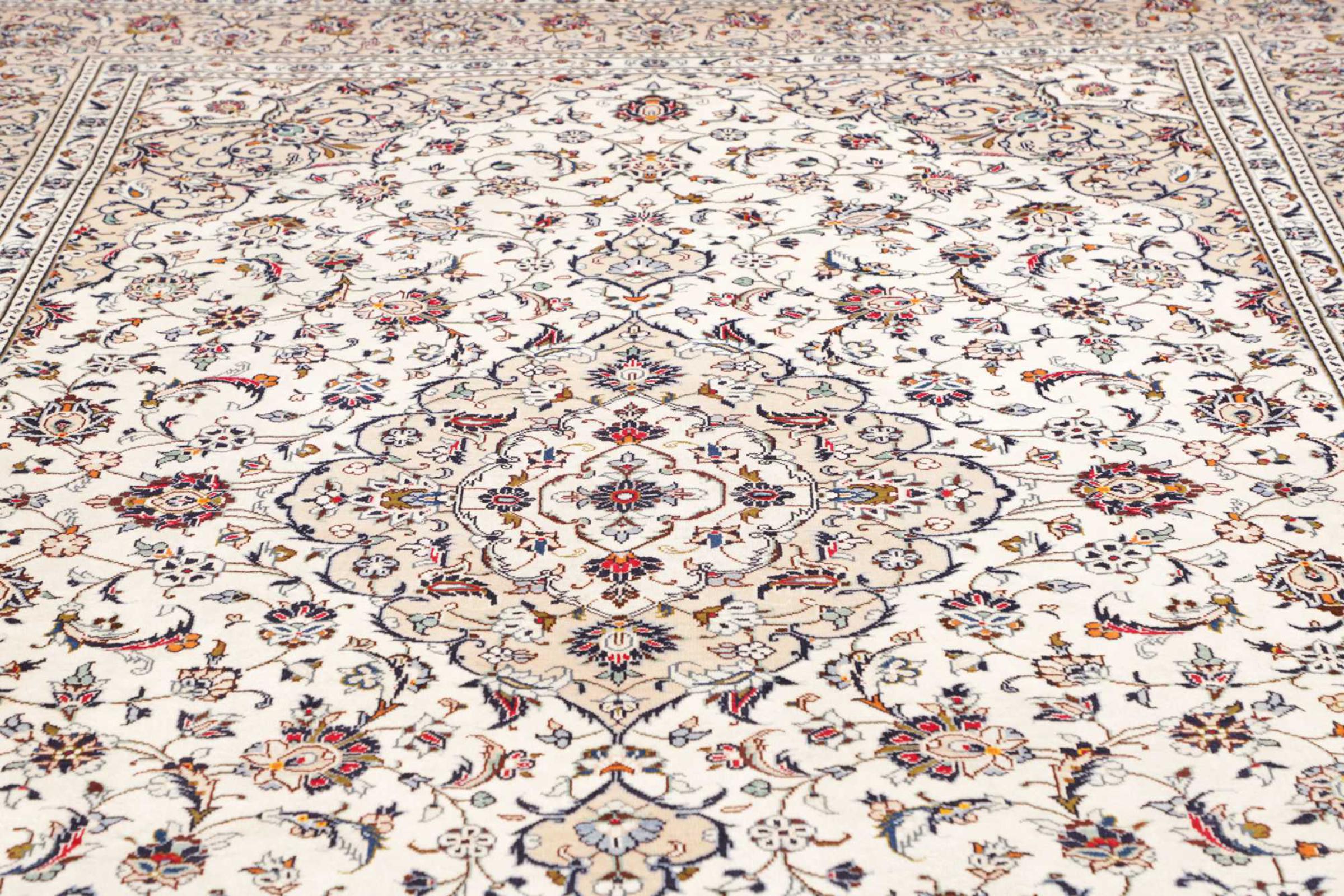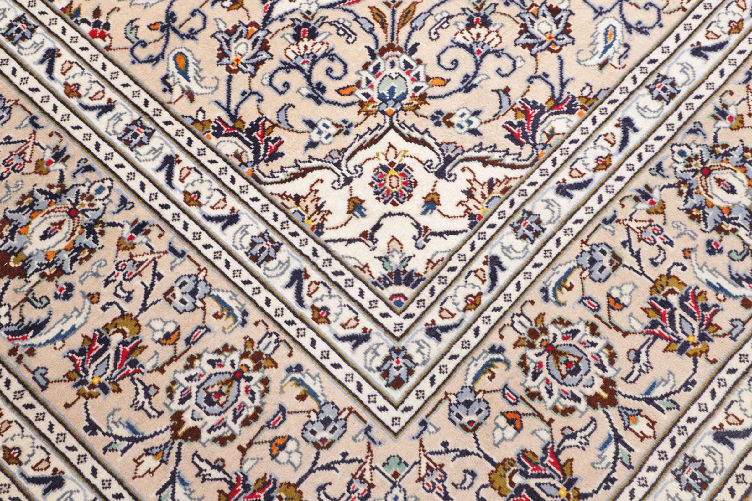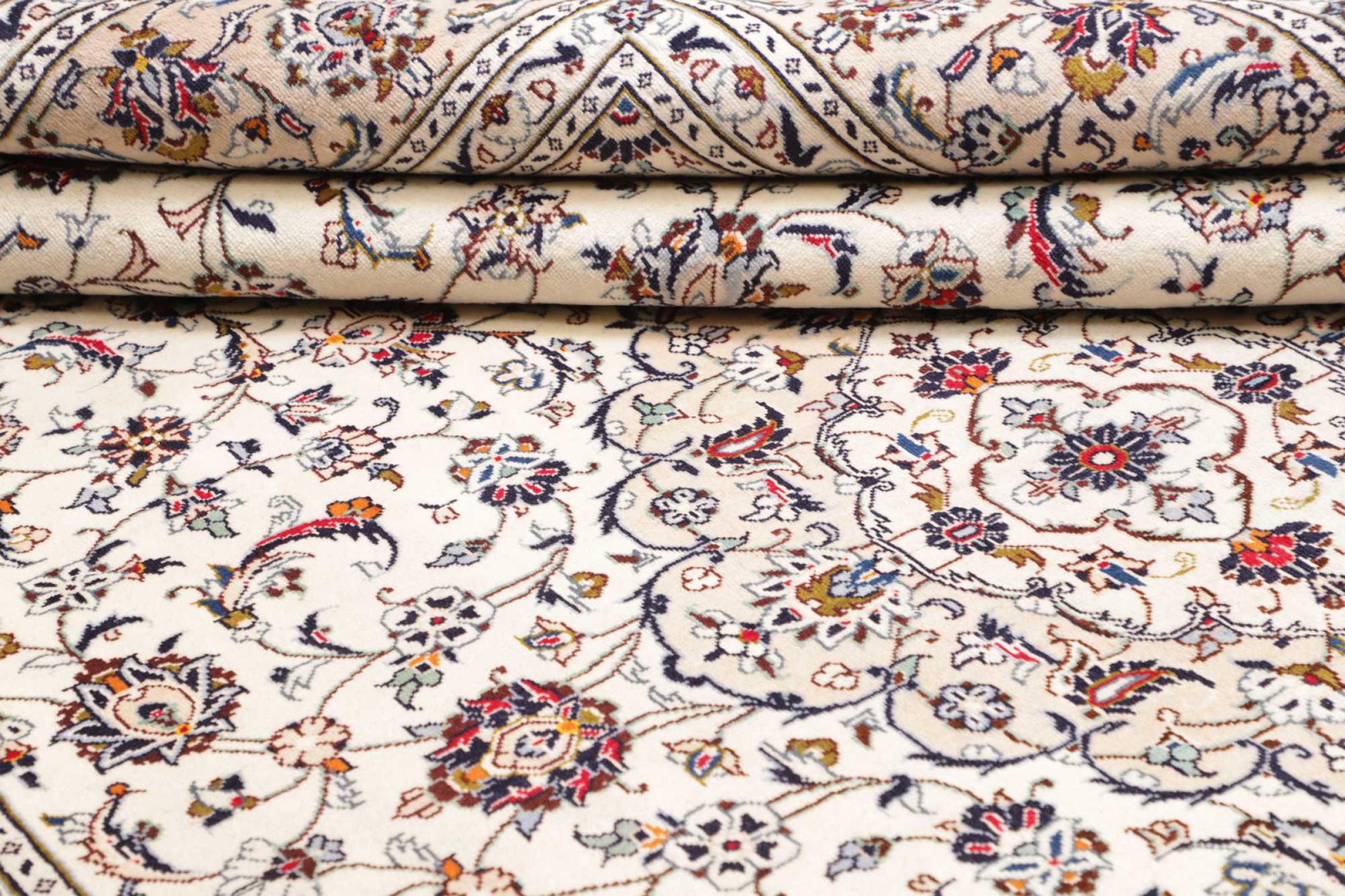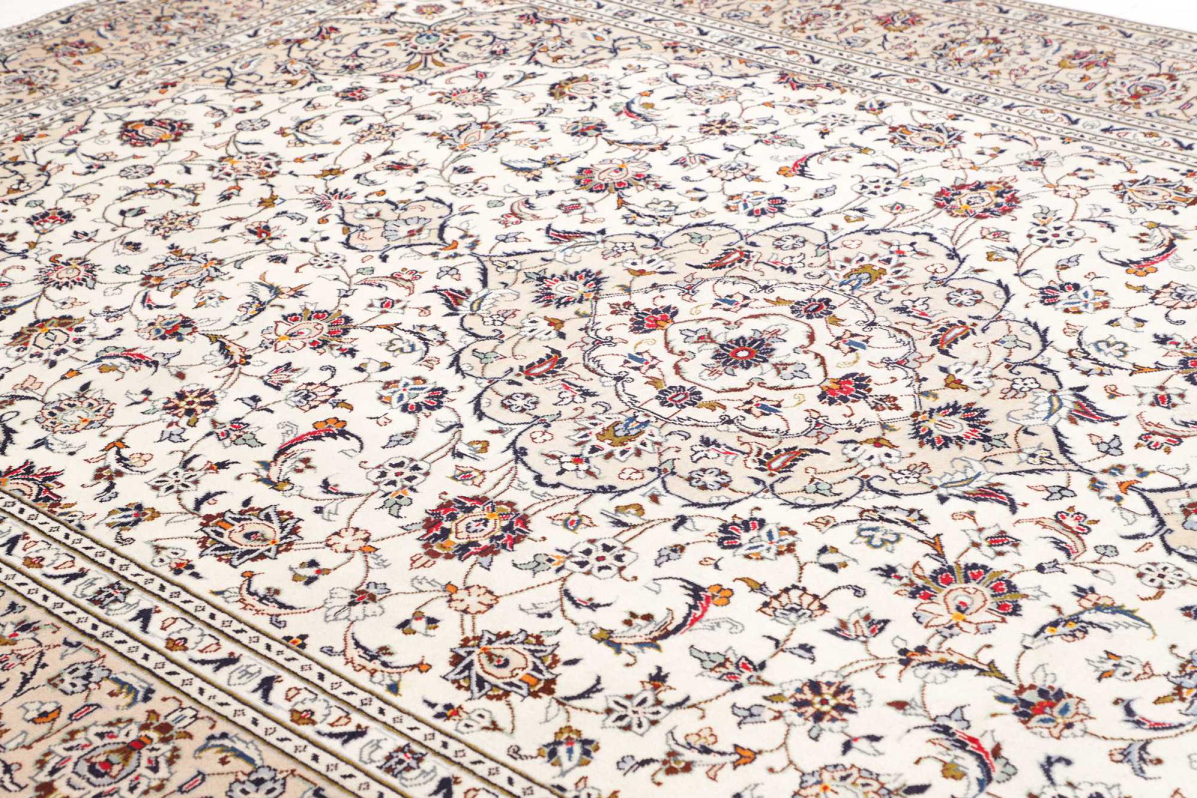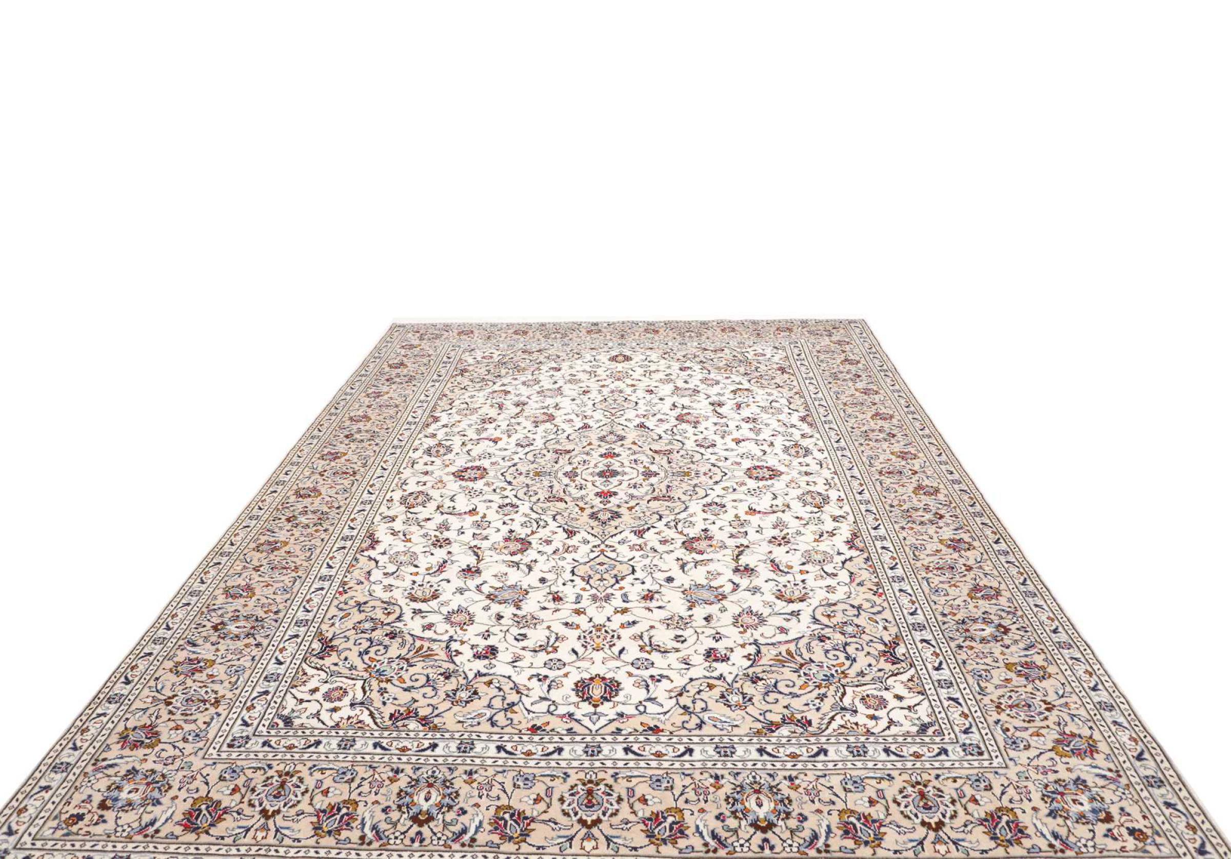 Dette tæppe fra Kashan (Keshan) er holdt i sit meget traditionelle og typiske persiske design med smukke ornamenter. Kashan tæpper er meget populære på grund af deres usædvanligt elegante design. Disse tæpper stammer fra Kashan, en by på den gamle Silkevej. Dette tæppe er blevet knyttet i hånden af højkvalitets fåreuld og vil være et unikt højdepunkt i dit hjem.